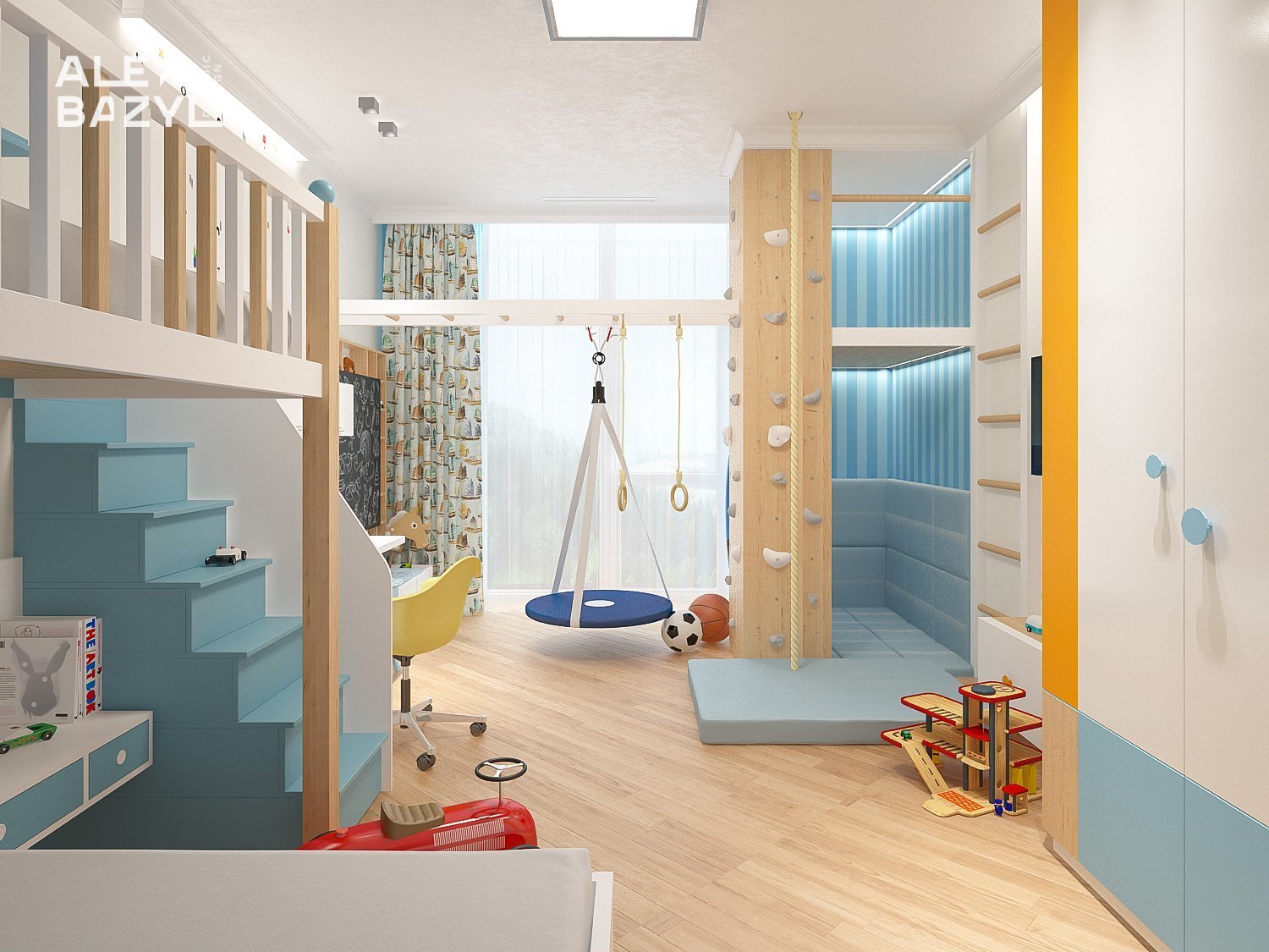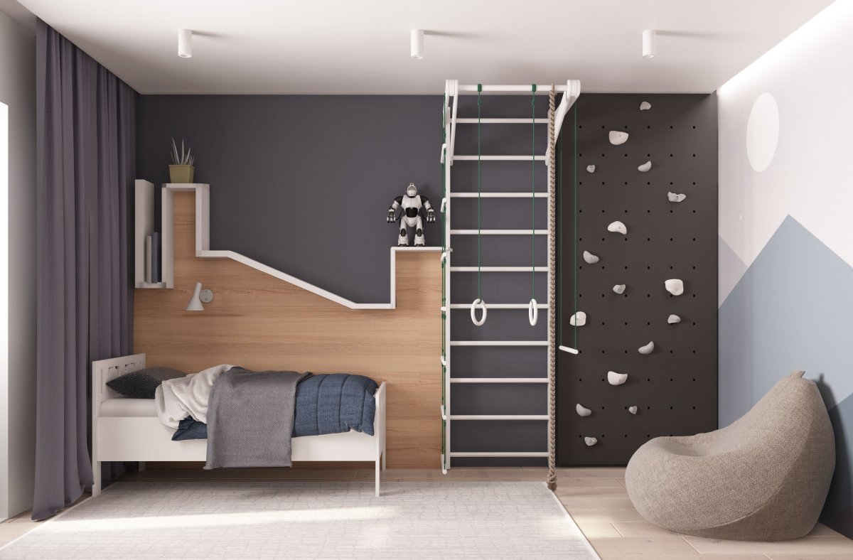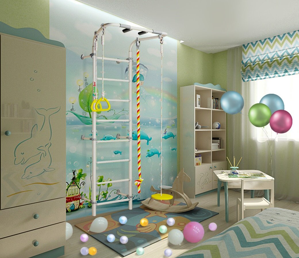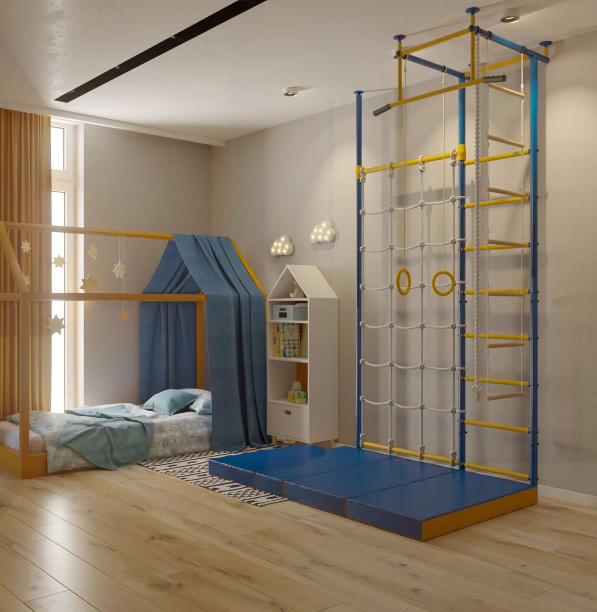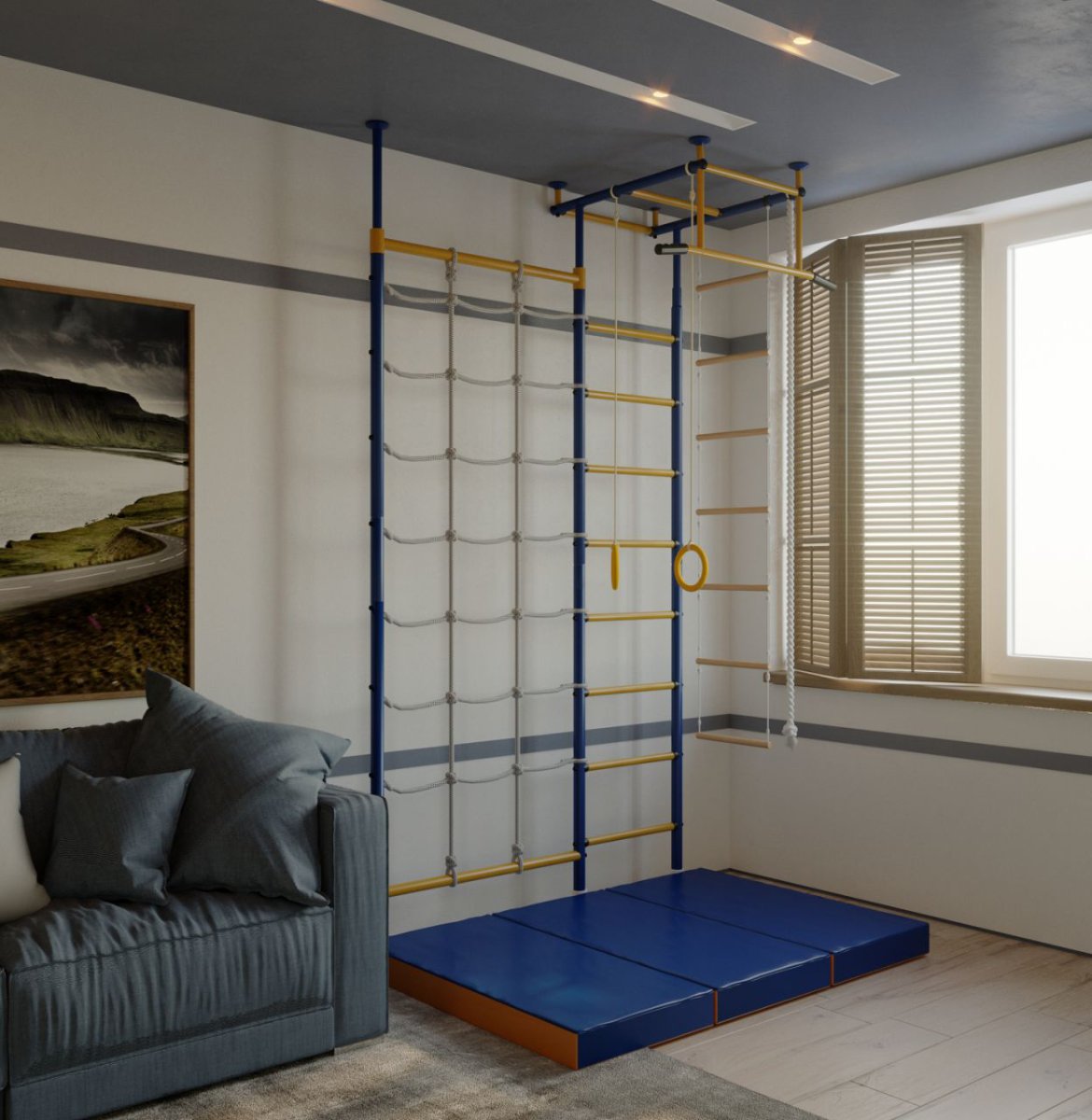 Детский спортивный комплекс Polini Sport Turbo, пристенный, Лазурный