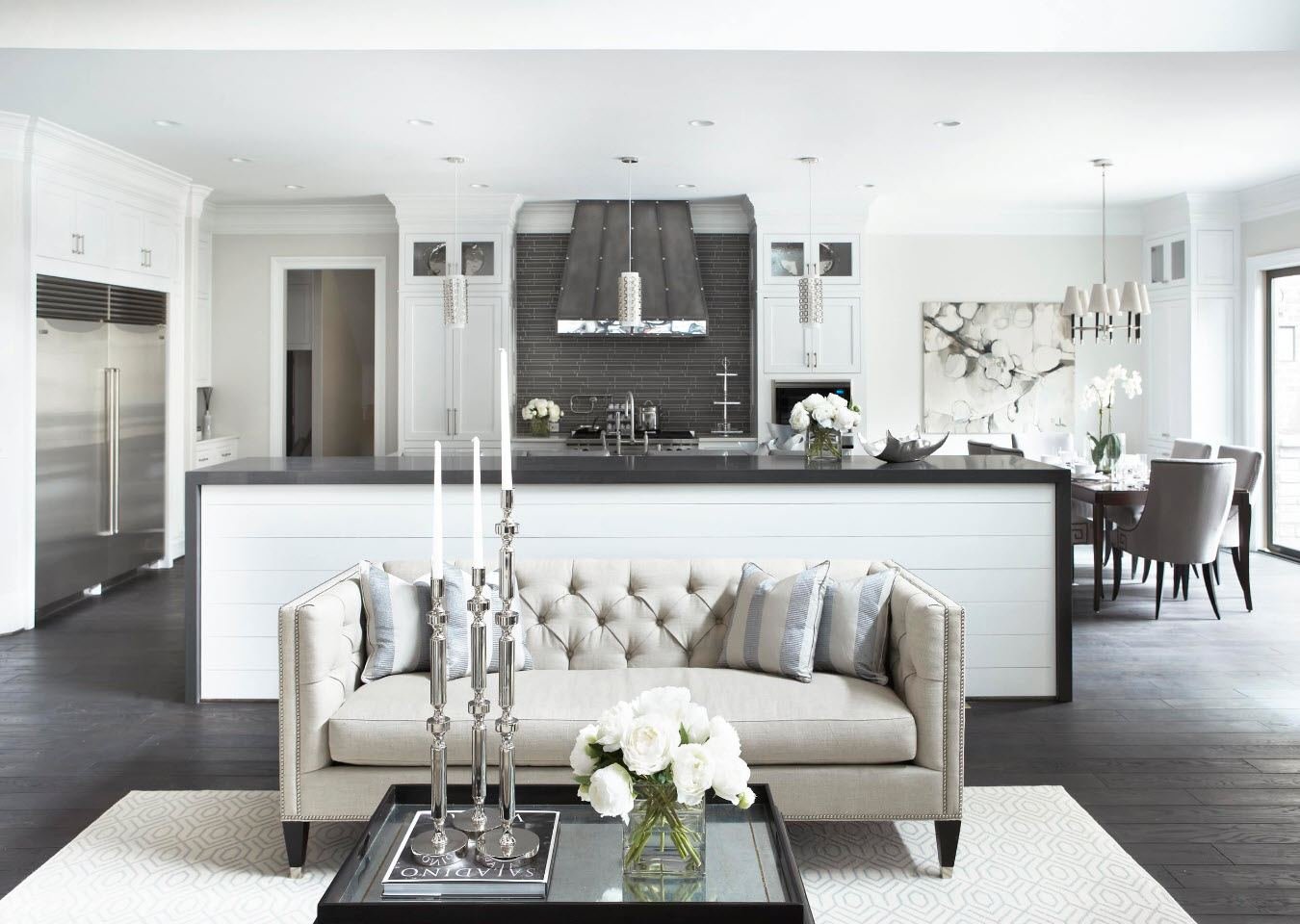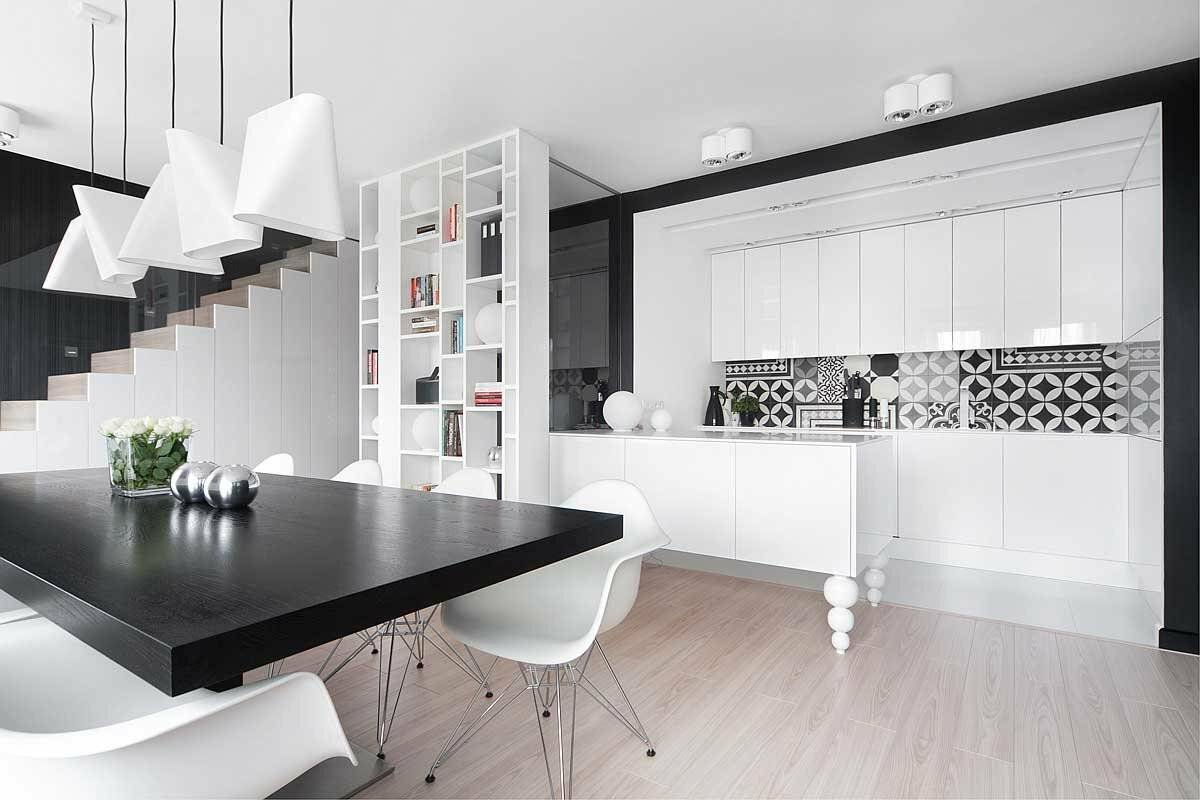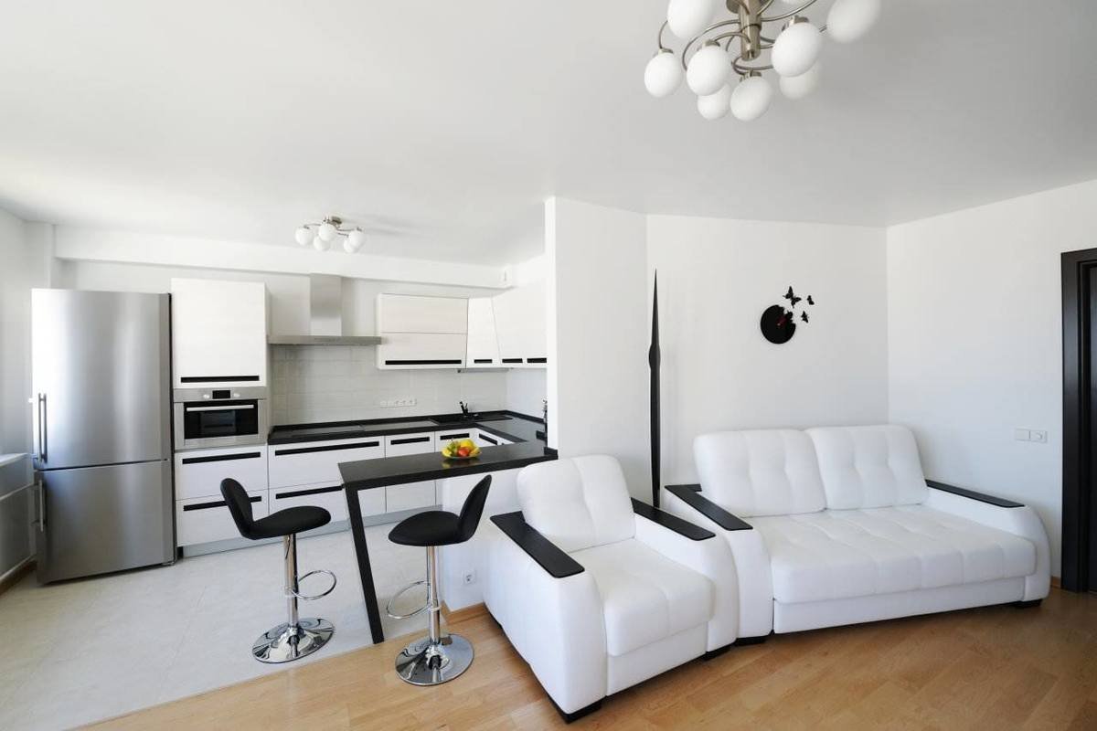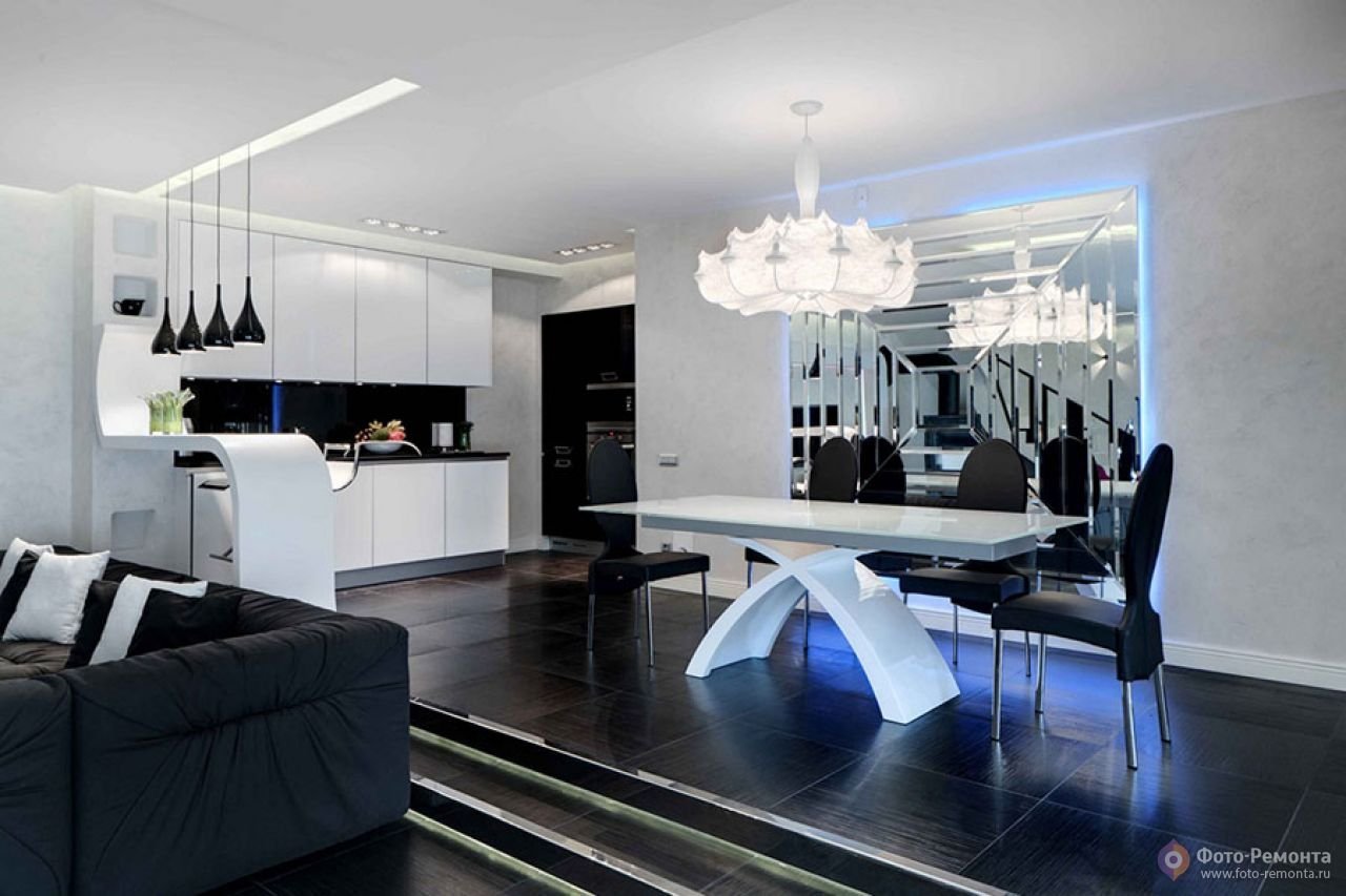 Черно белая кухня гостиная