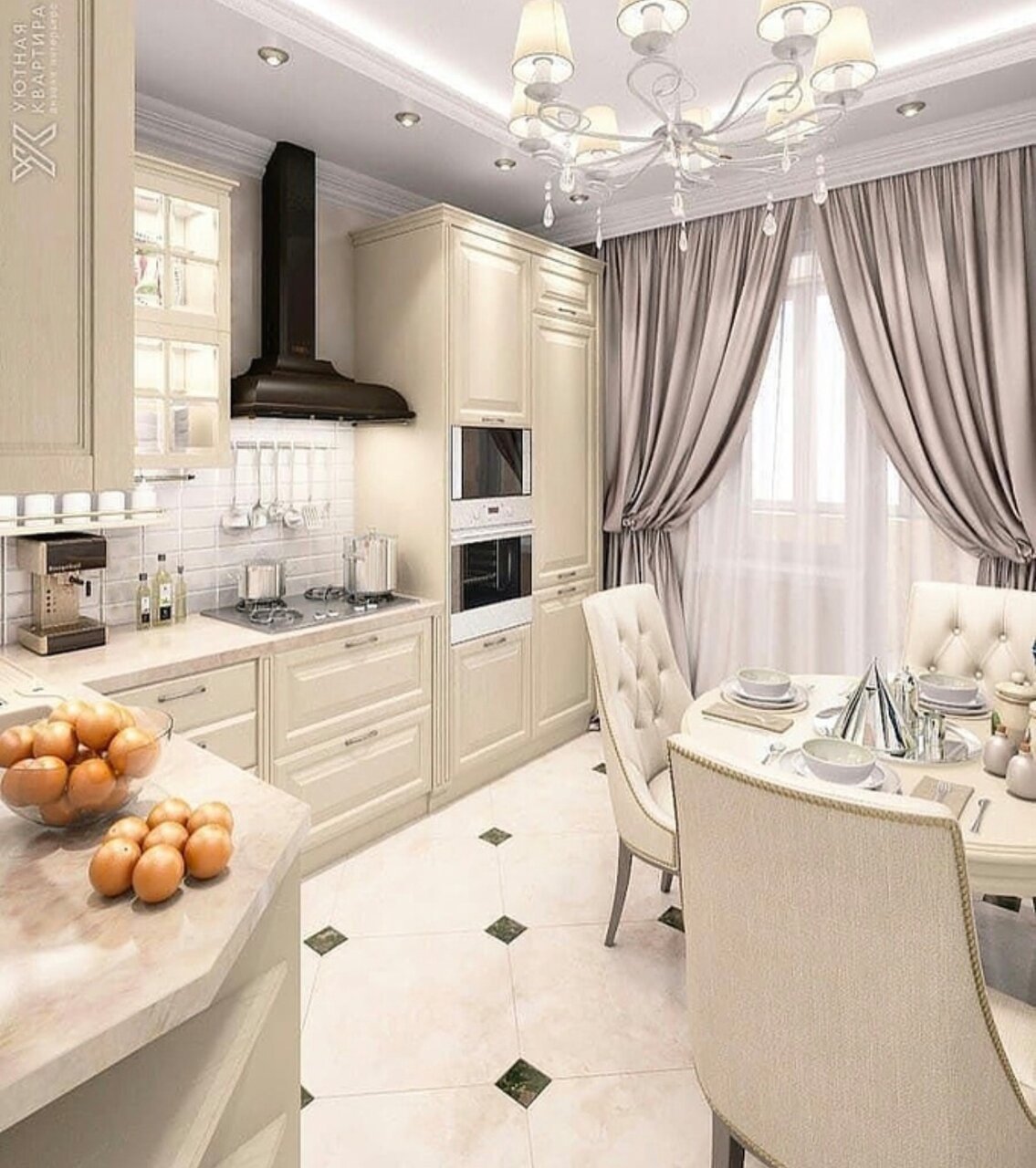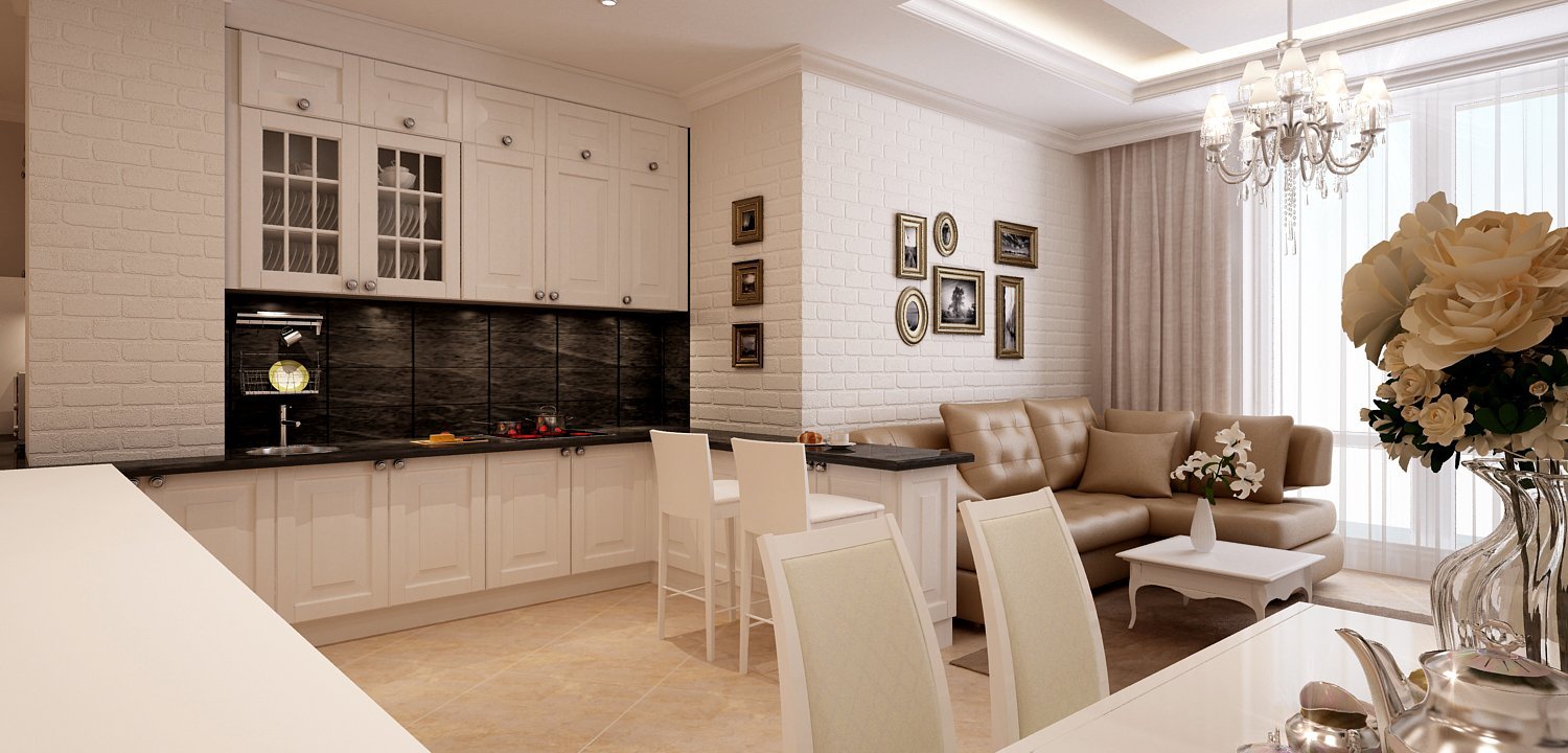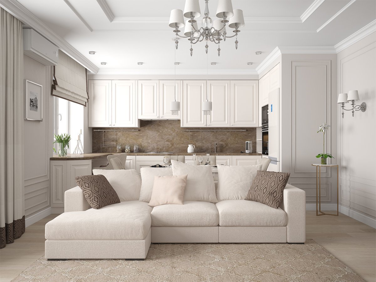 Кухня-гостиная Неоклассика 20 кв метров