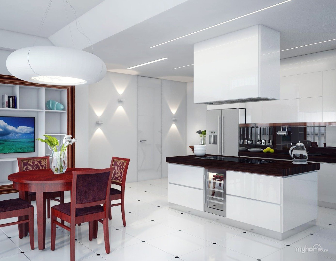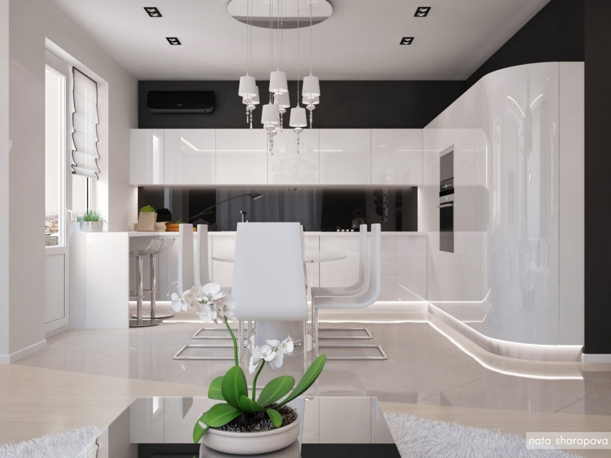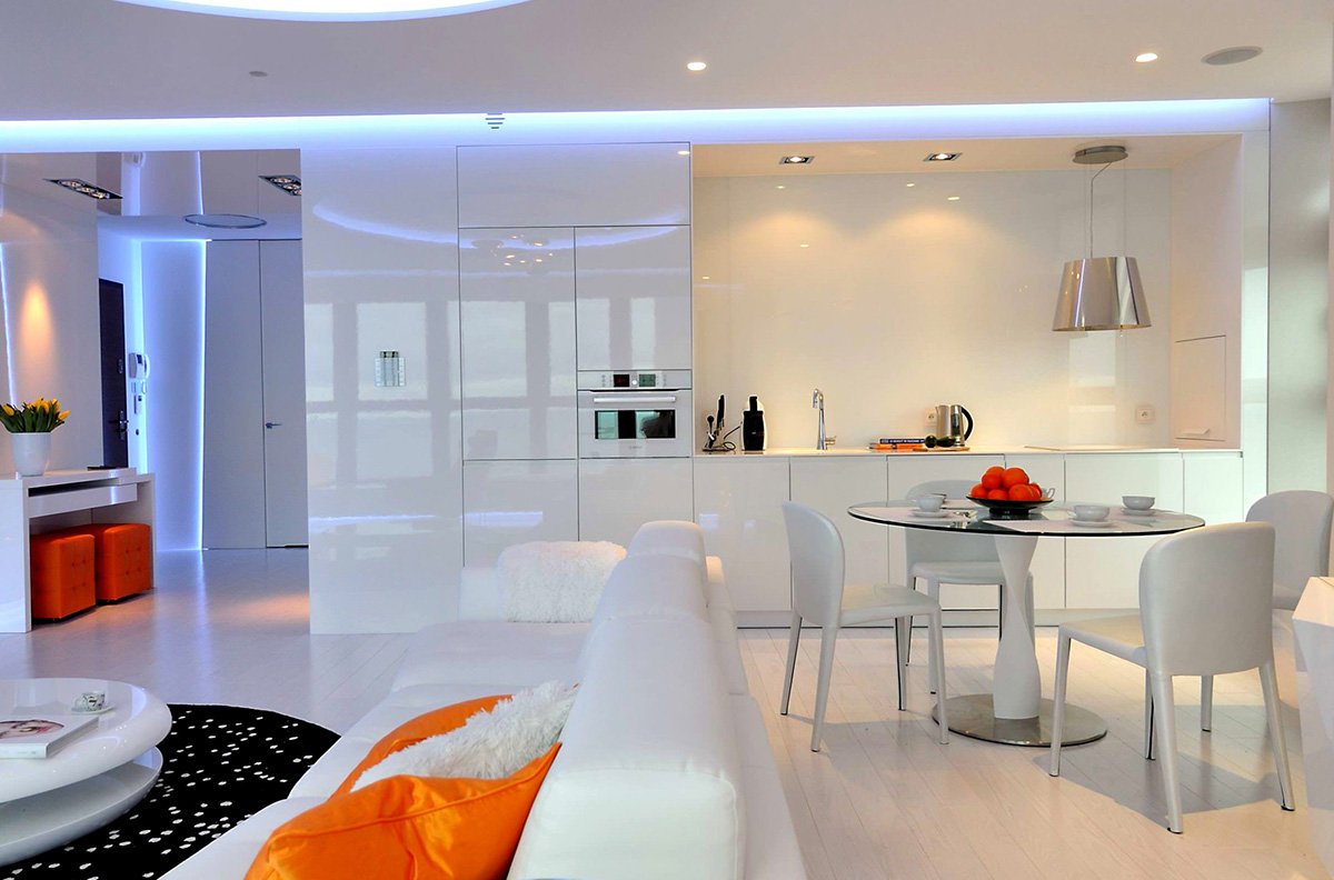 Кухня гостиная белый глянец