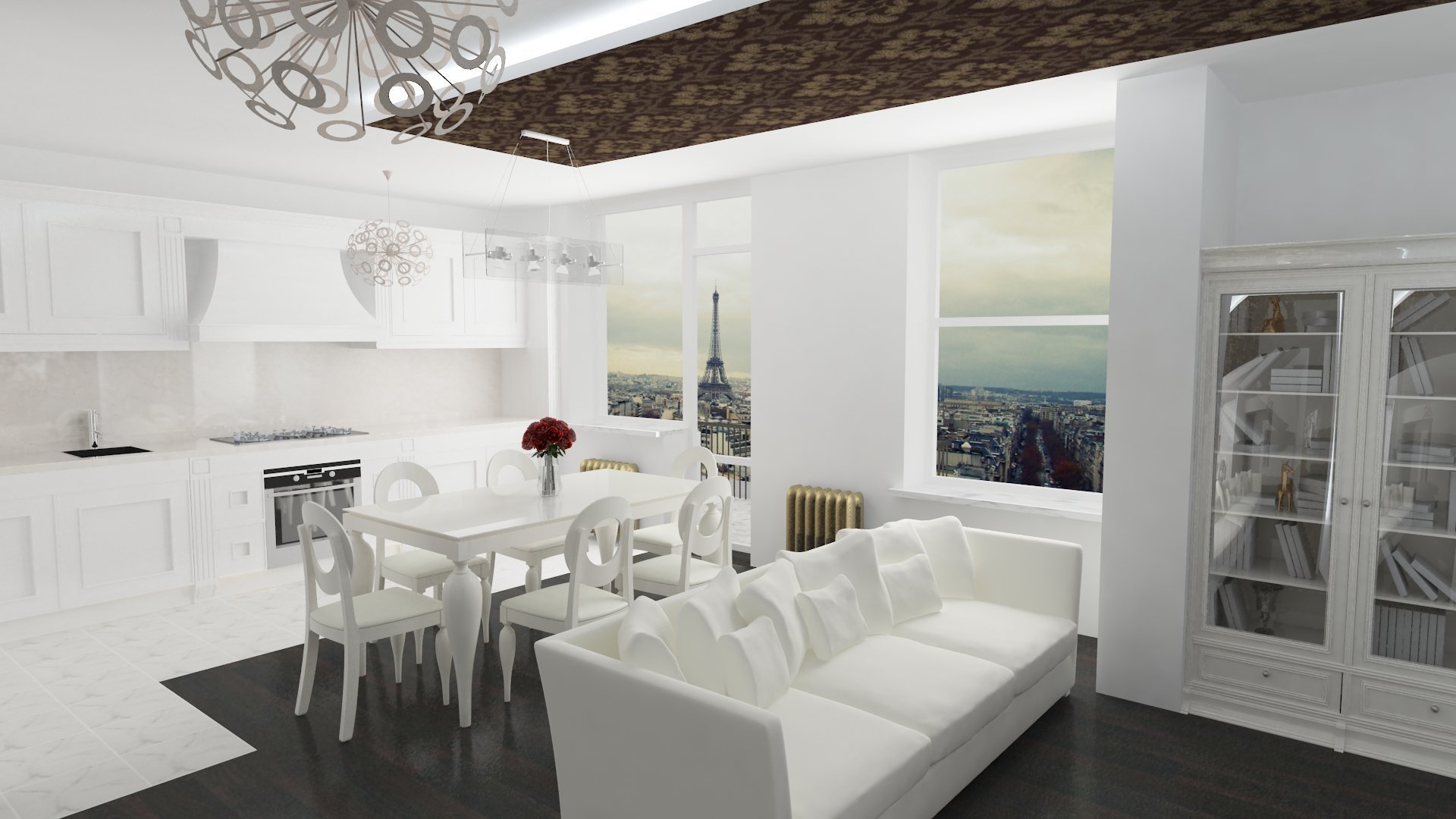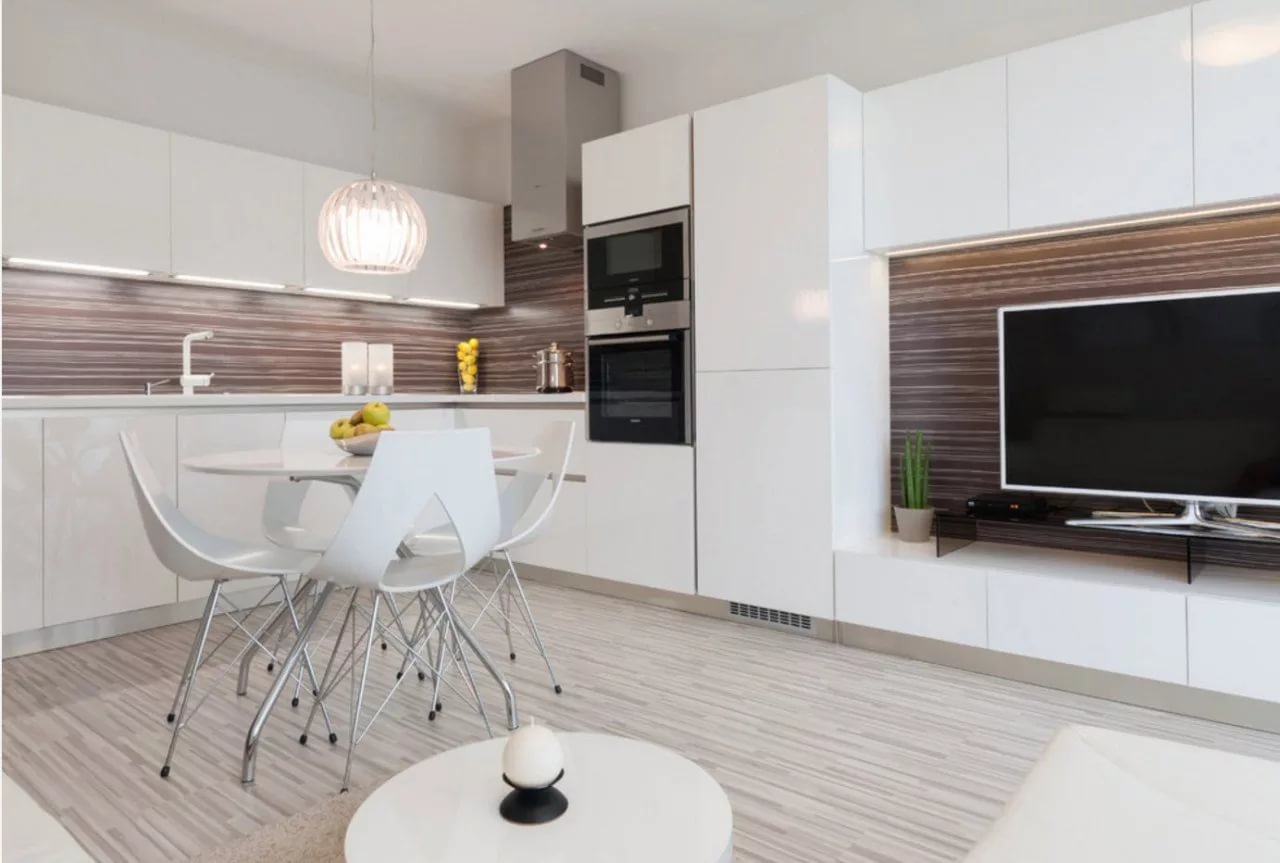 Белая кухня гостиная