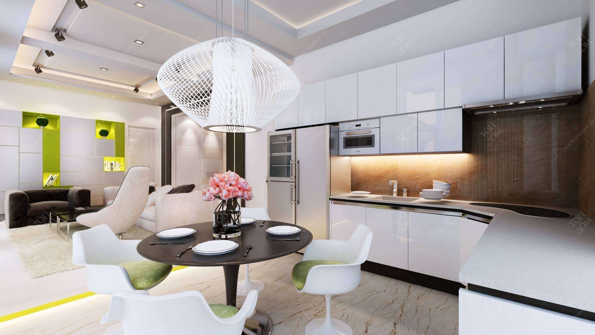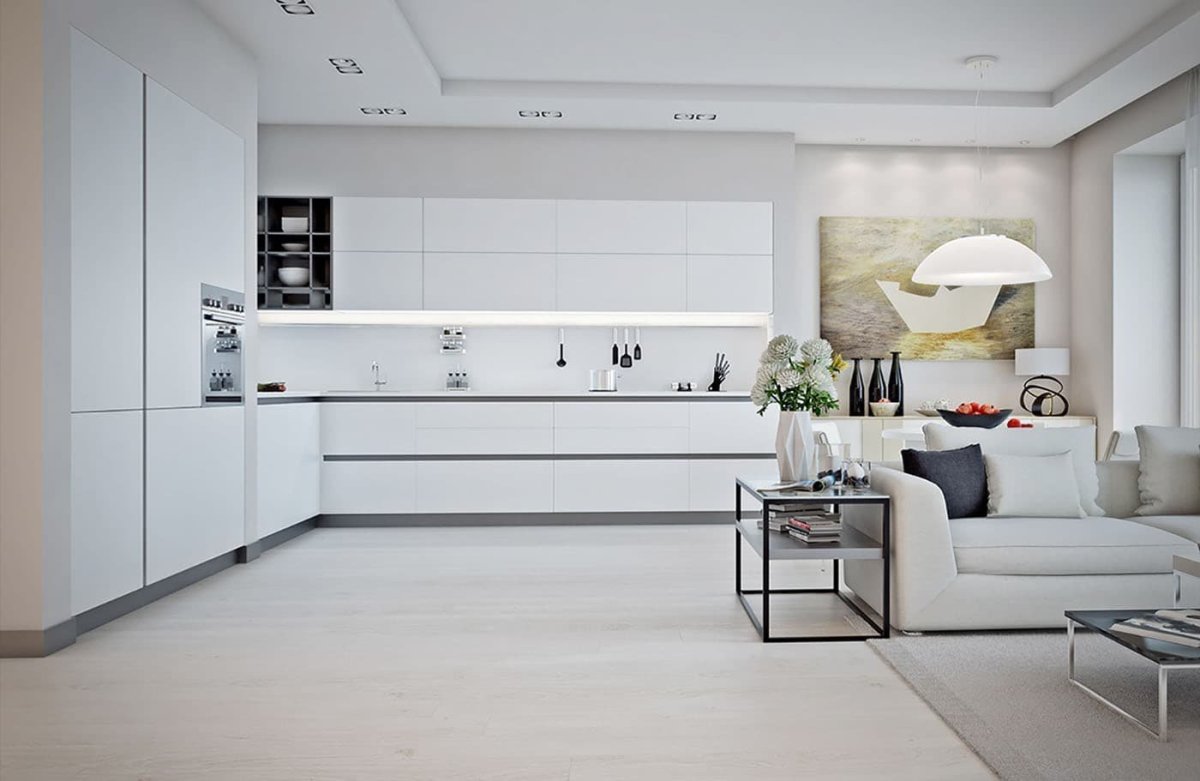 Кухня гостиная с белой кухней
