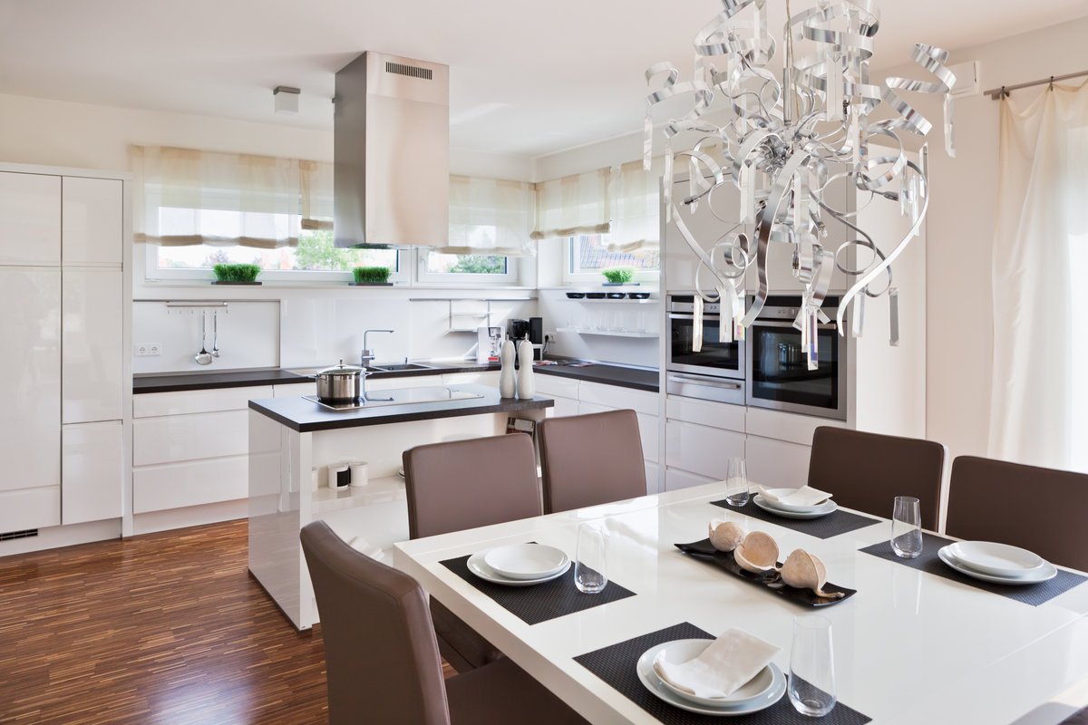 Люстры в интерьере кухни гостиной