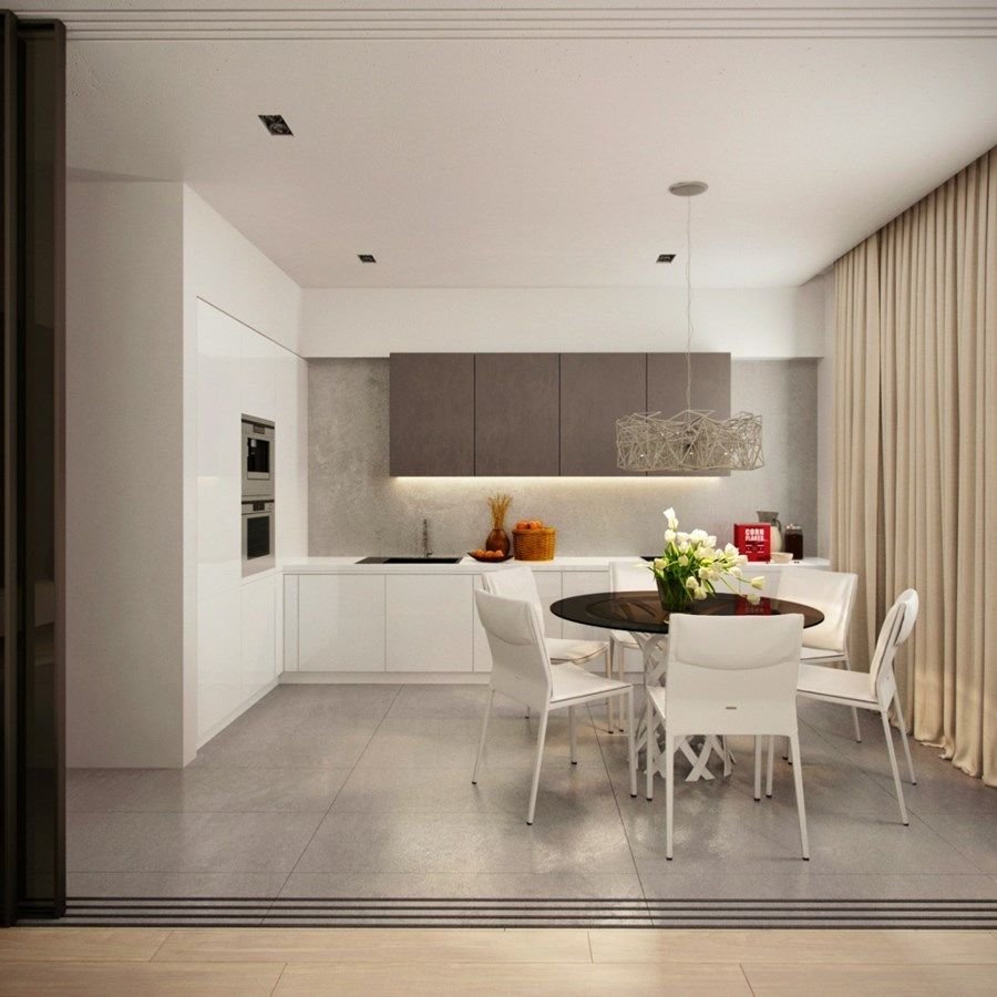 Кухня-гостиная в стиле Минимализм в светлых тонах