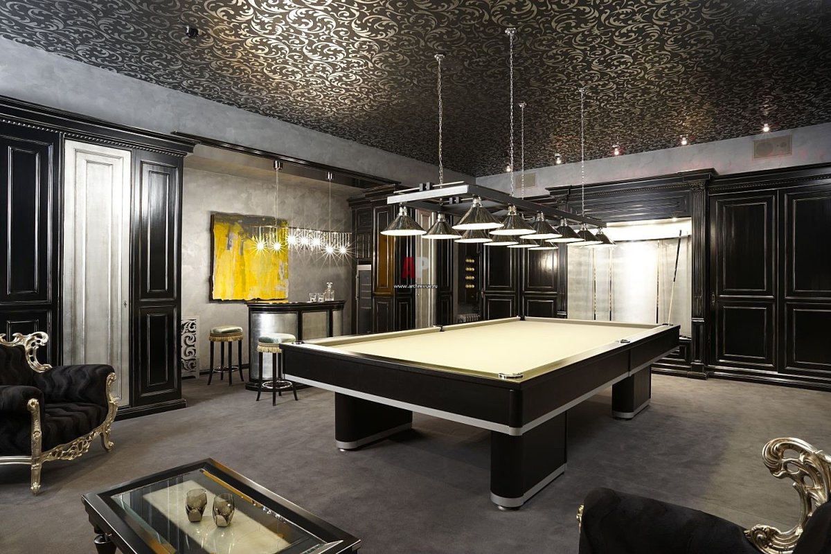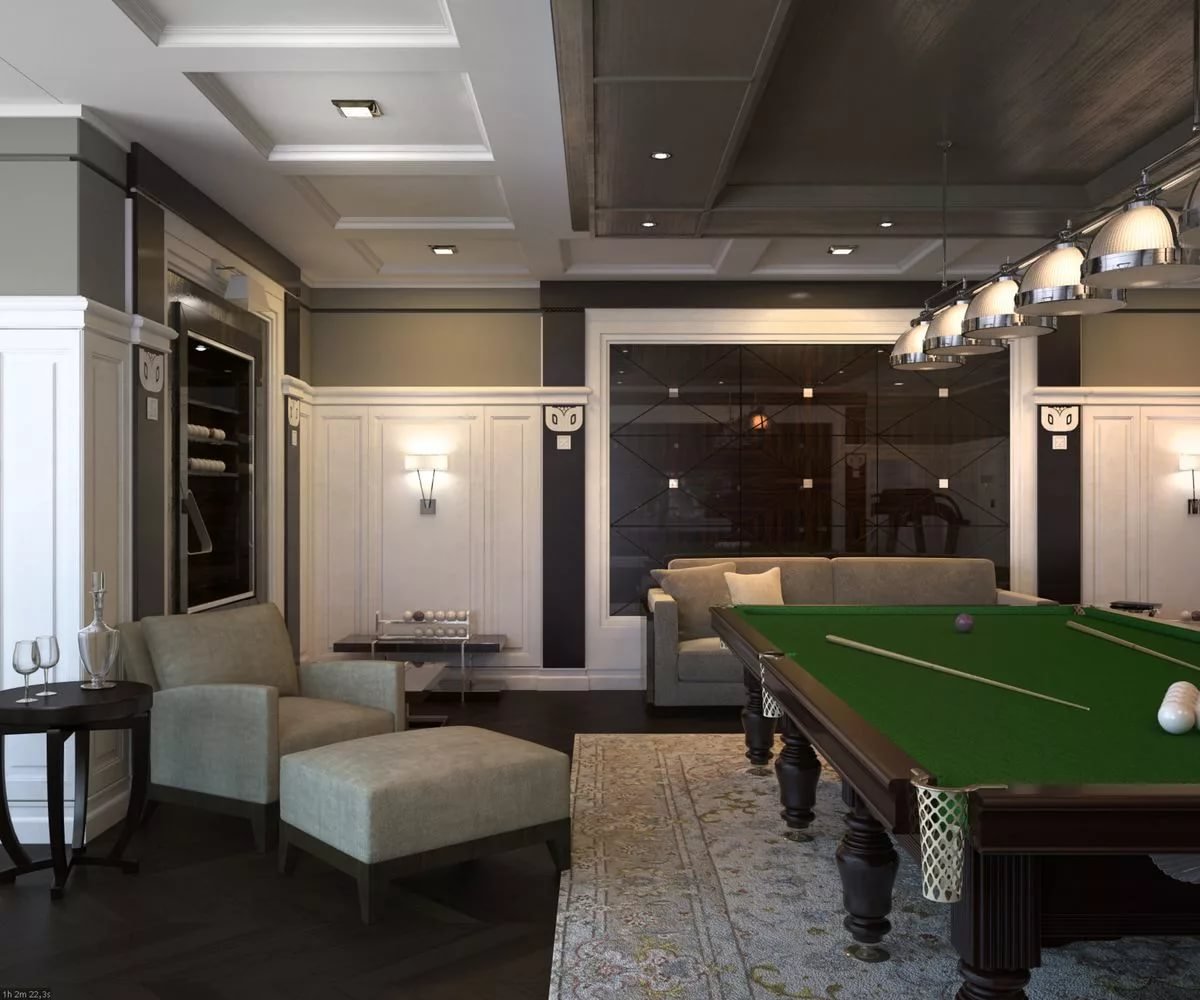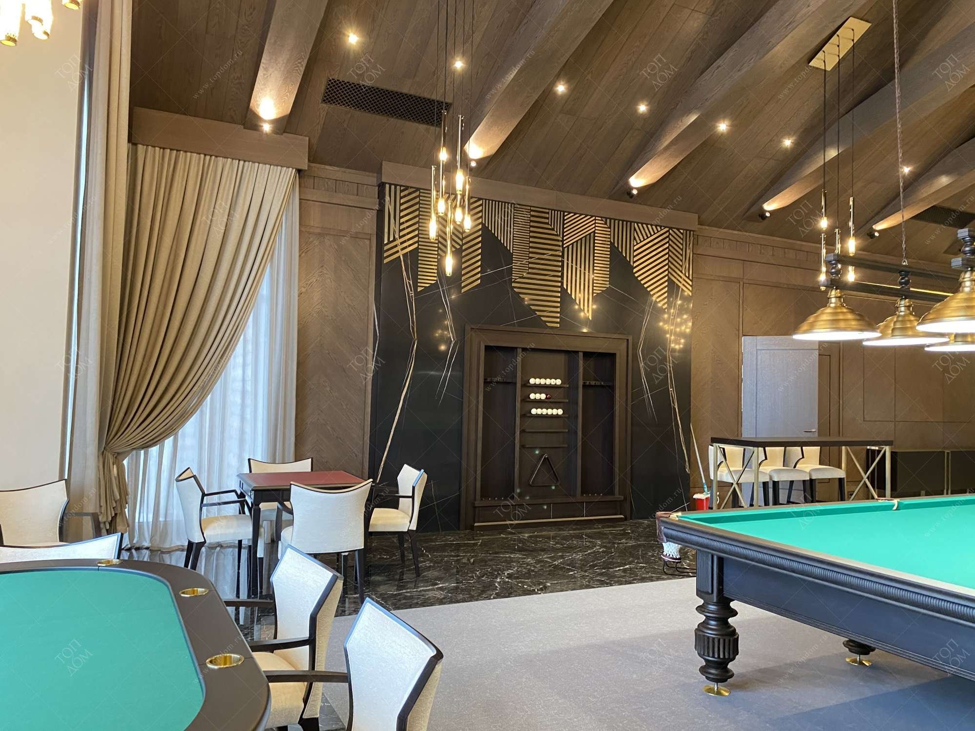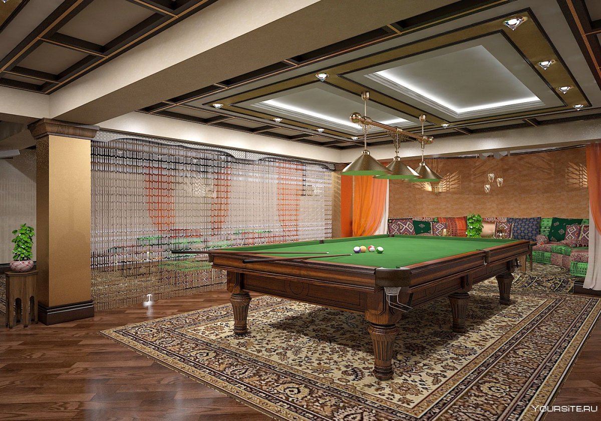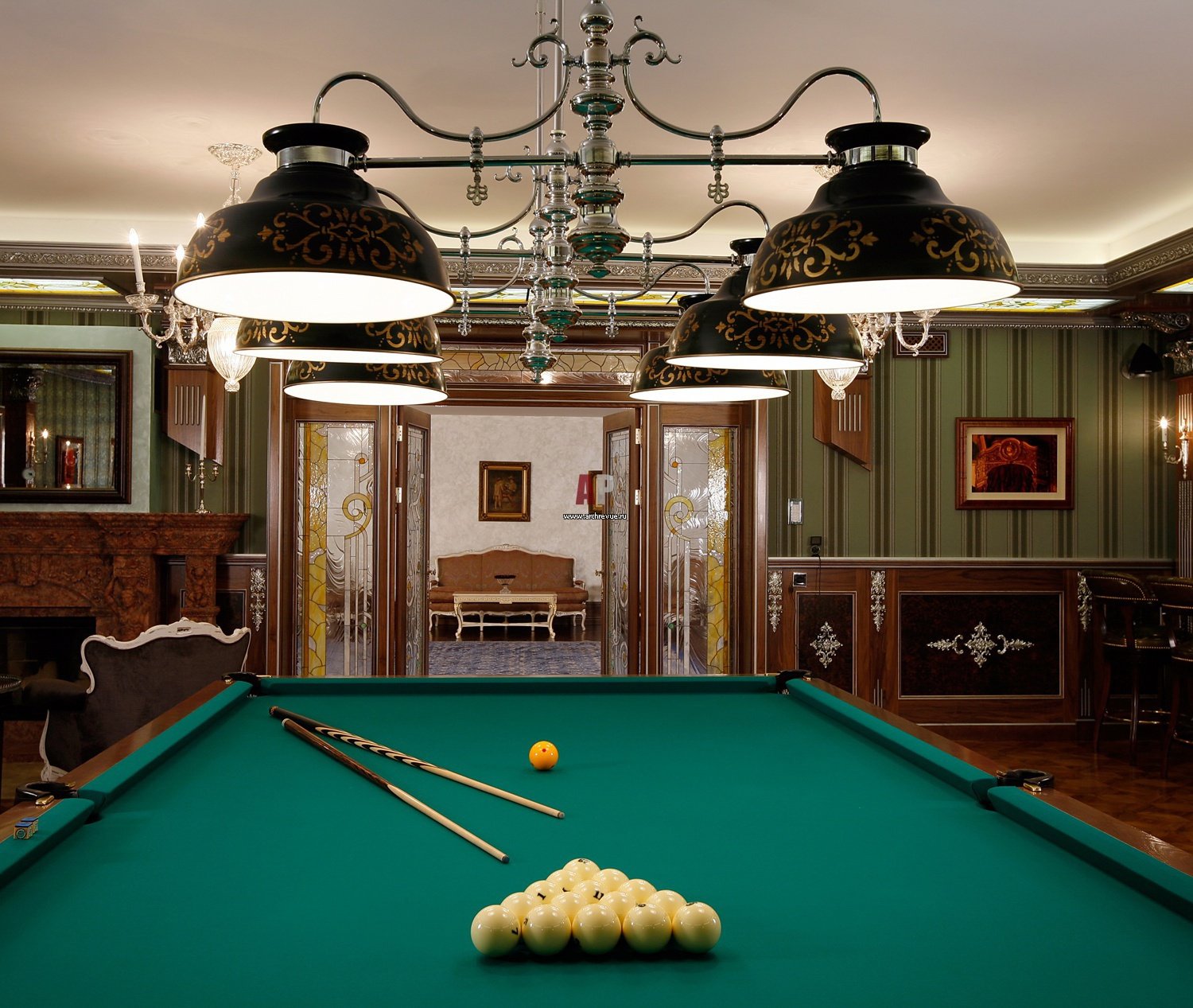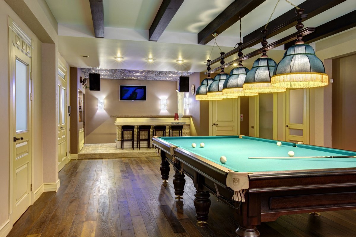 Дизайн бильярдной комнаты с барной стойкой в частном доме