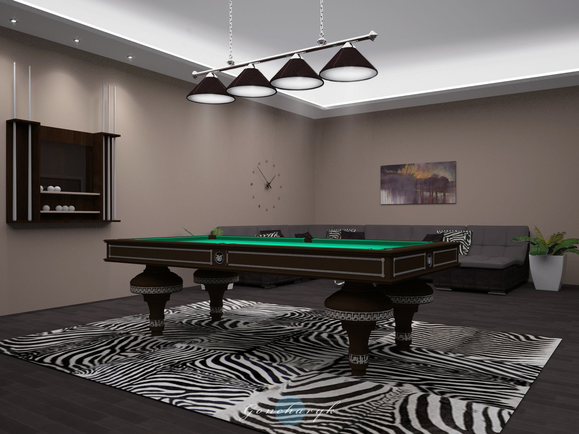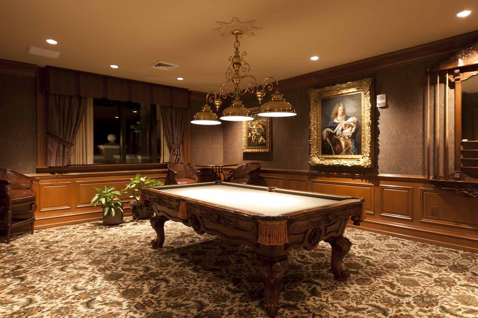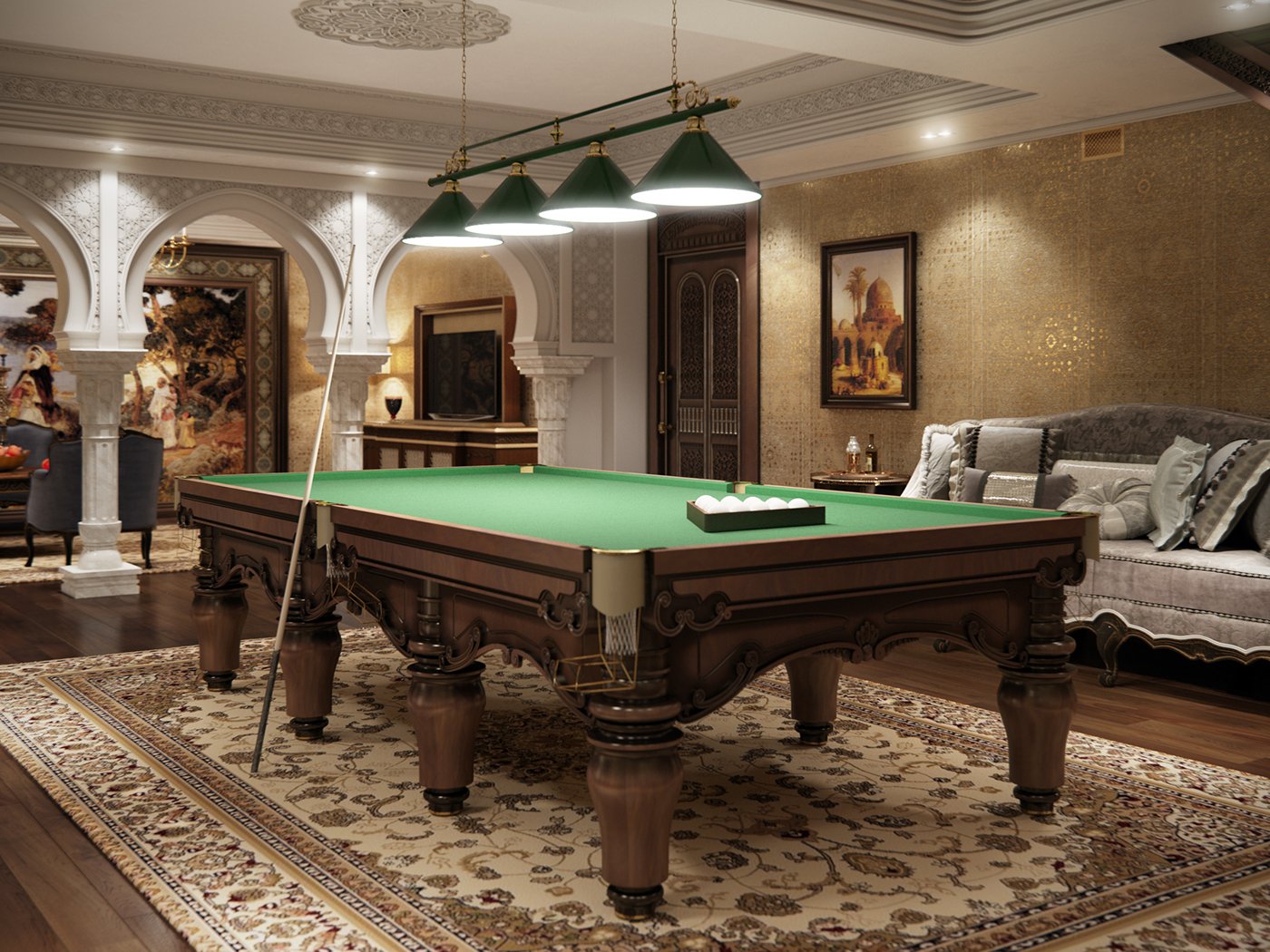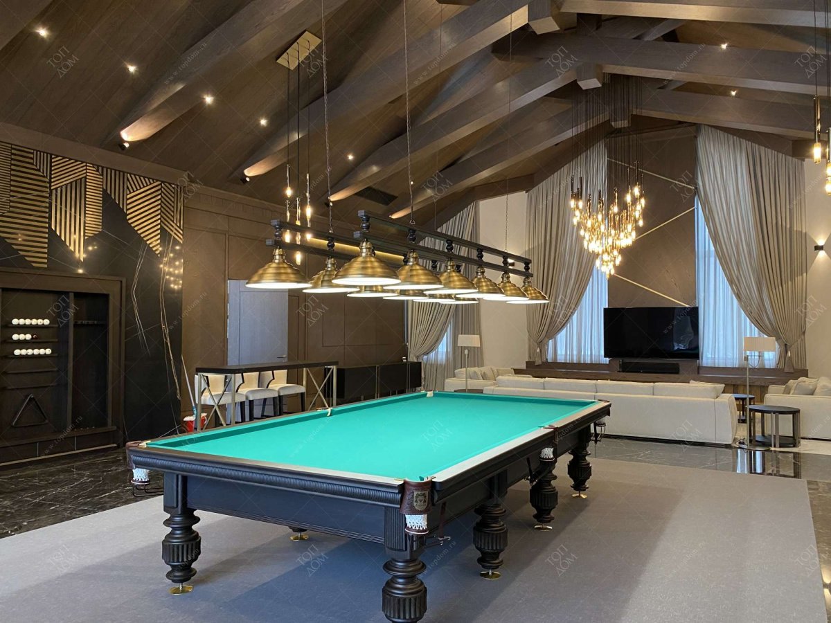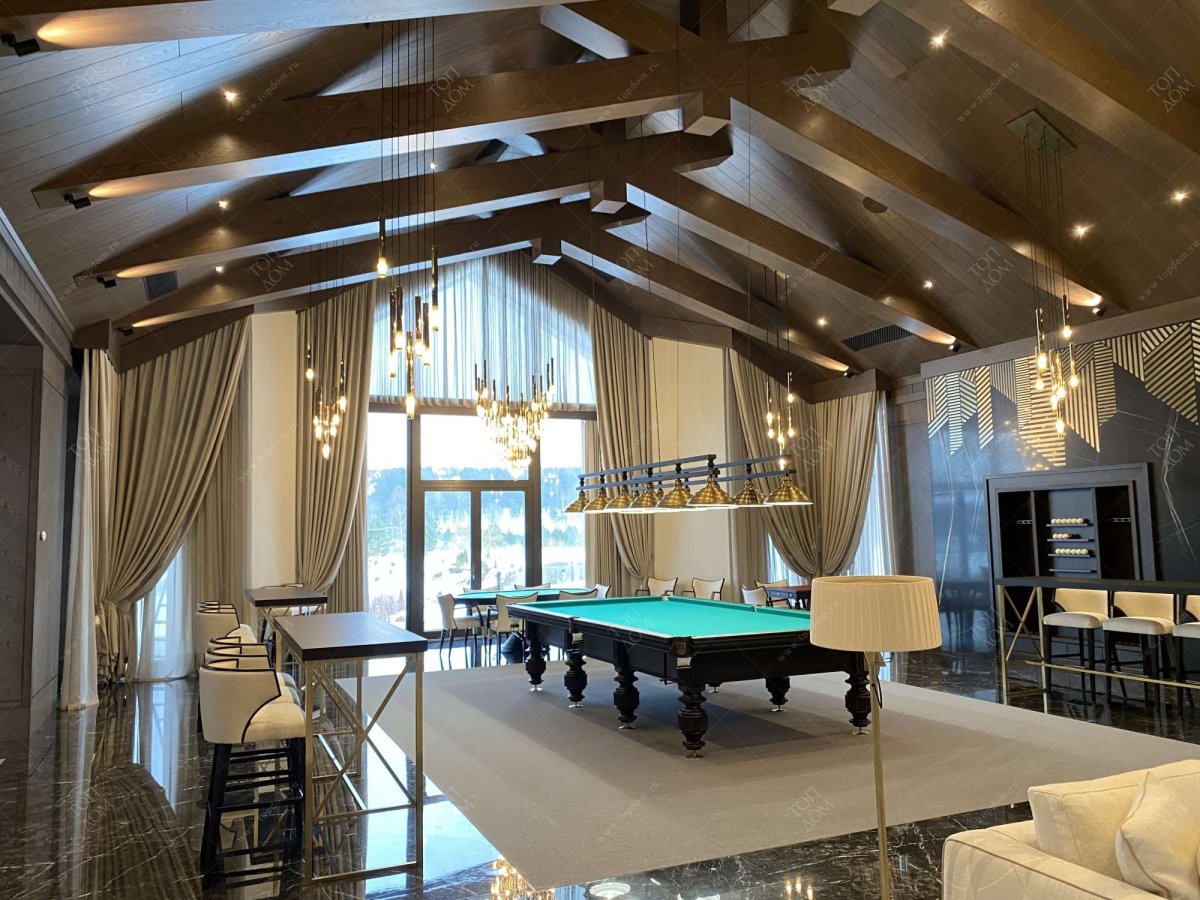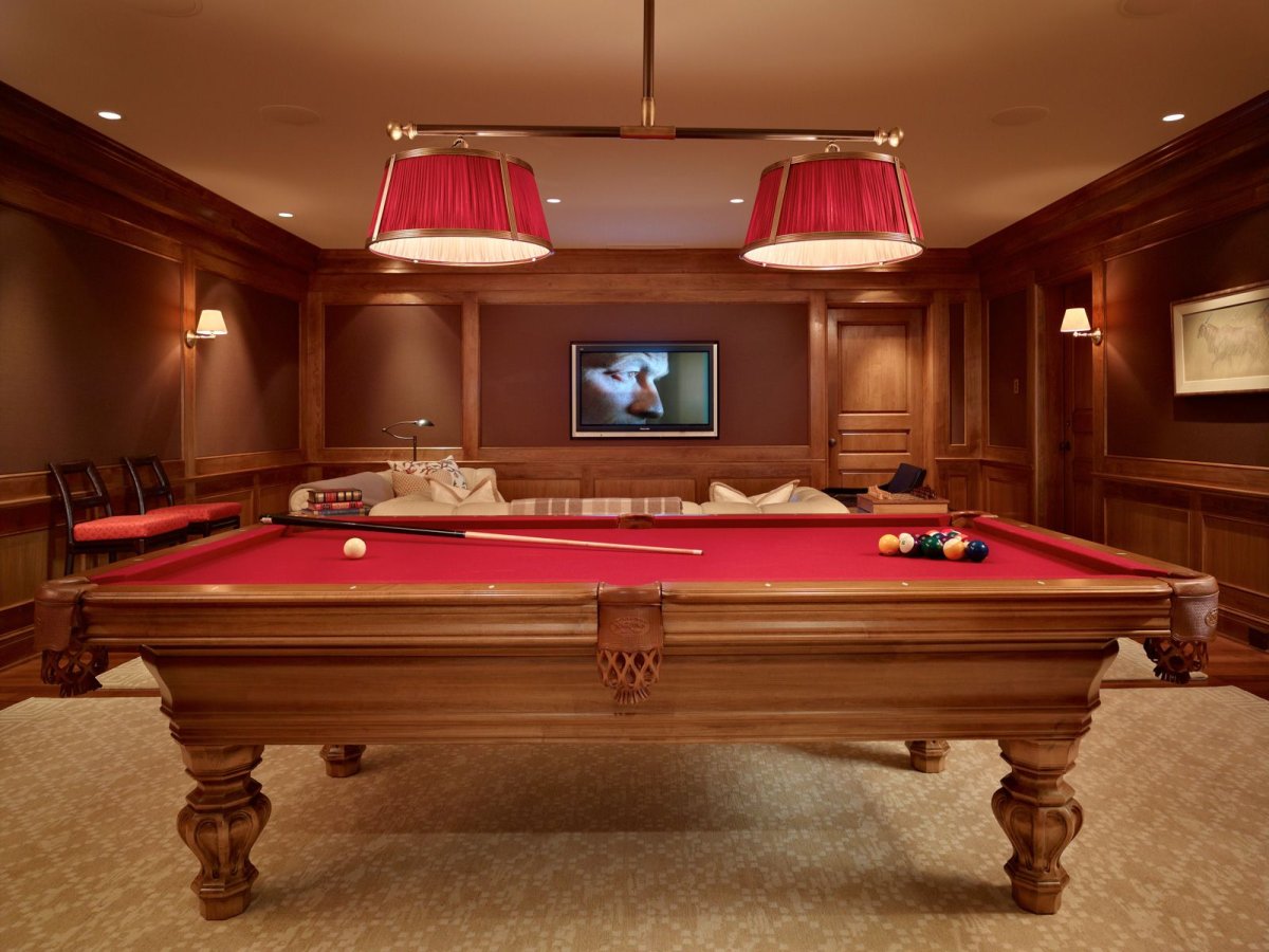 Дизайн бильярдной комнаты с барной стойкой в частном доме