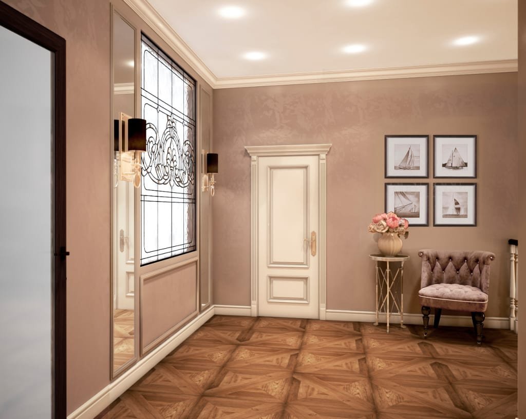 Прихожая в классическом стиле в светлых тонах