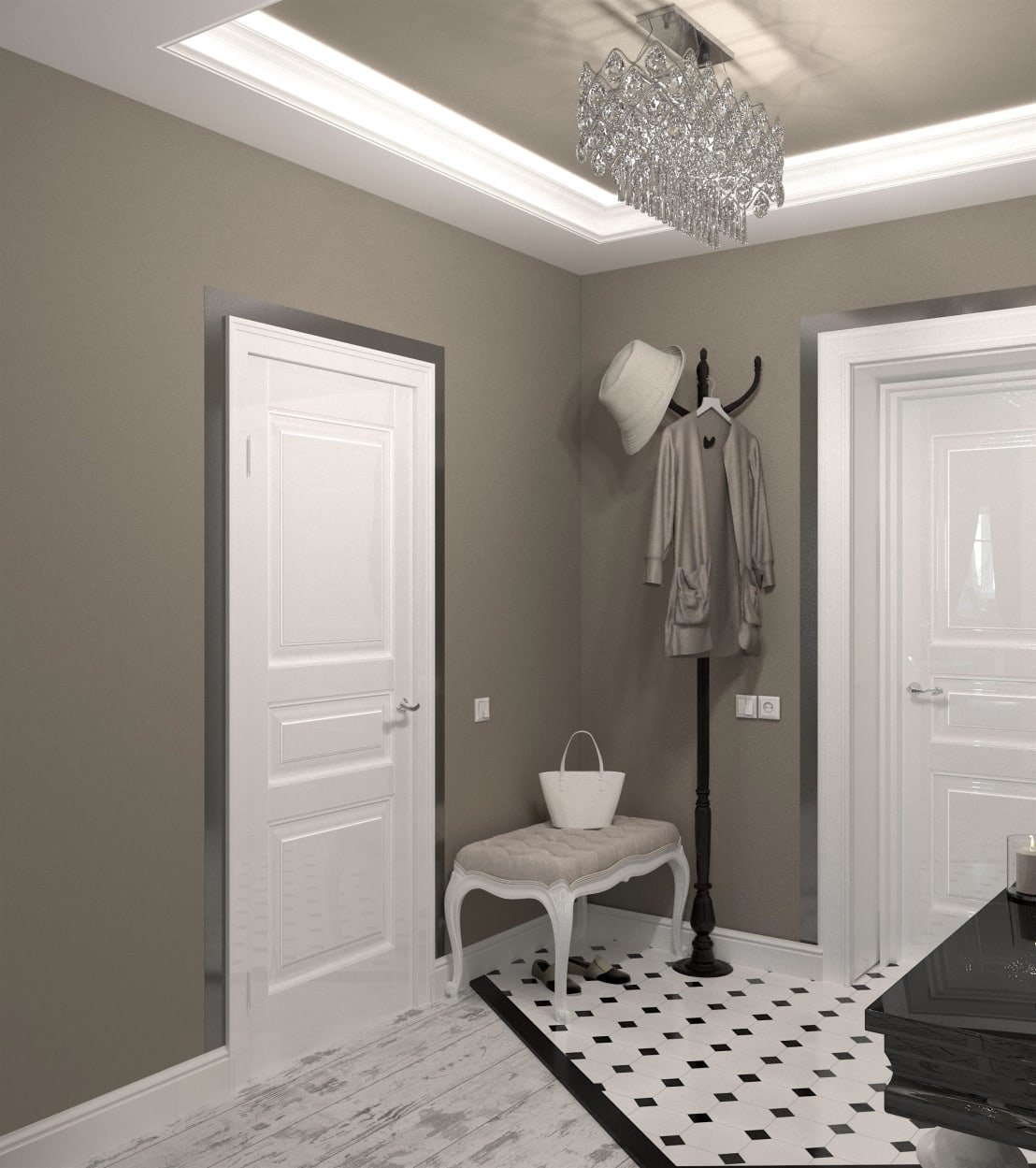 Прихожая с белыми дверями