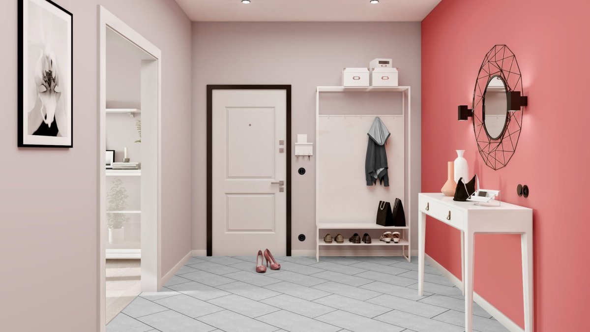 Розовые стены в прихожей
