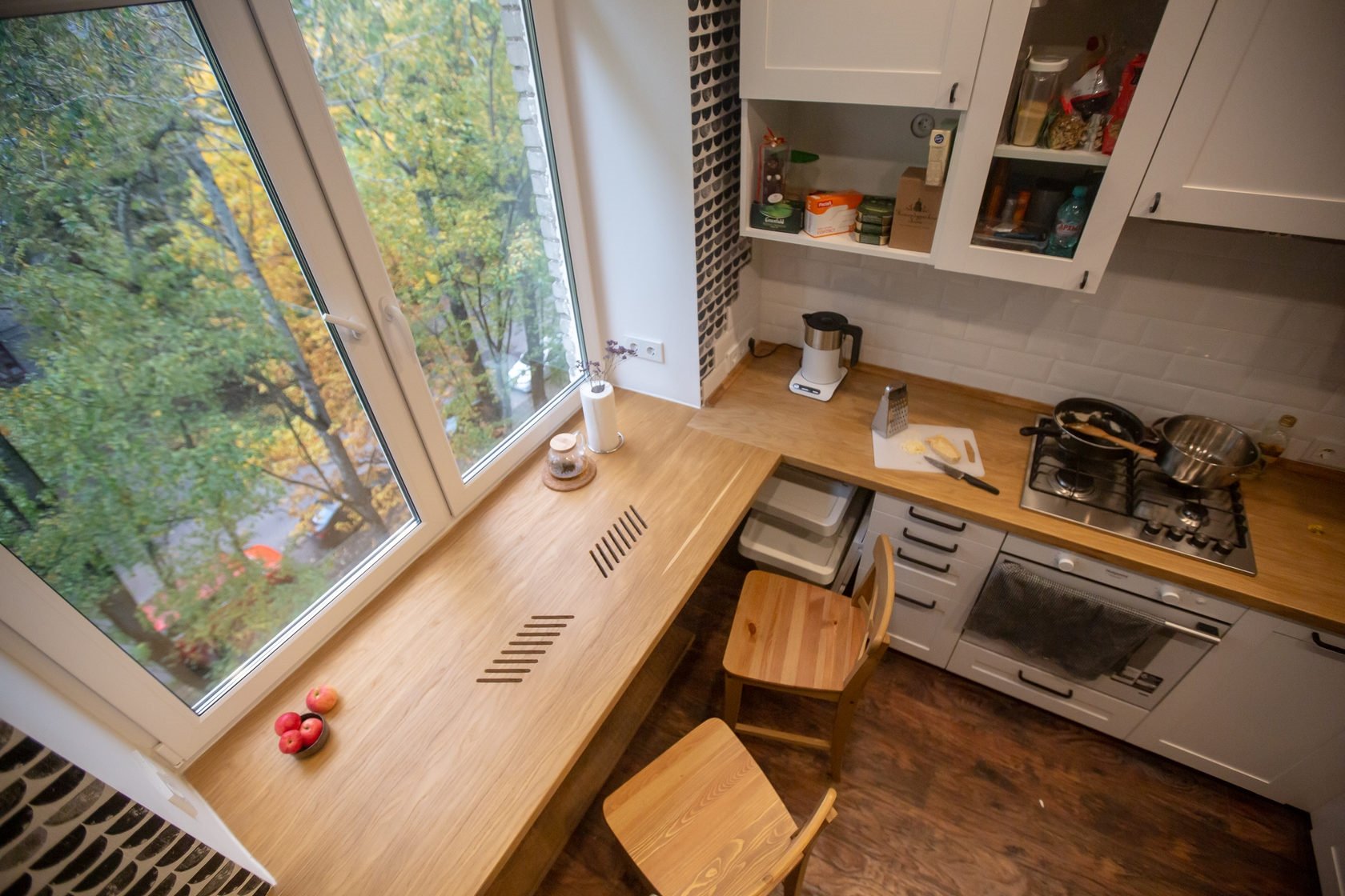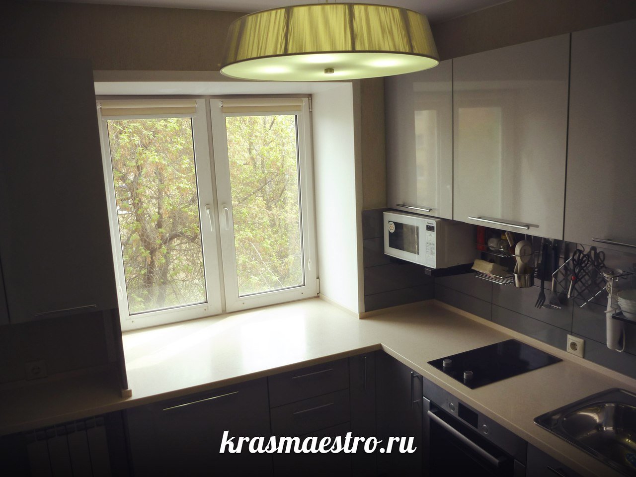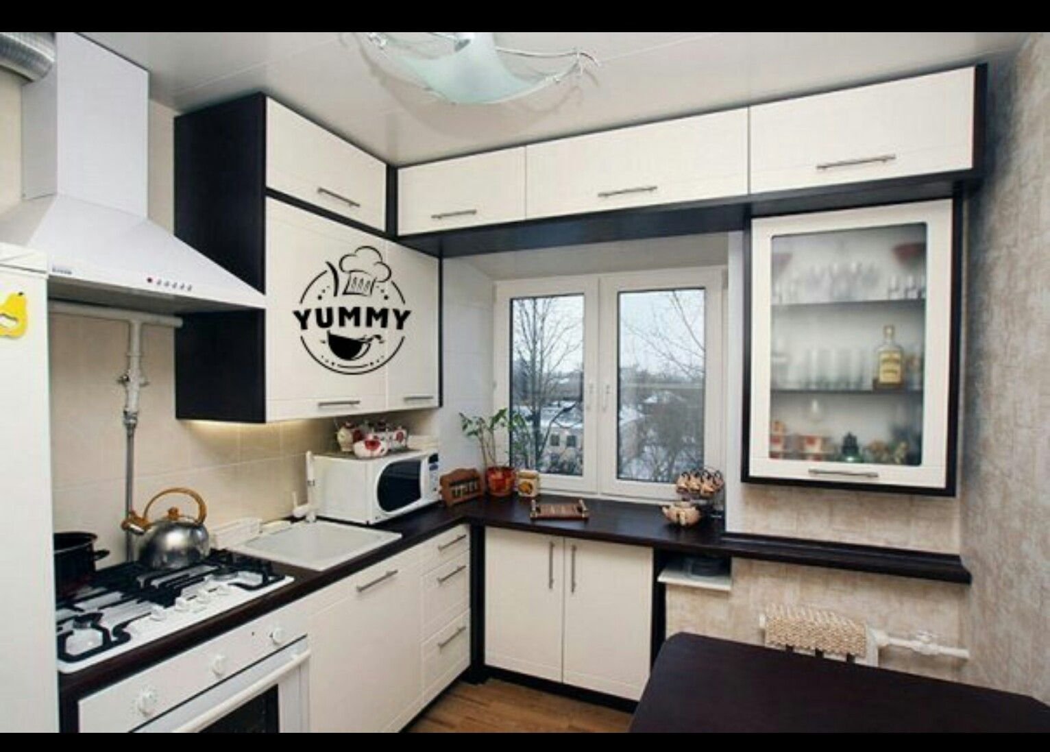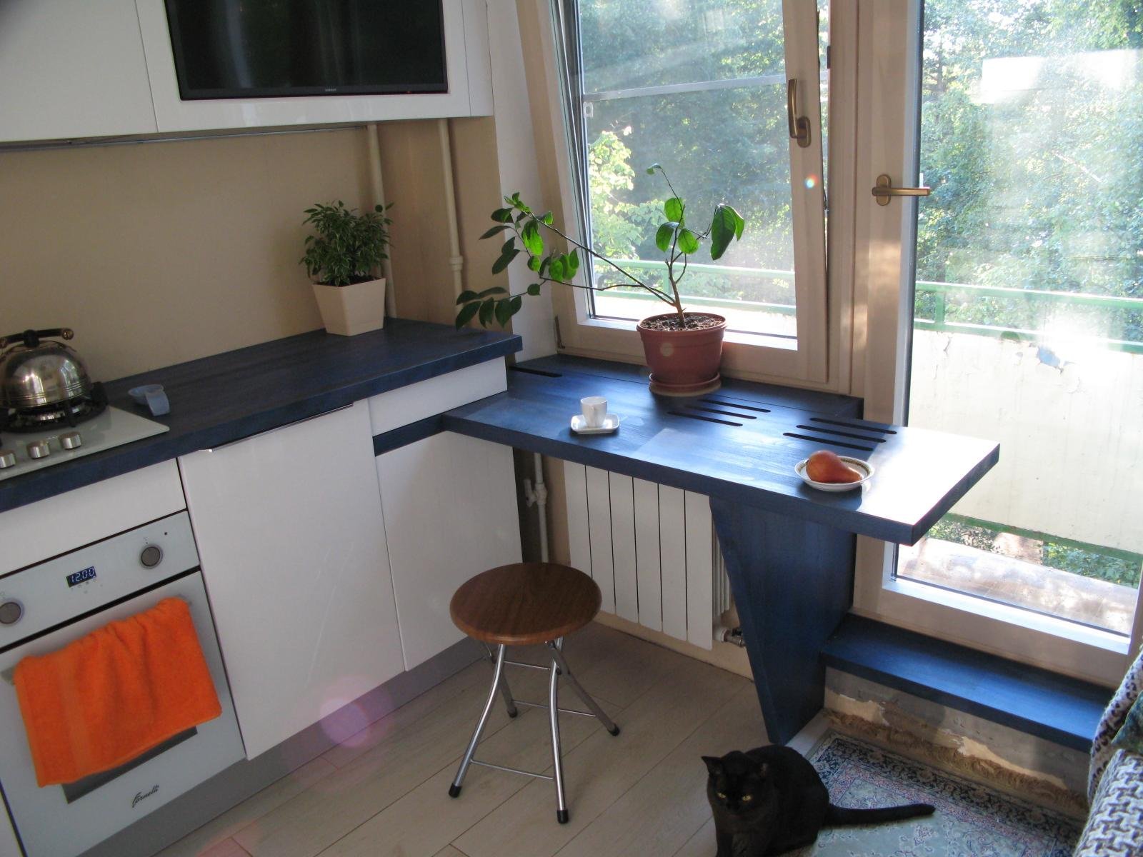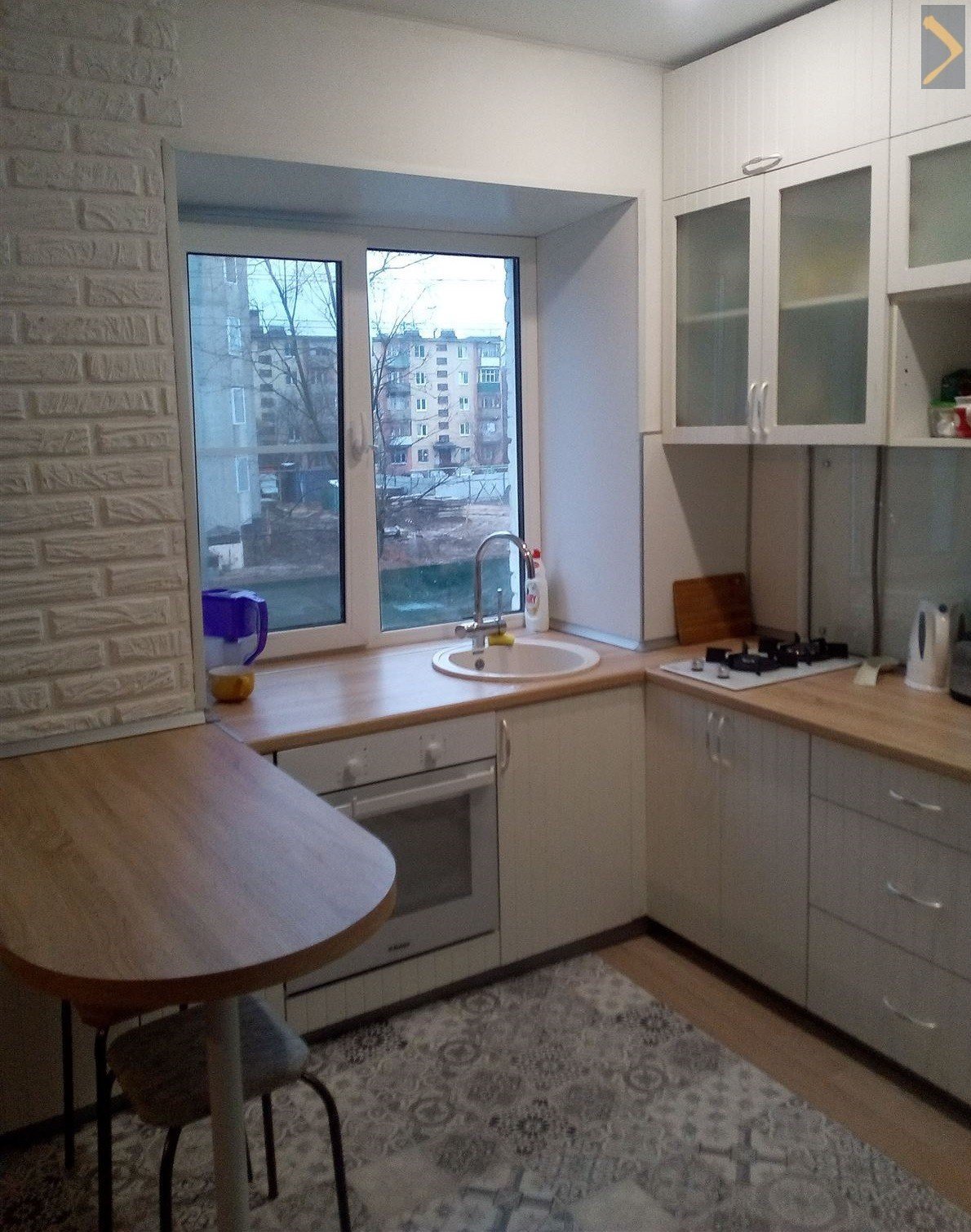 Кухня 6м2 подоконник-столешница.мойка у окна