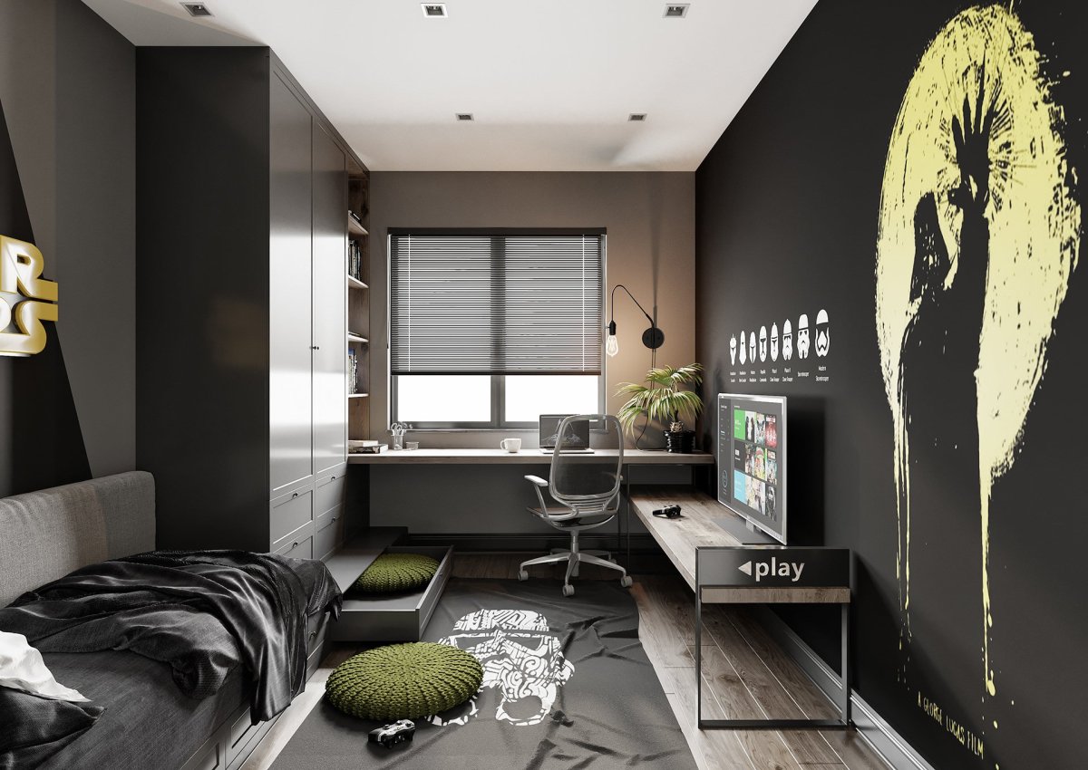 Черный интерьер комнаты для подростка