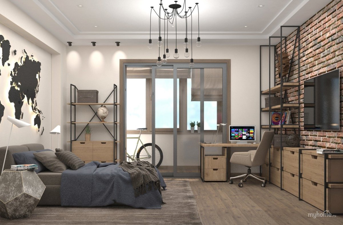 Комната в стиле лофт для парня 12кв м