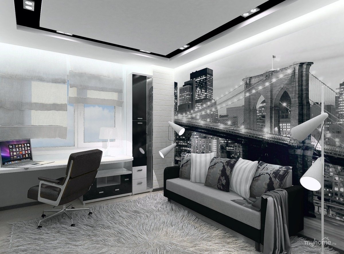 Черно белая комната для подростка