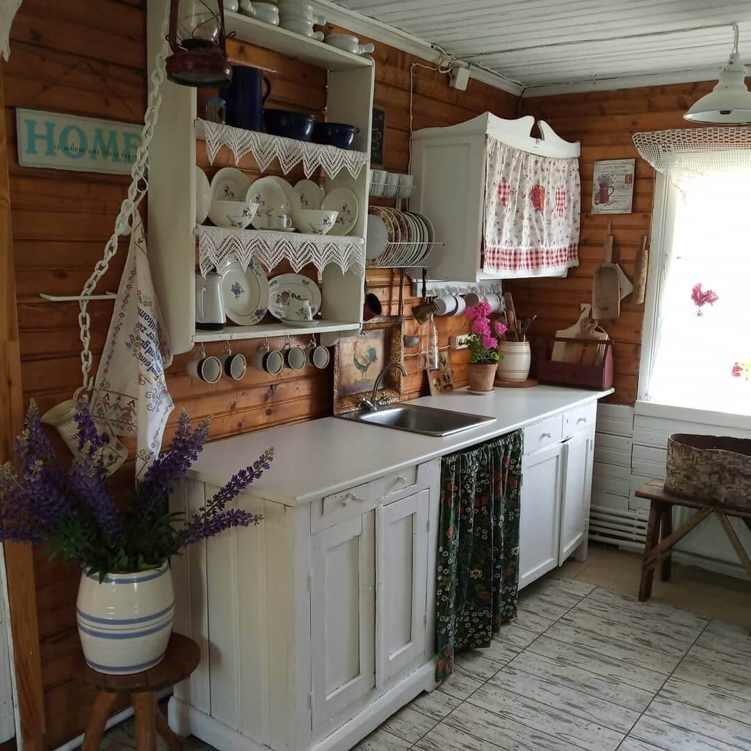 Кухня в стиле Прованс на даче в деревянном доме