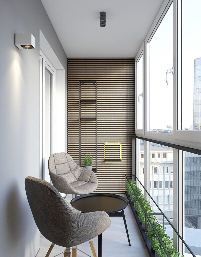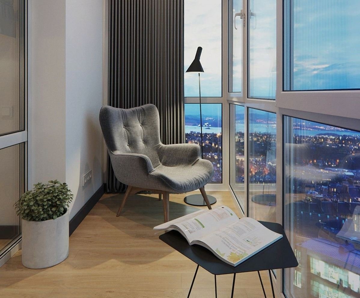 Дизайн маленького балкона с панорамными окнами