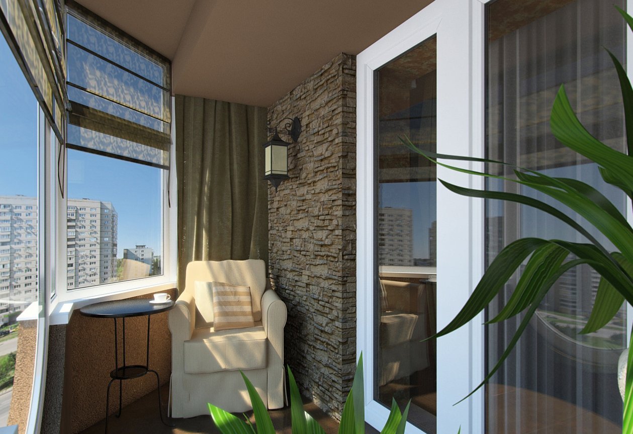 Интерьер балкона с панорамным остеклением
