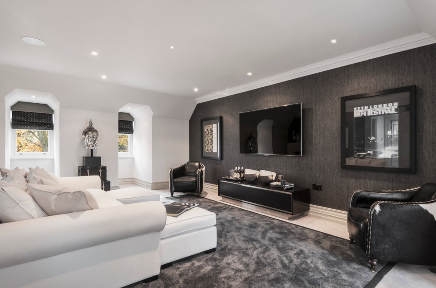 Интерьер гостиной в частном доме темные обои