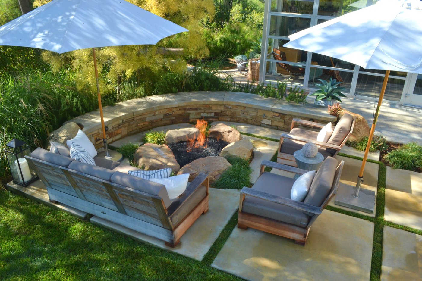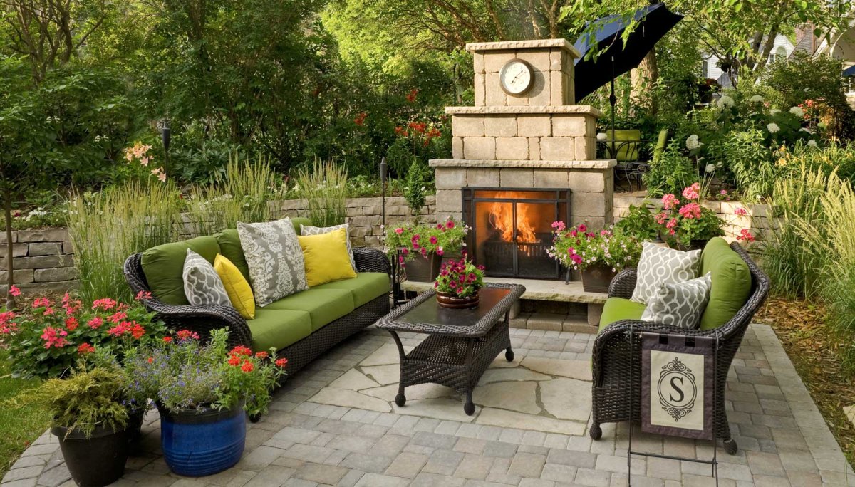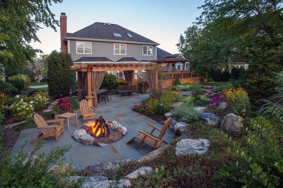 Зона патио с кострищем