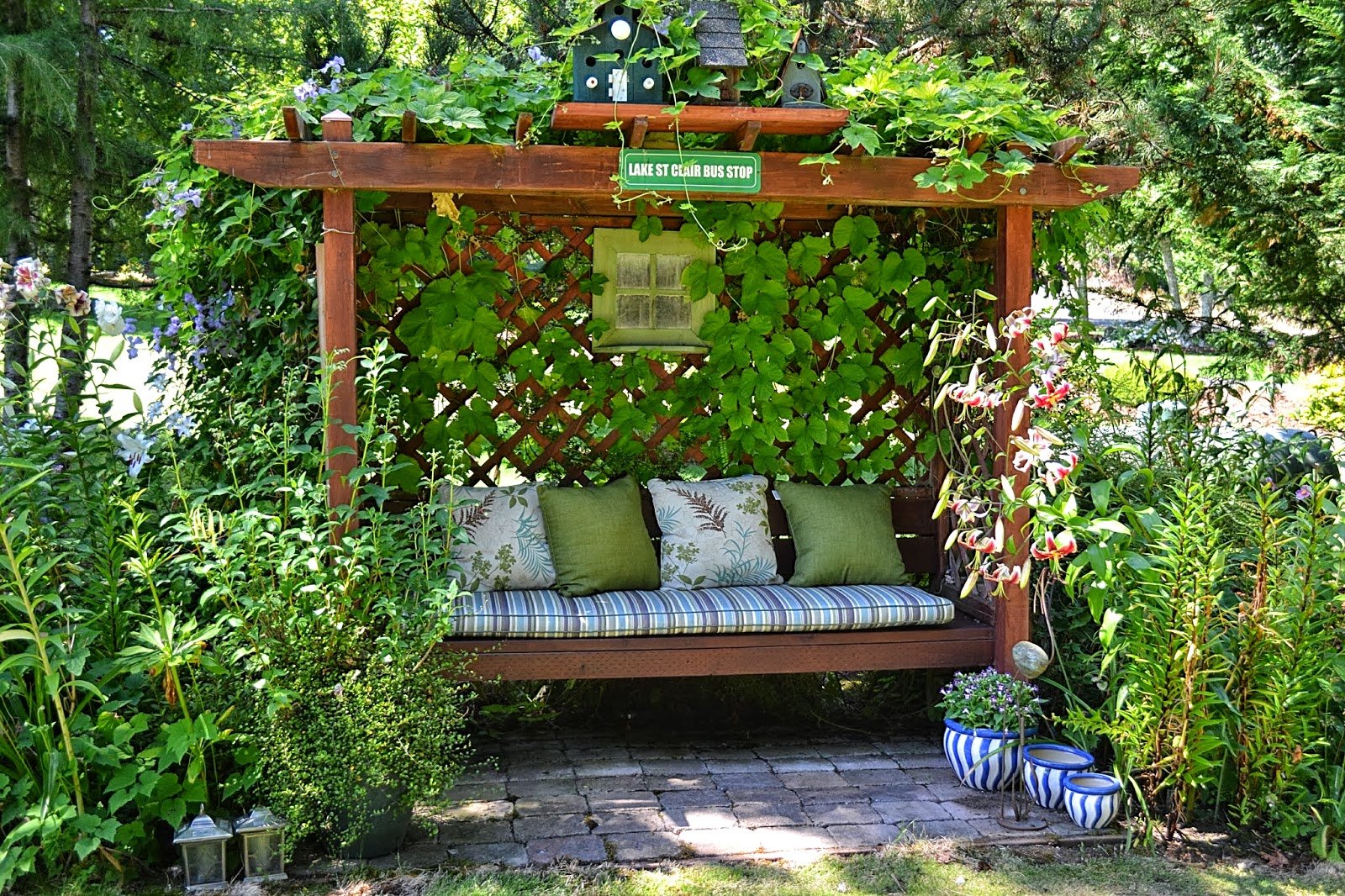 Зона отдыха садовые качели пергола
