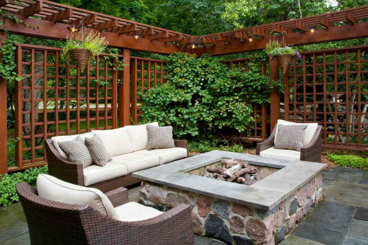 Пергола патио с костровищем