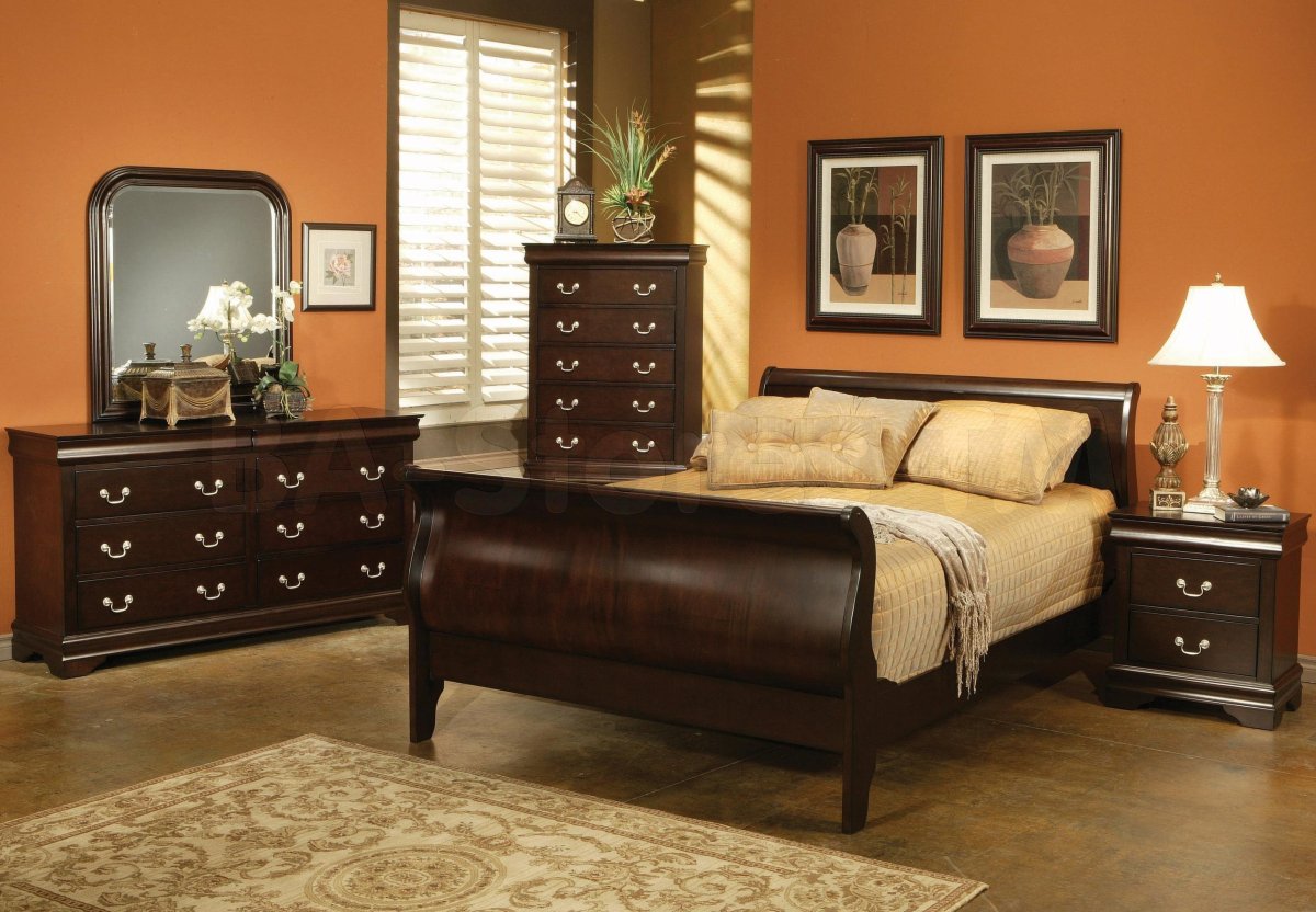 Спальня с темно коричневой мебелью