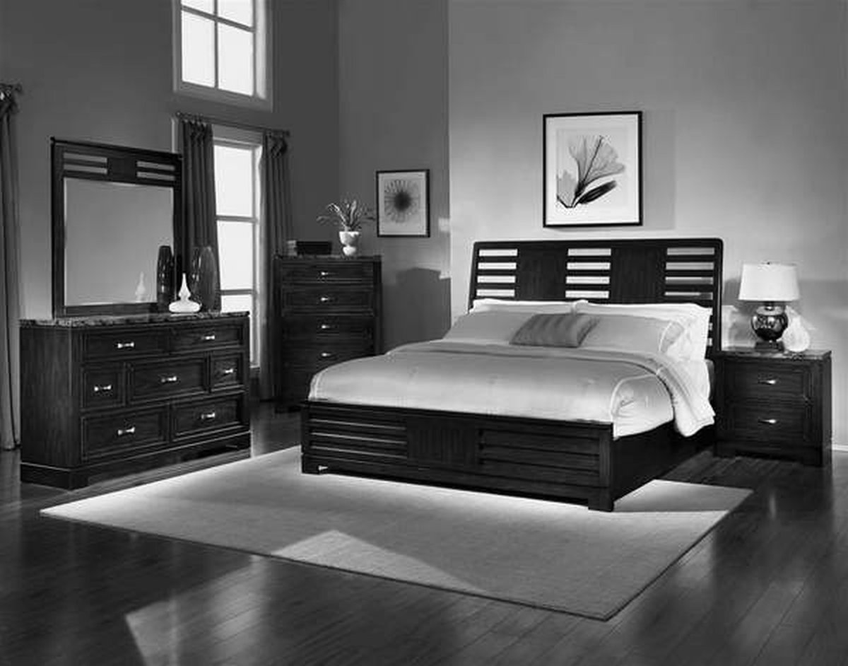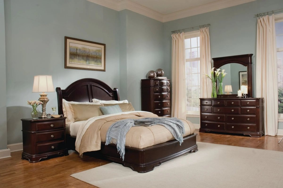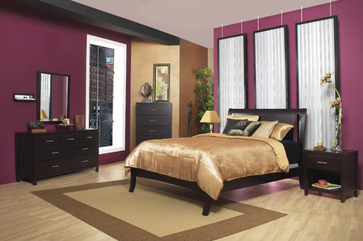 Спальня с темной мебелью