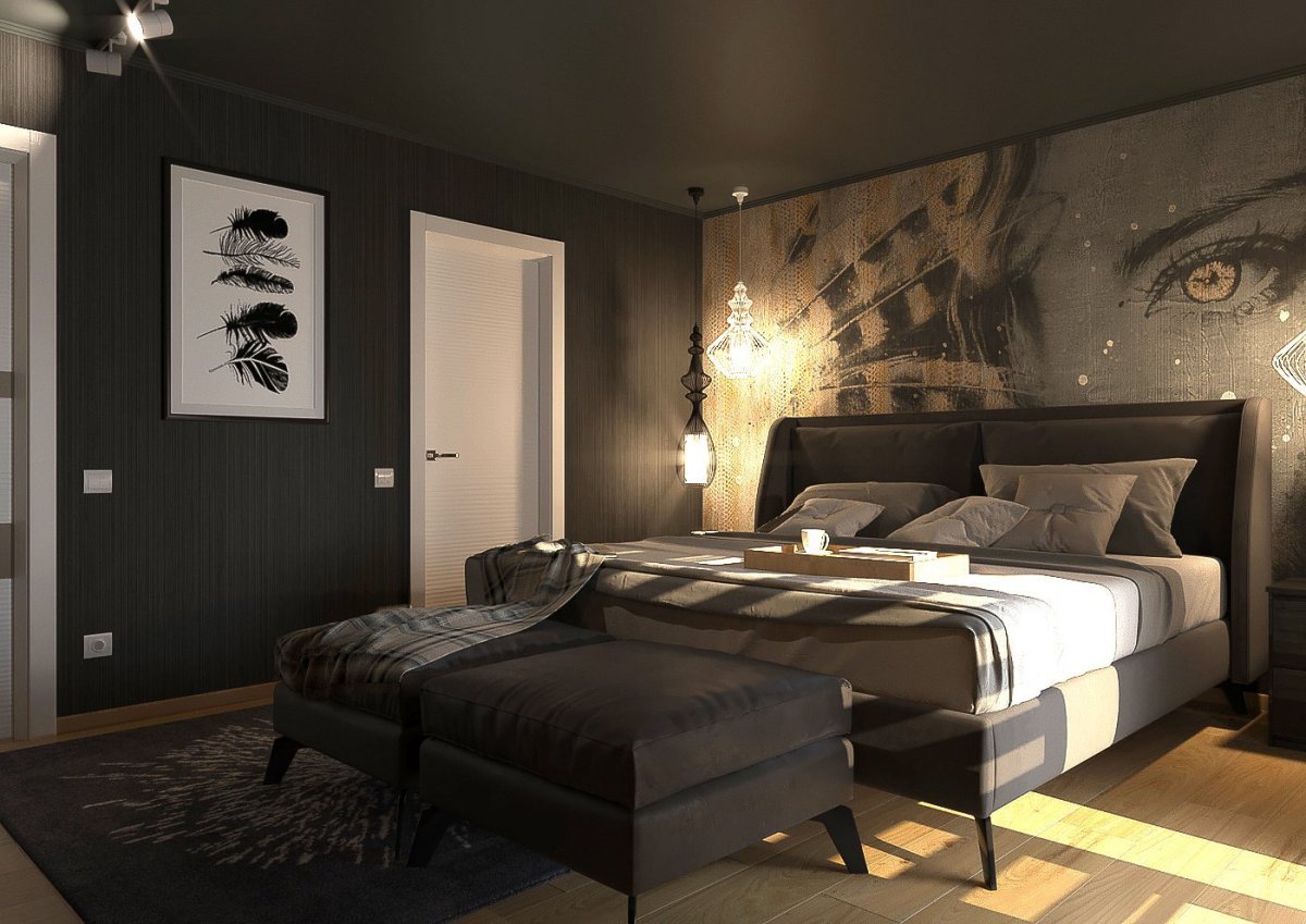Спальня в темных тонах