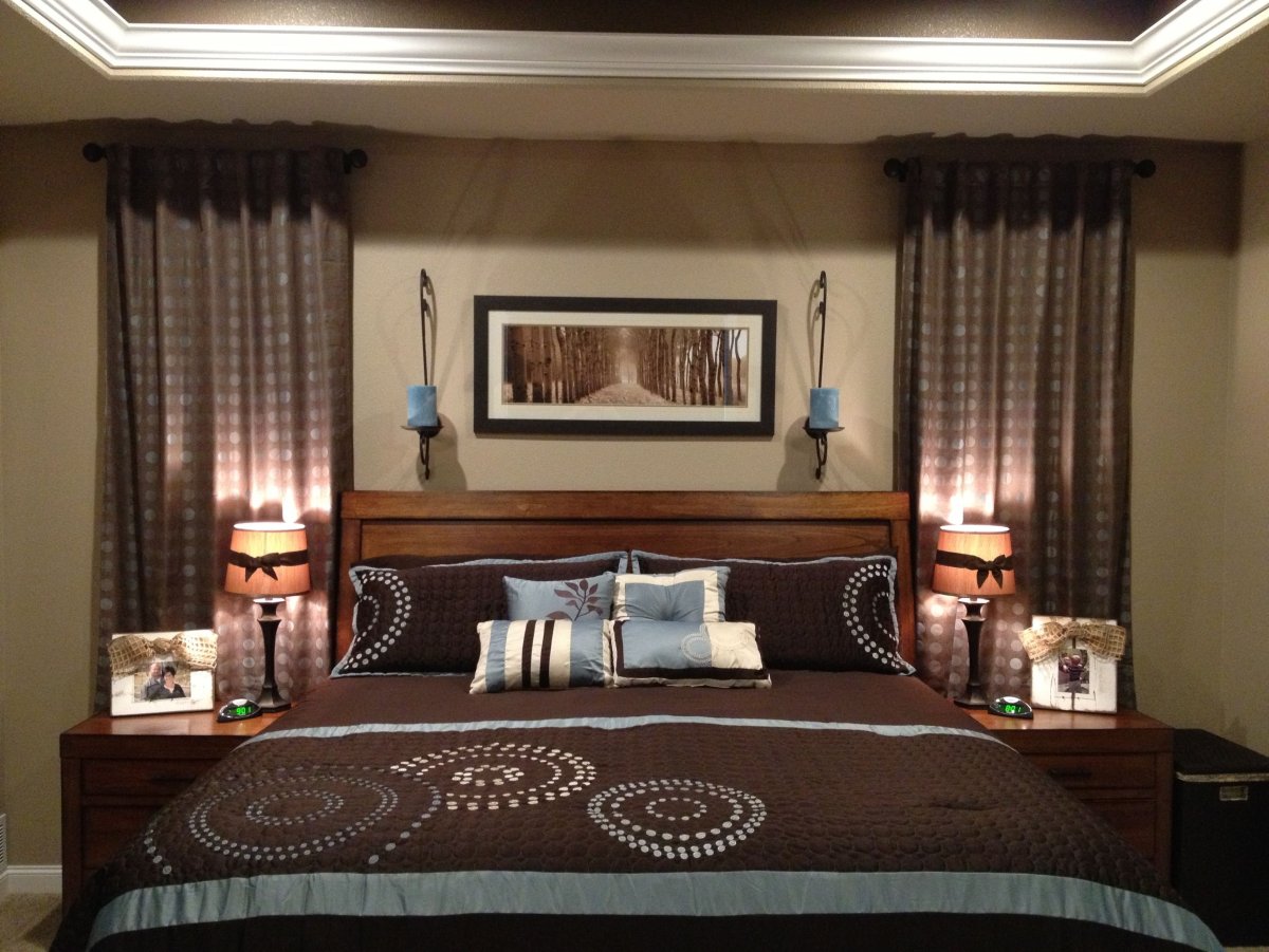 Коричнево голубая спальня