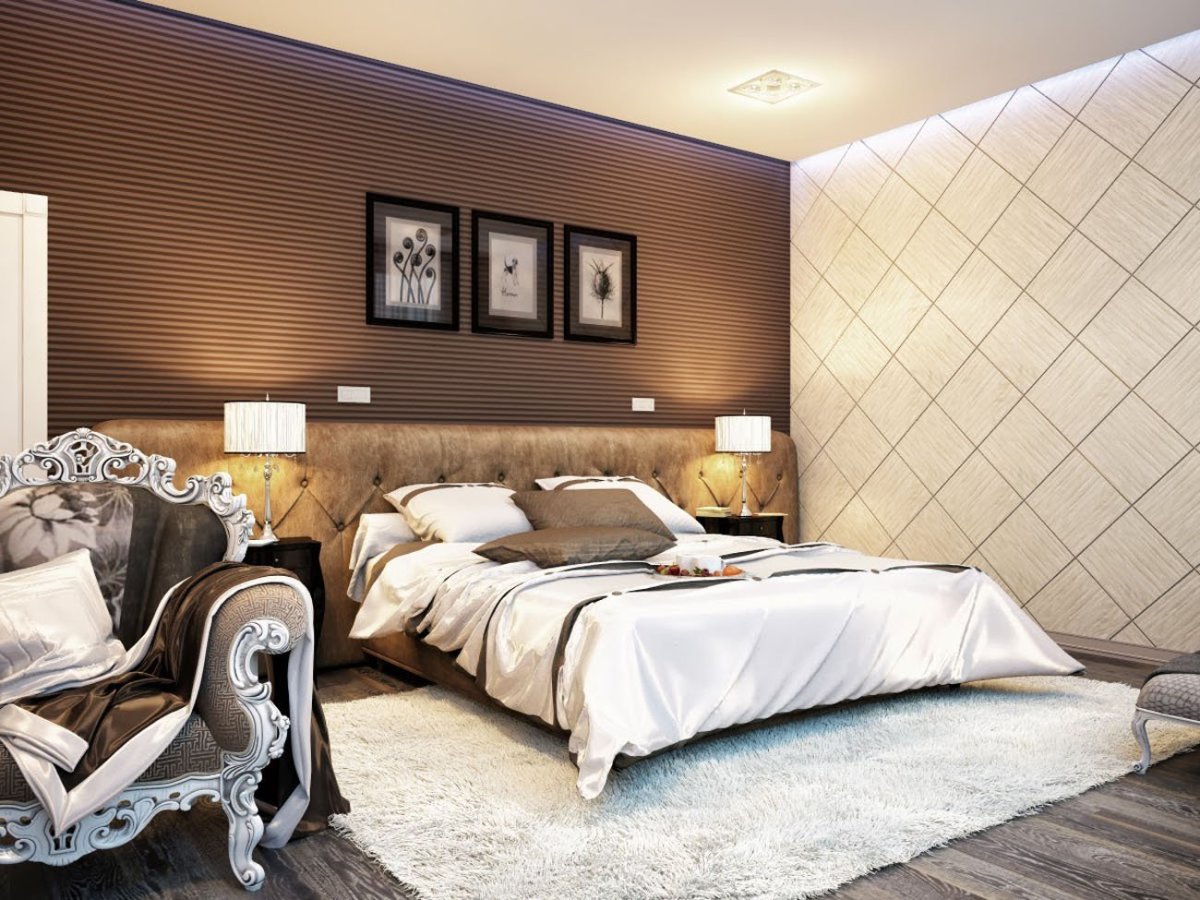 Обои под коричневую мебель в спальне