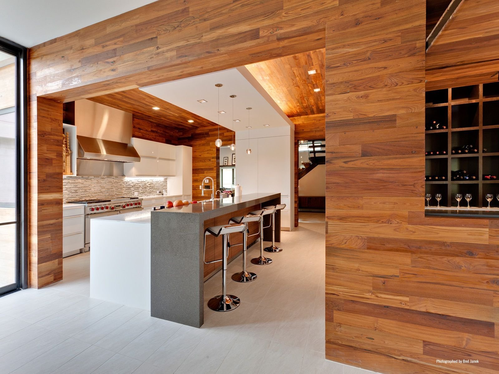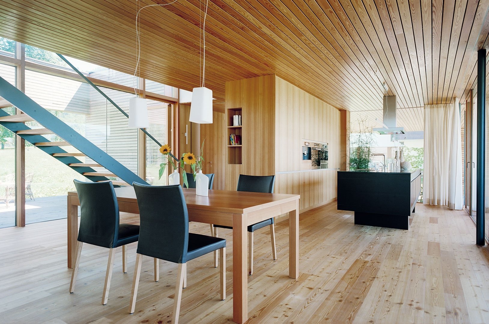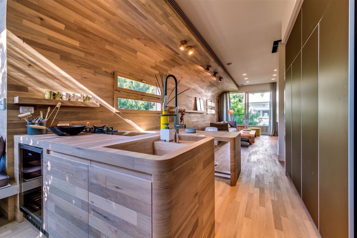 Кухня в современном стиле в доме из бруса
