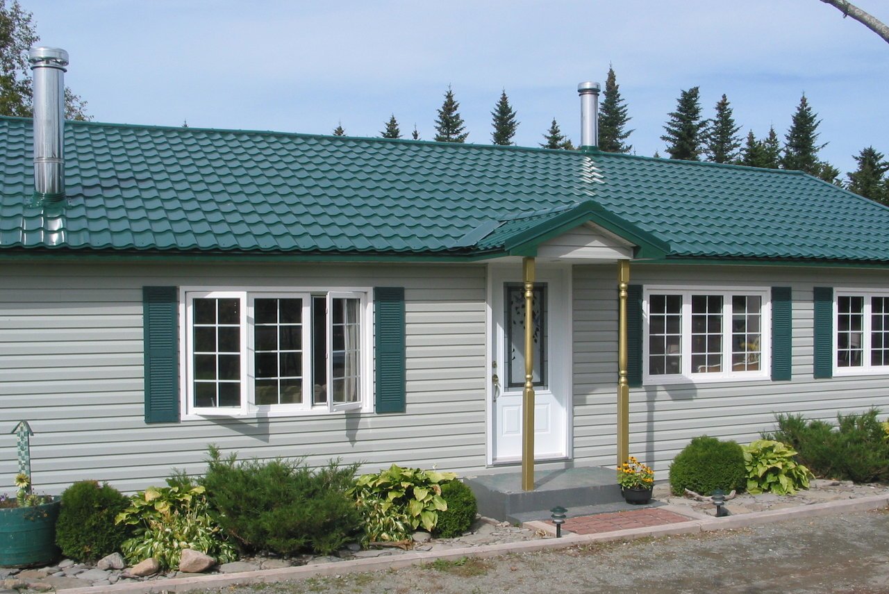 Одноэтажный дом с зеленой крышей