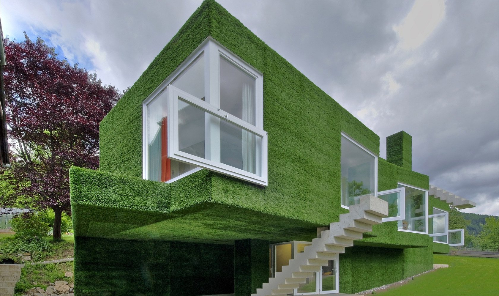 Дом с зеленым фасадом