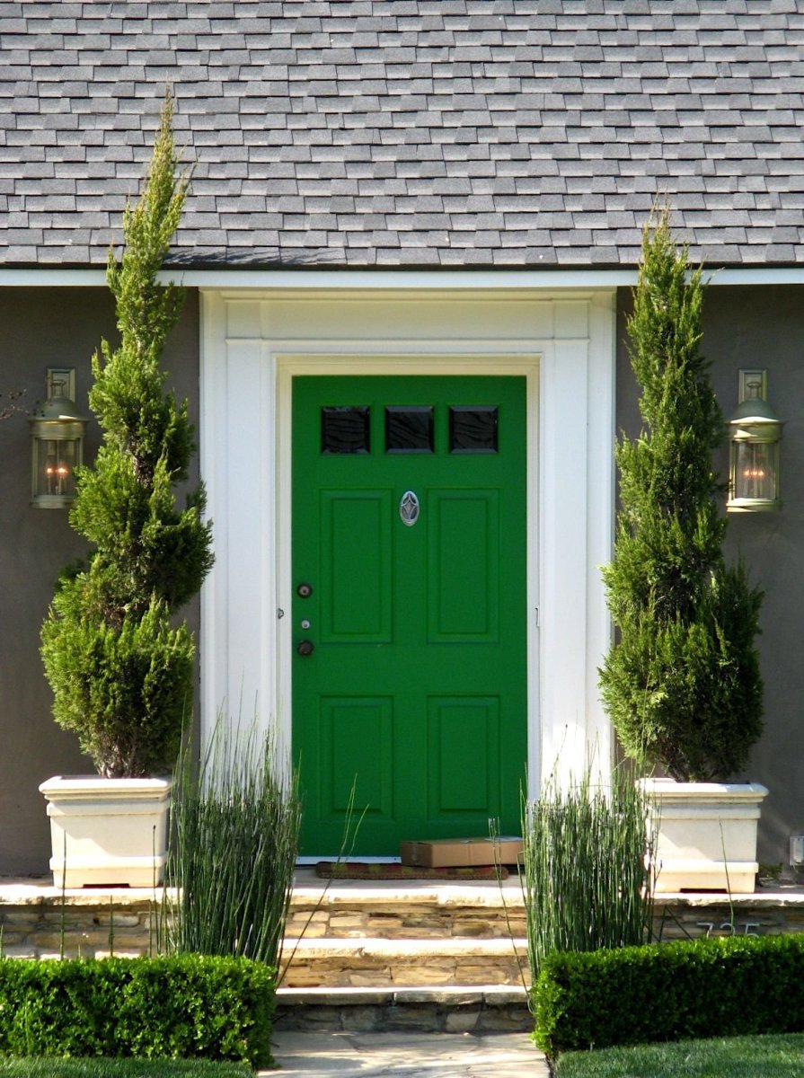 Зеленая входная дверь в дом