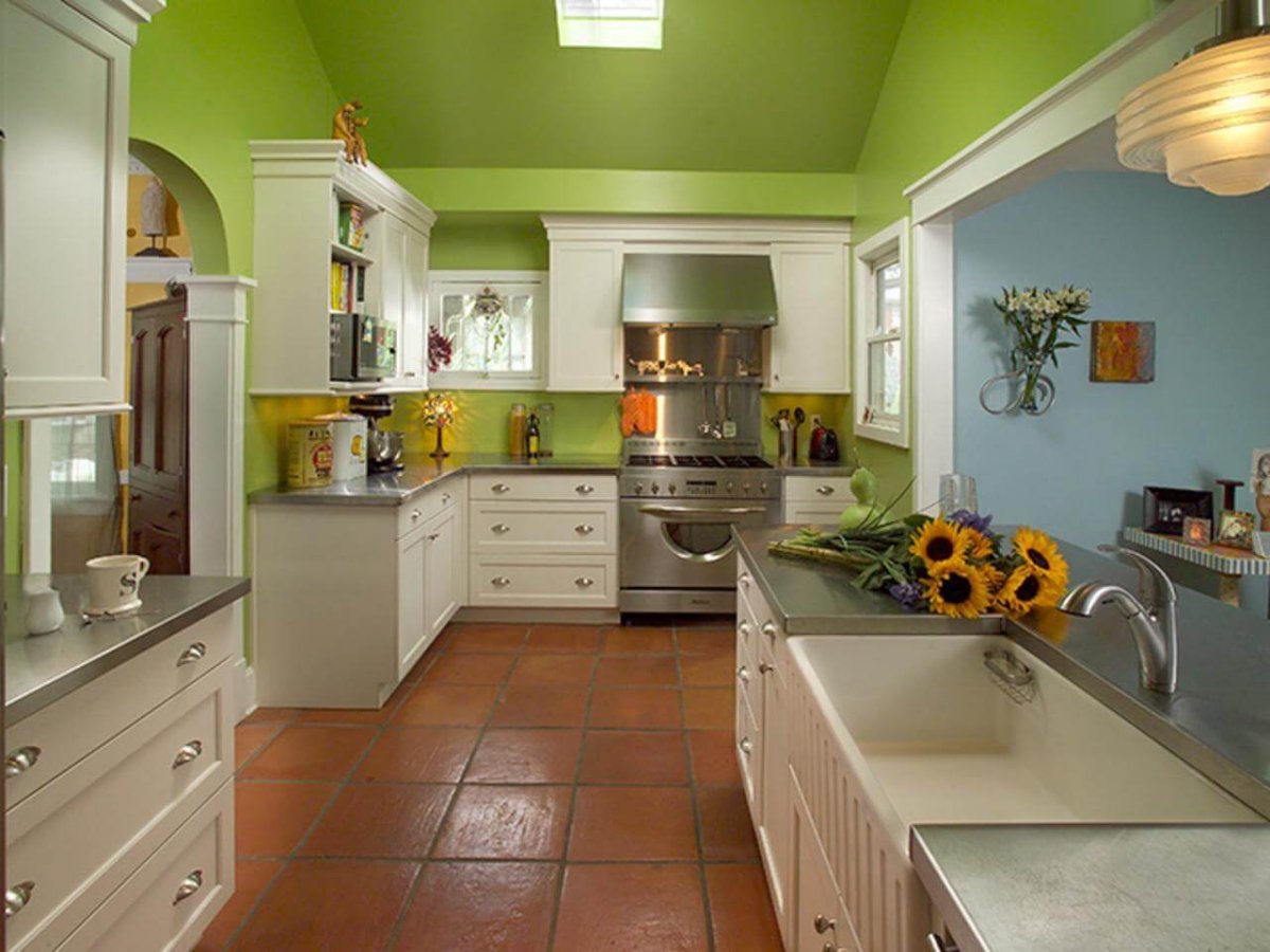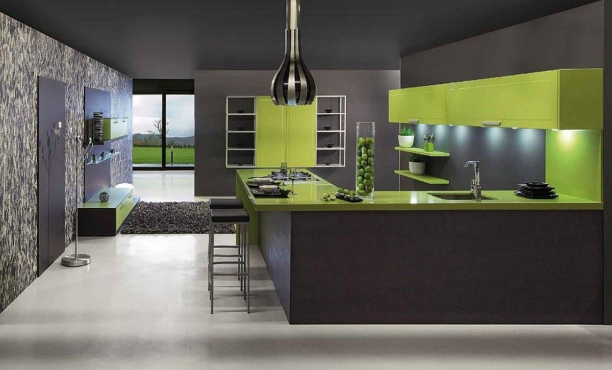 Салатовая кухня в интерьере