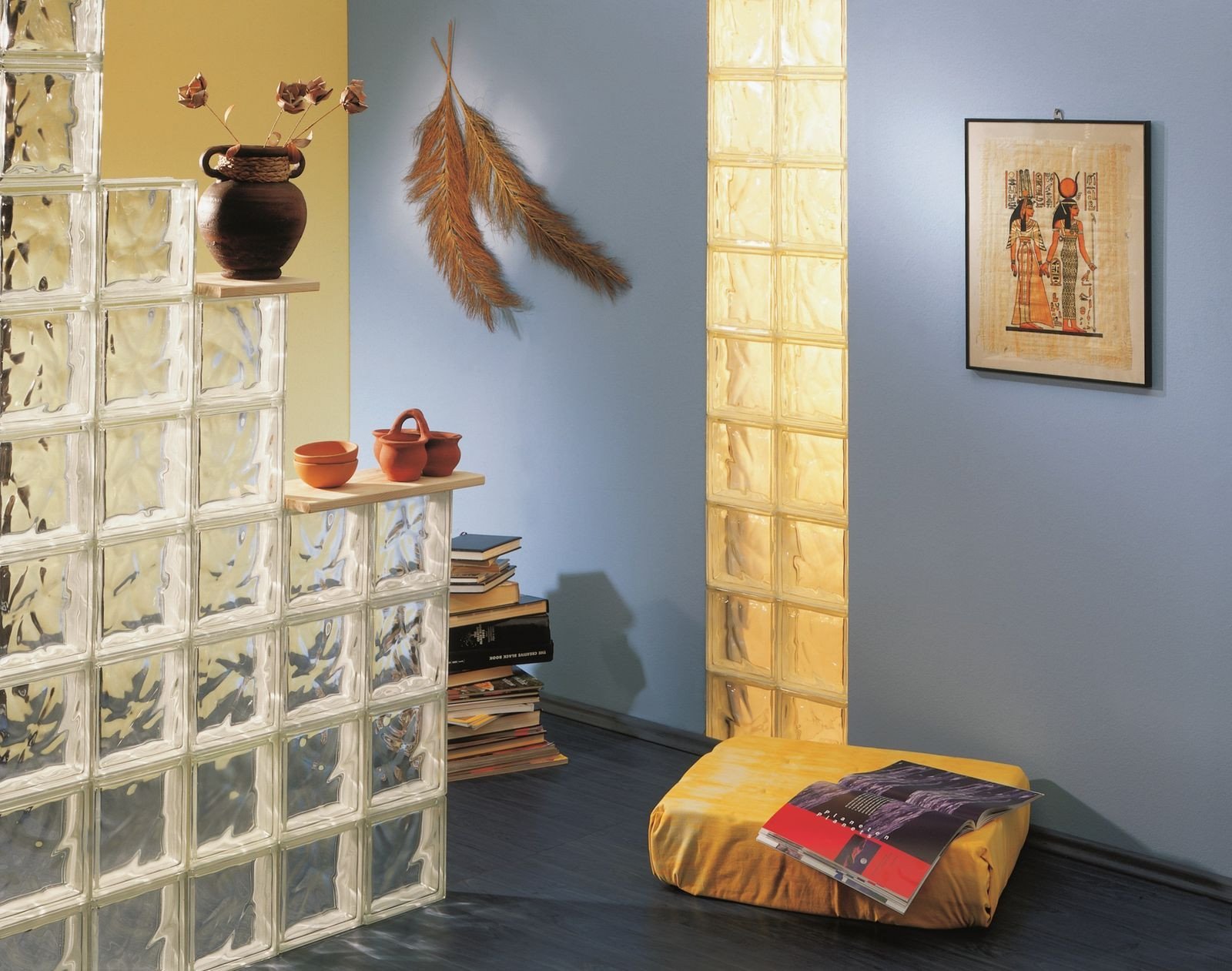 Стеклянные блоки для перегородок в интерьере Леруа Мерлен