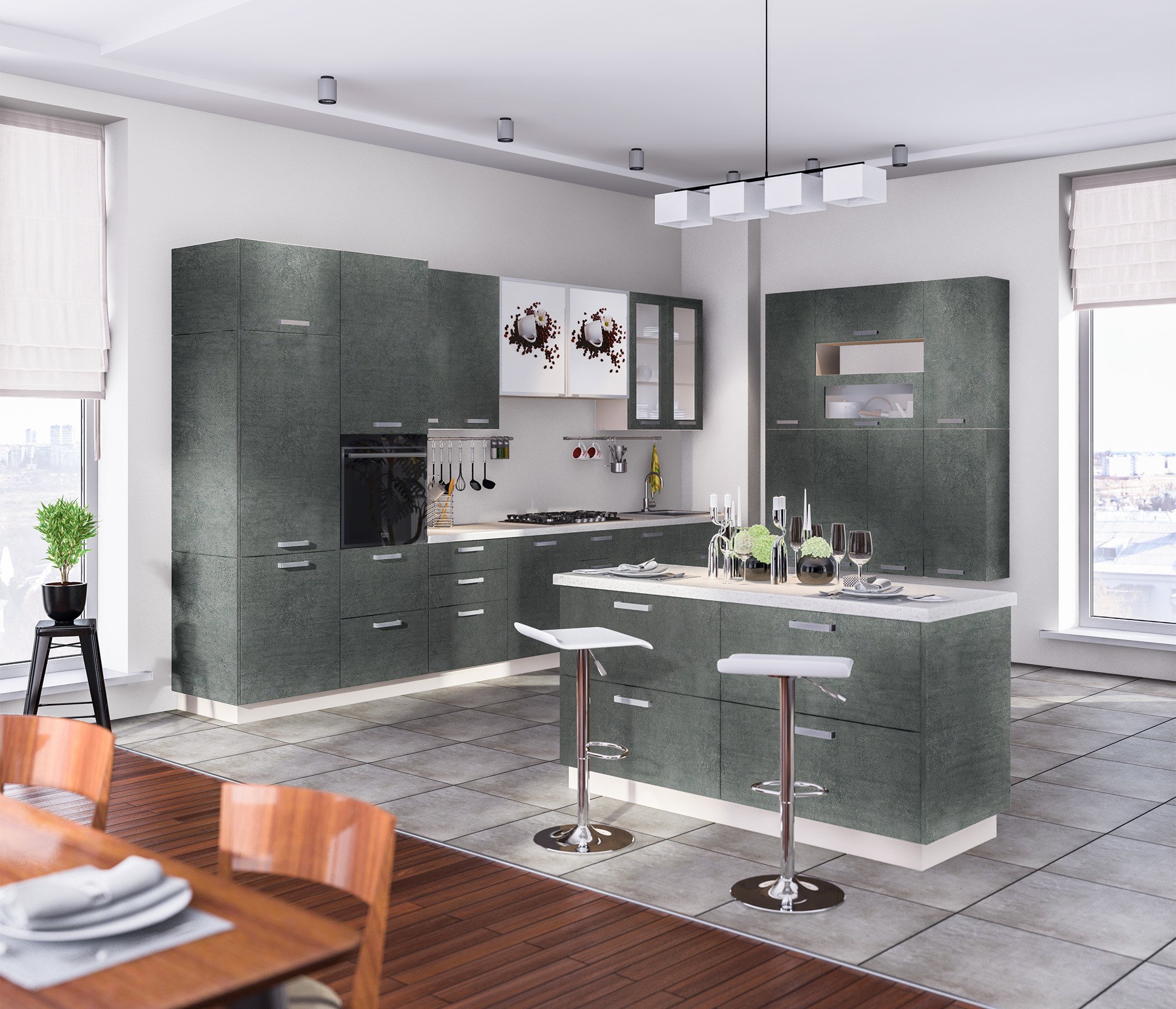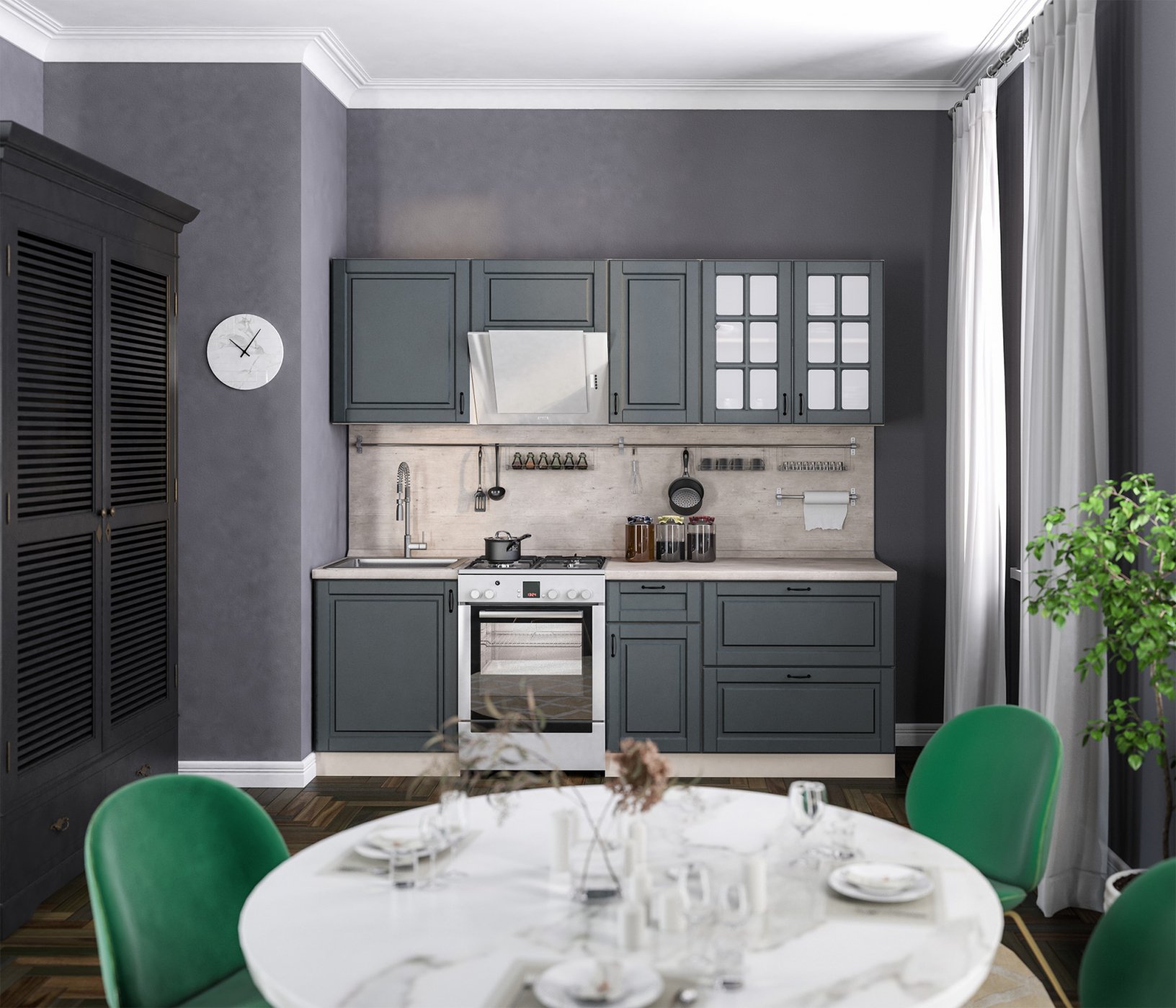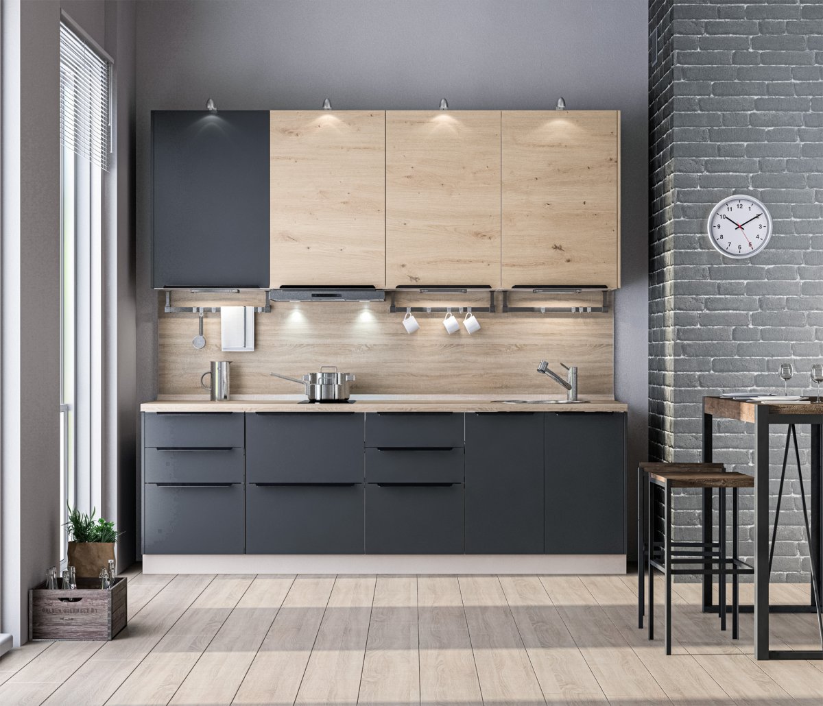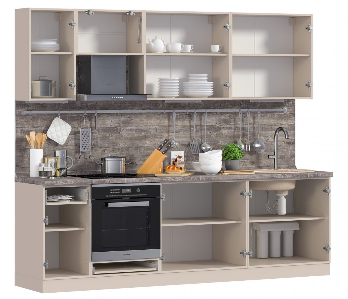 Кухонный гарнитур лофт Регина песочный/Диамант серый, дуб дикий 2,4 м