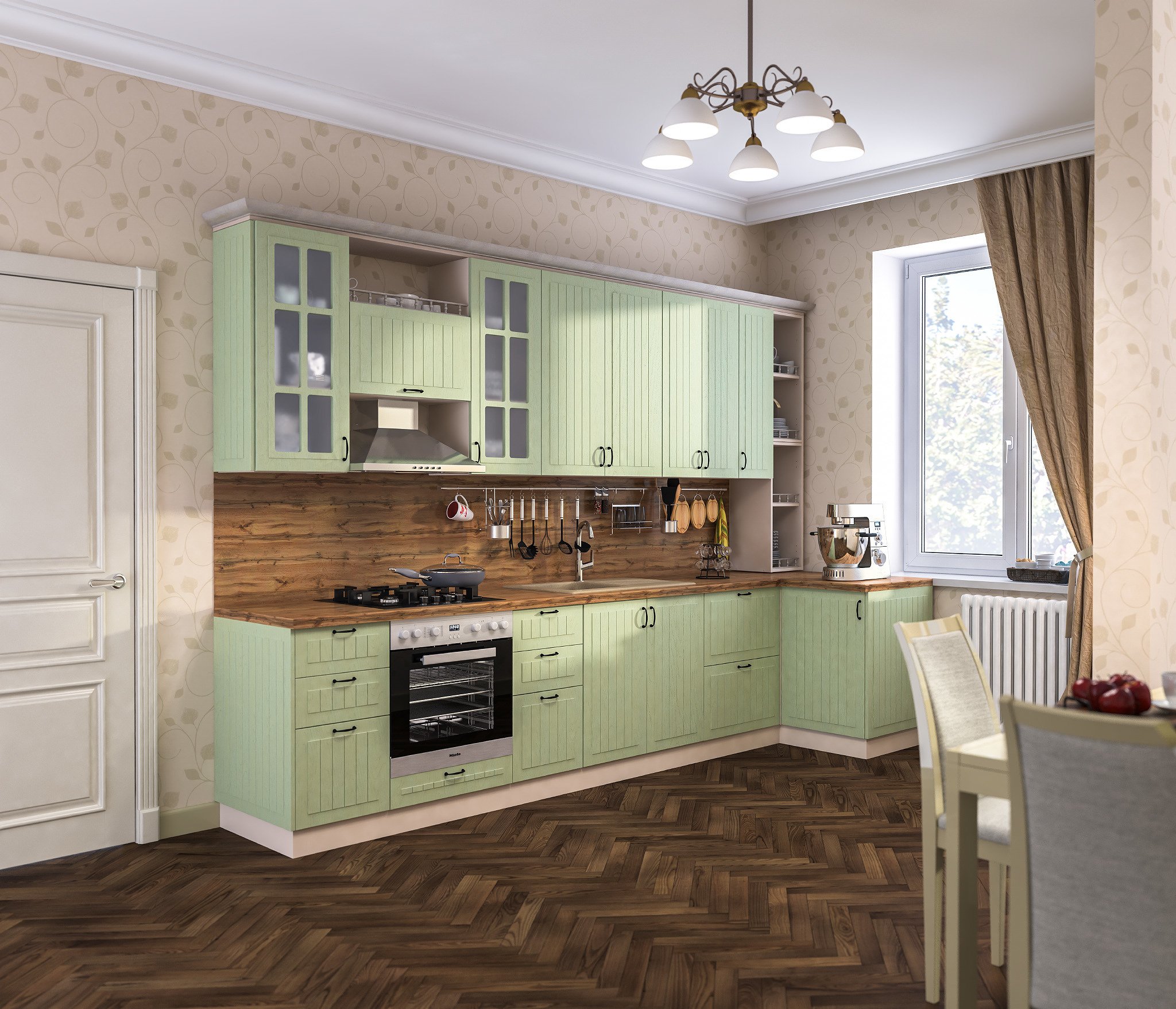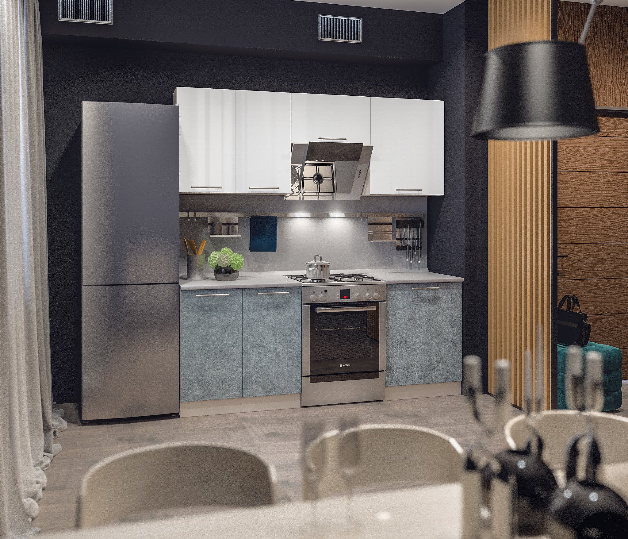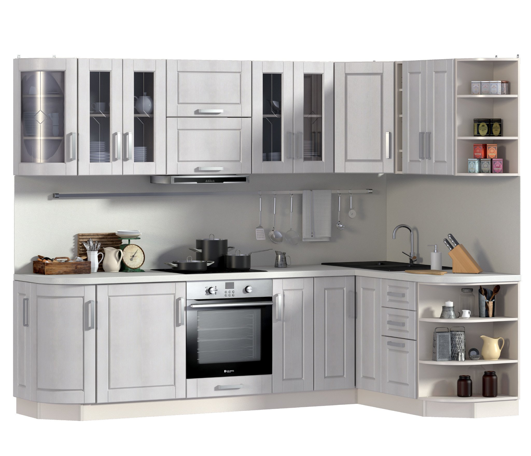 Кухонный гарнитур лофт Регина песочный/Диамант серый, дуб дикий 2,4 м