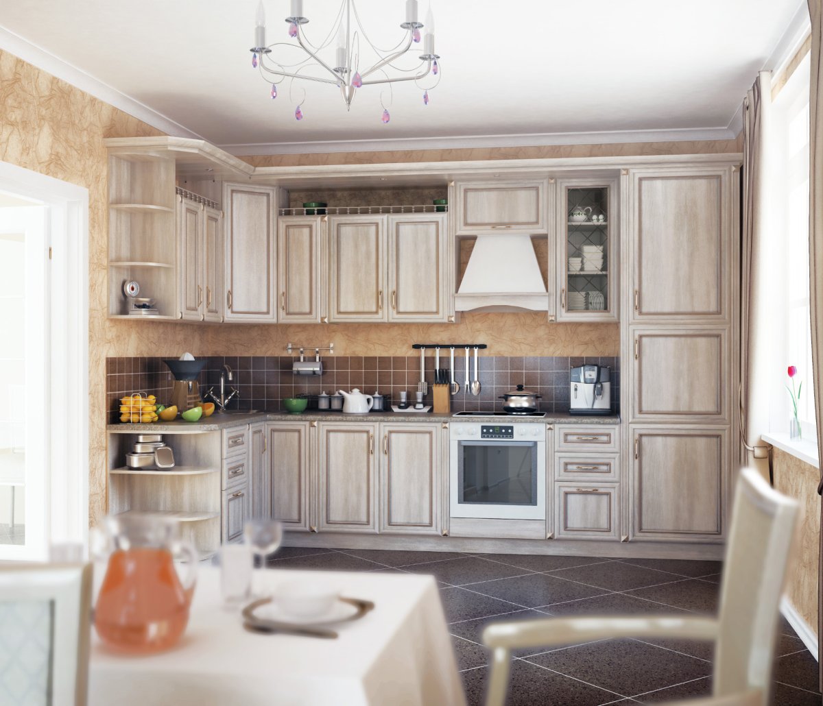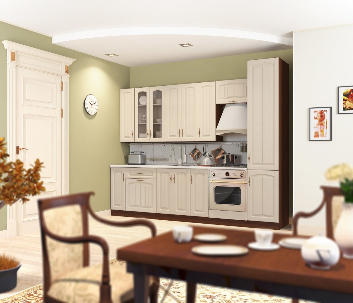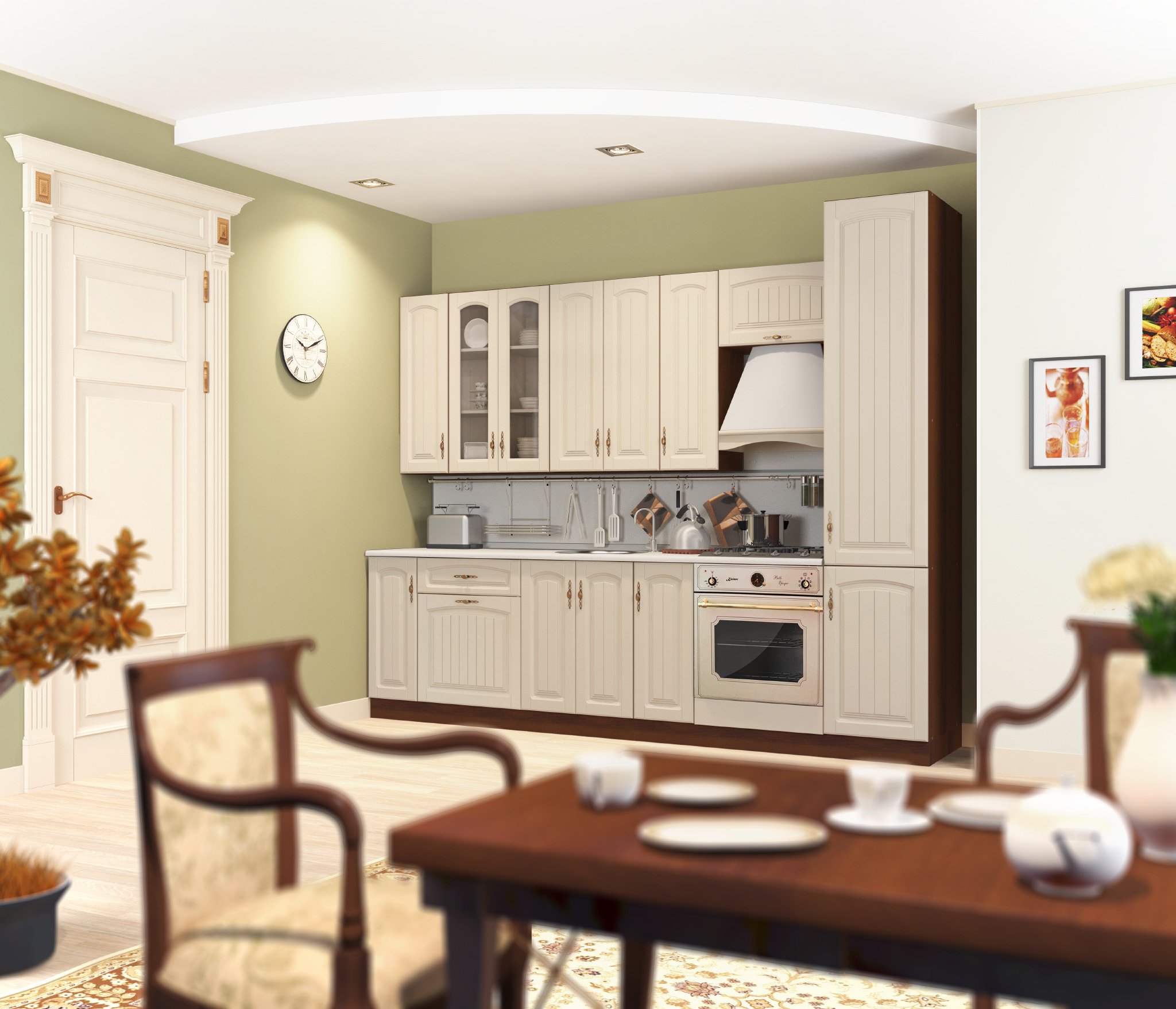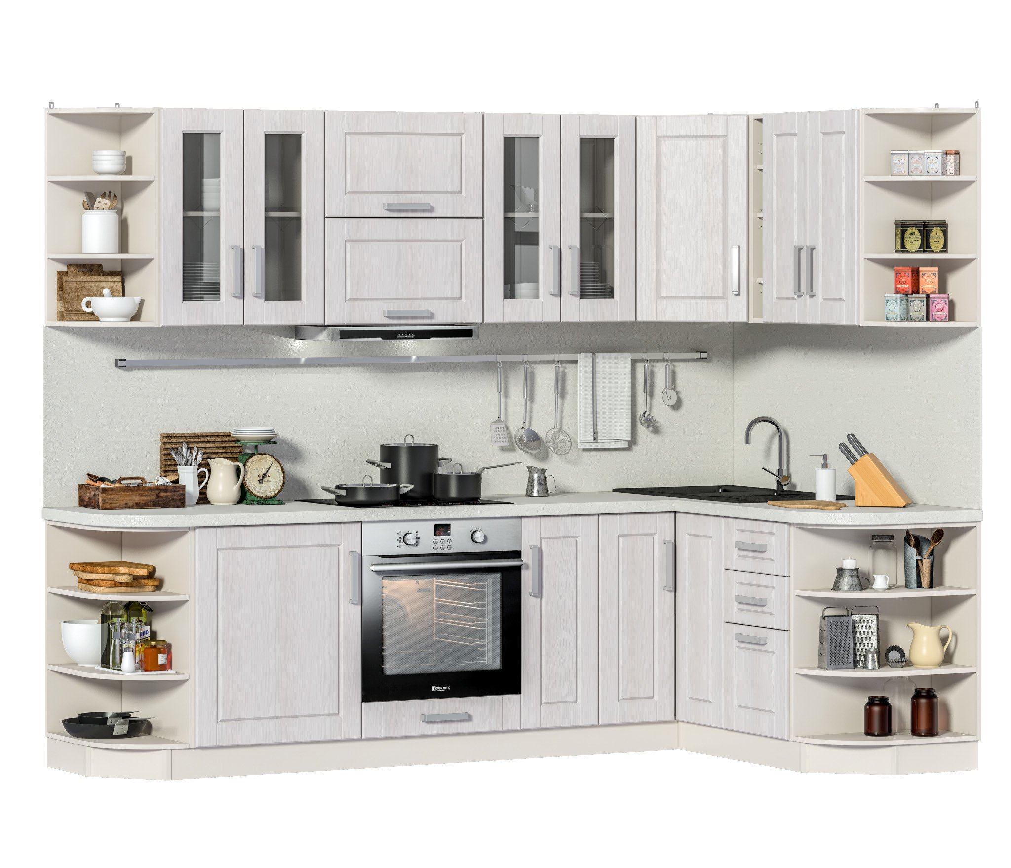 Кухонный гарнитур лофт Регина песочный/Диамант серый, дуб дикий 2,4 м