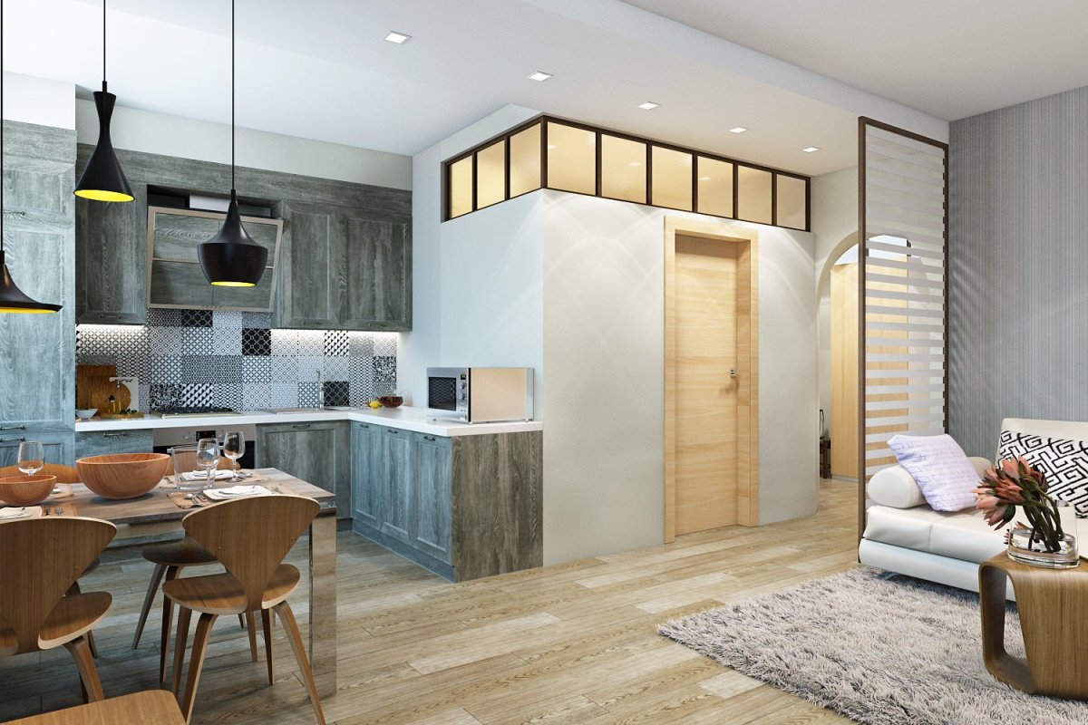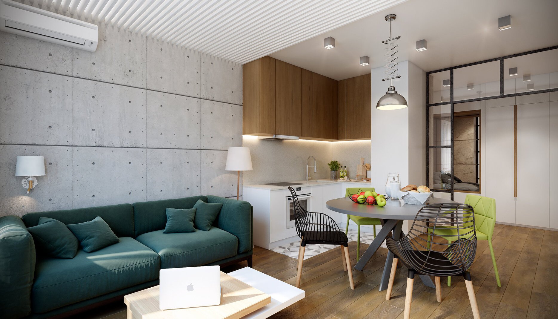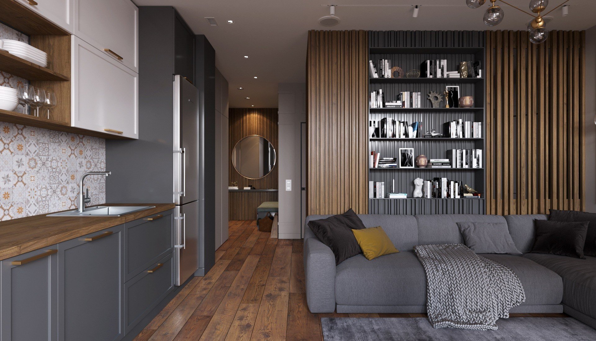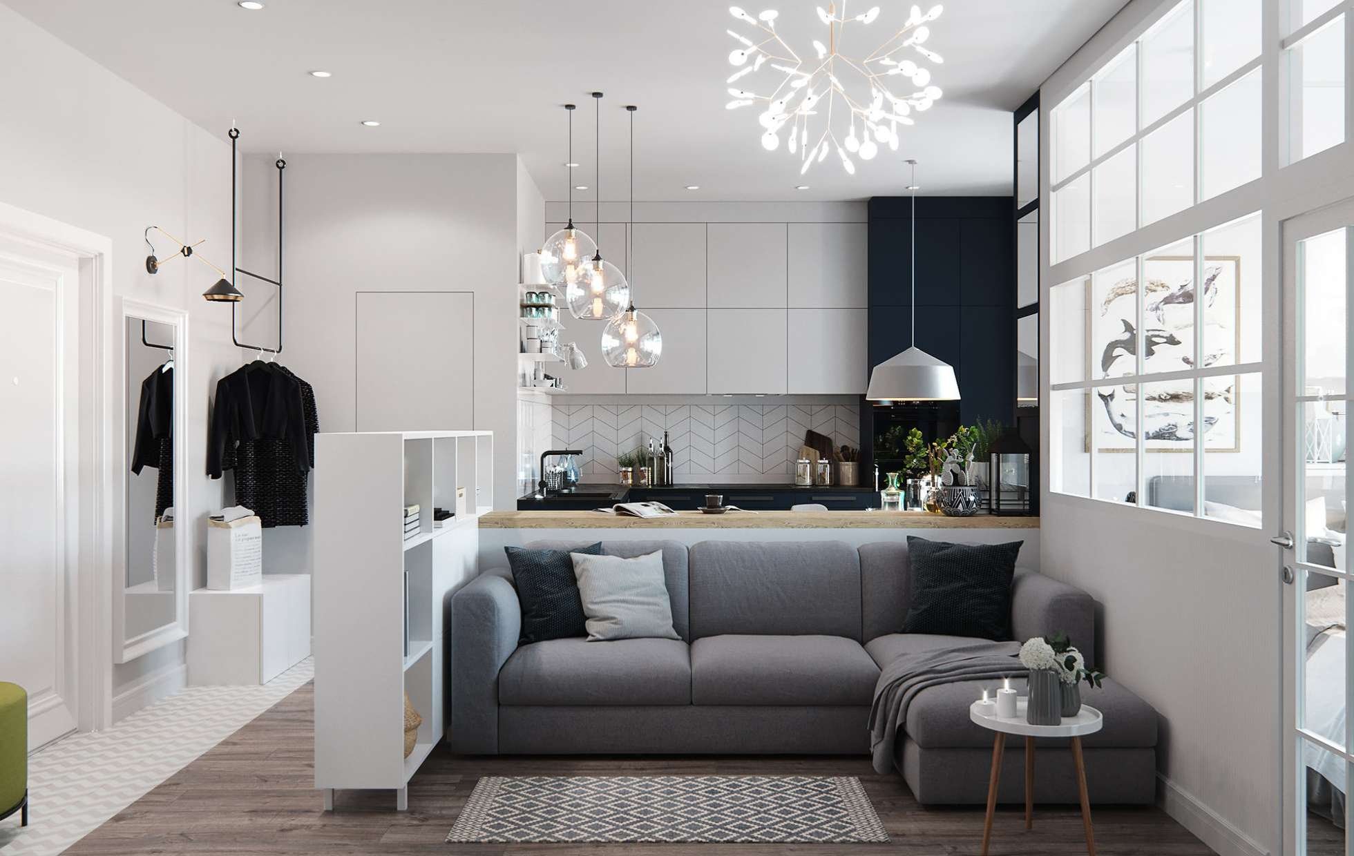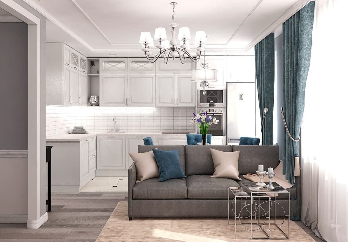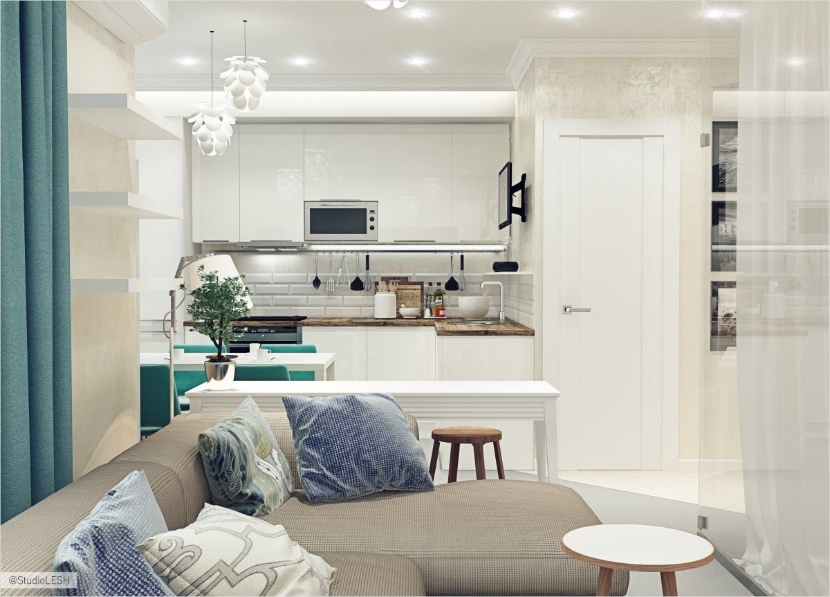 Кухня-гостиная в скандинавском стиле 20 кв.м