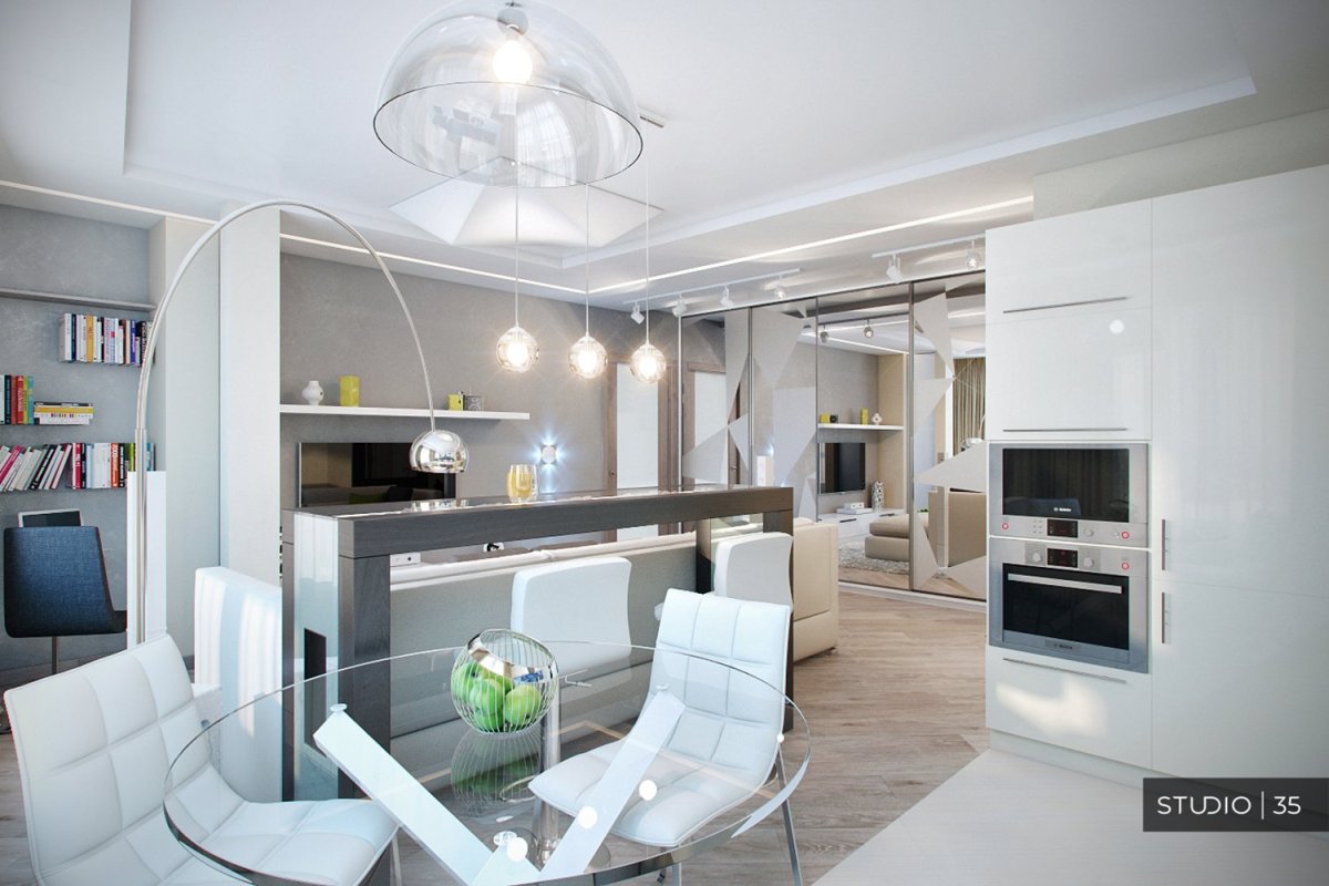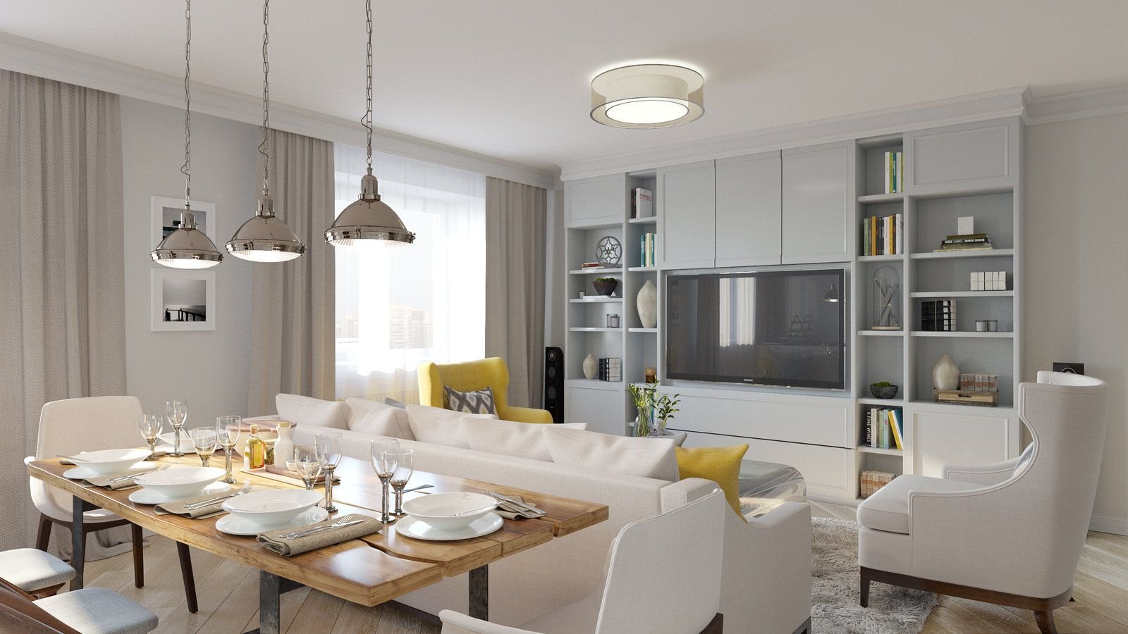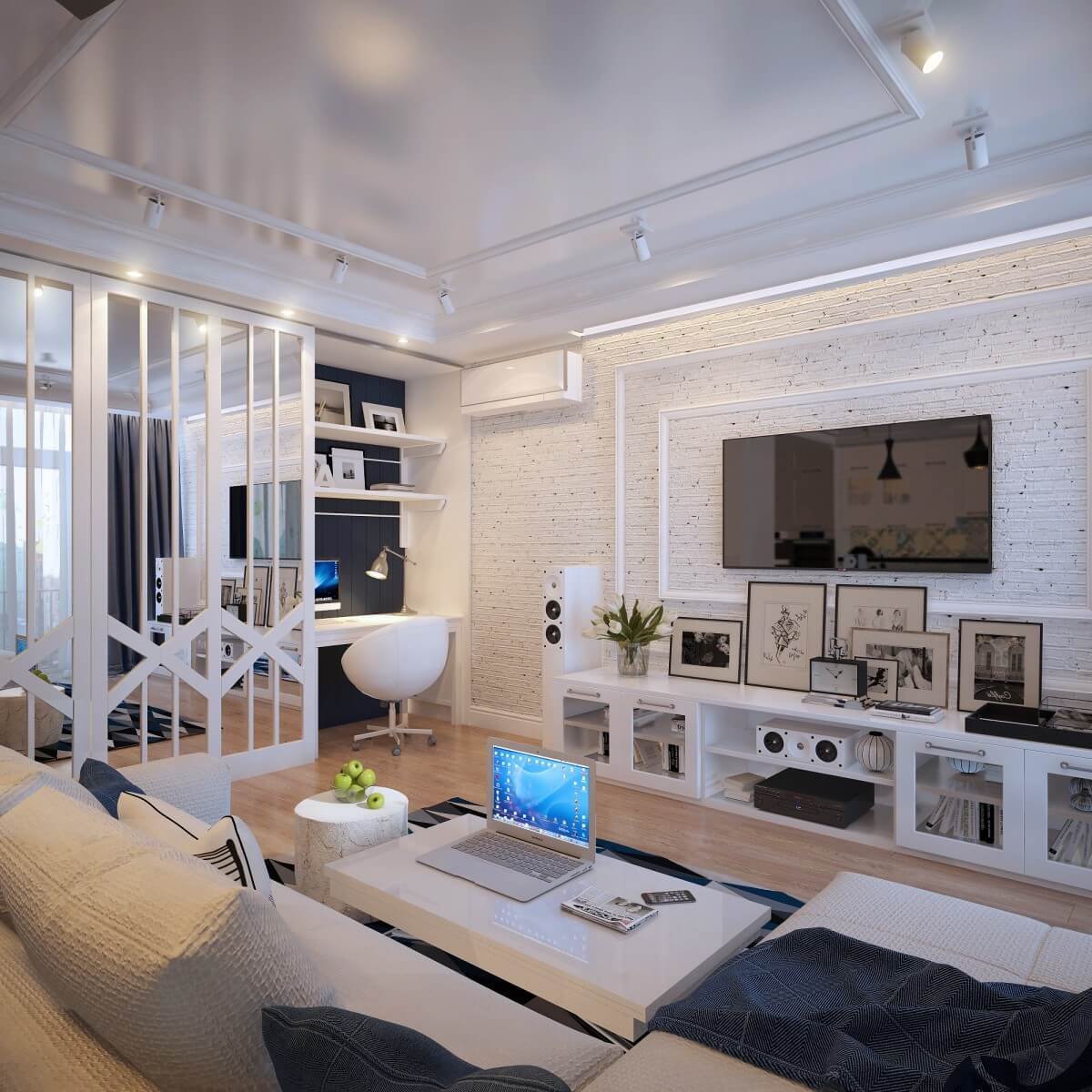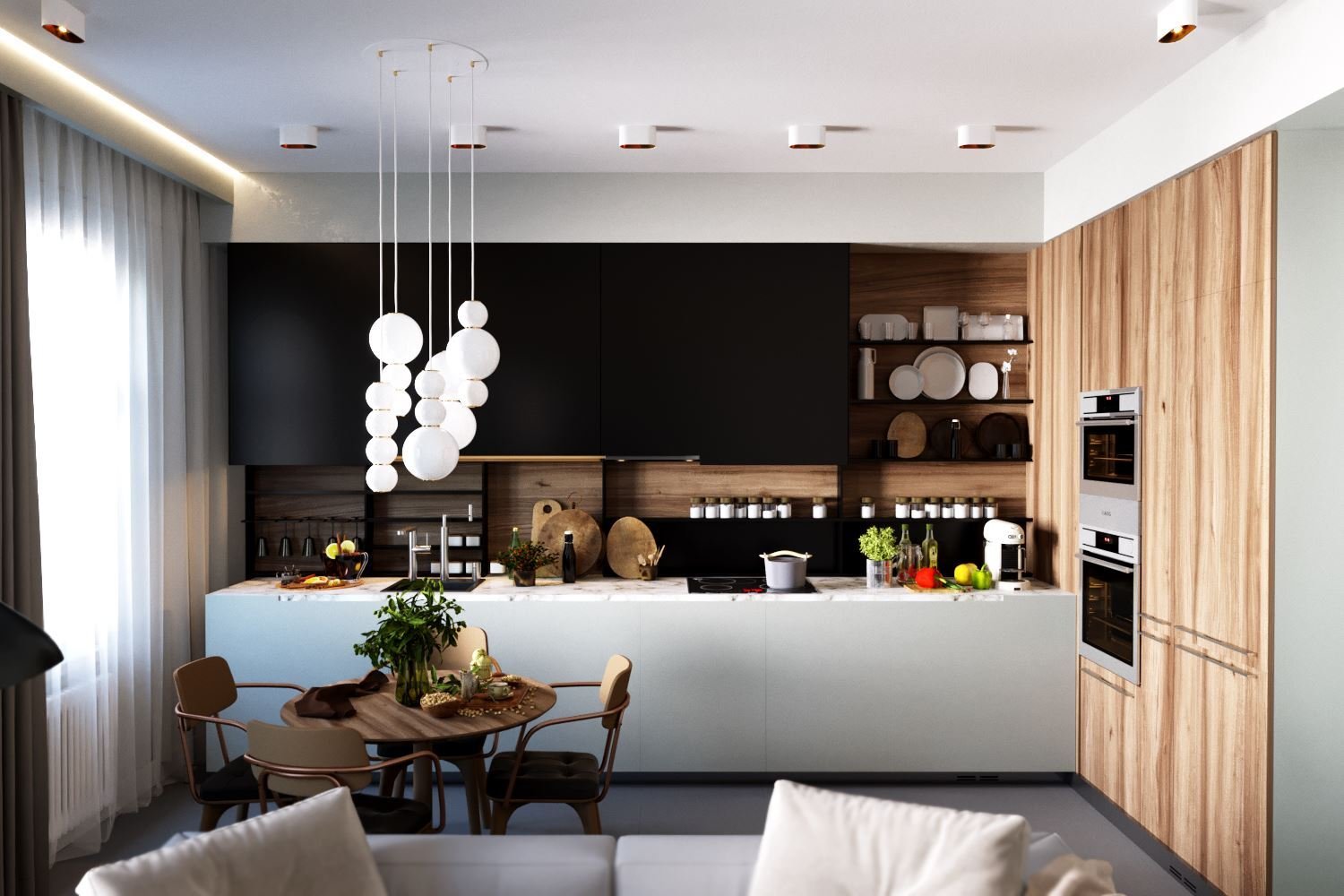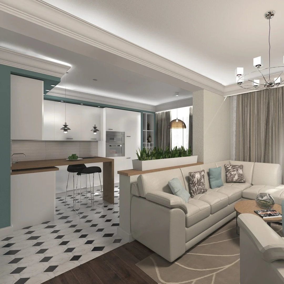 Кухня-гостиная в скандинавском стиле 20 кв.м