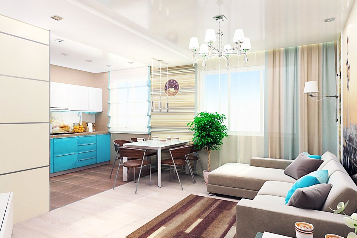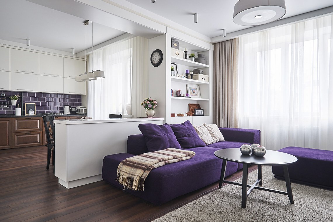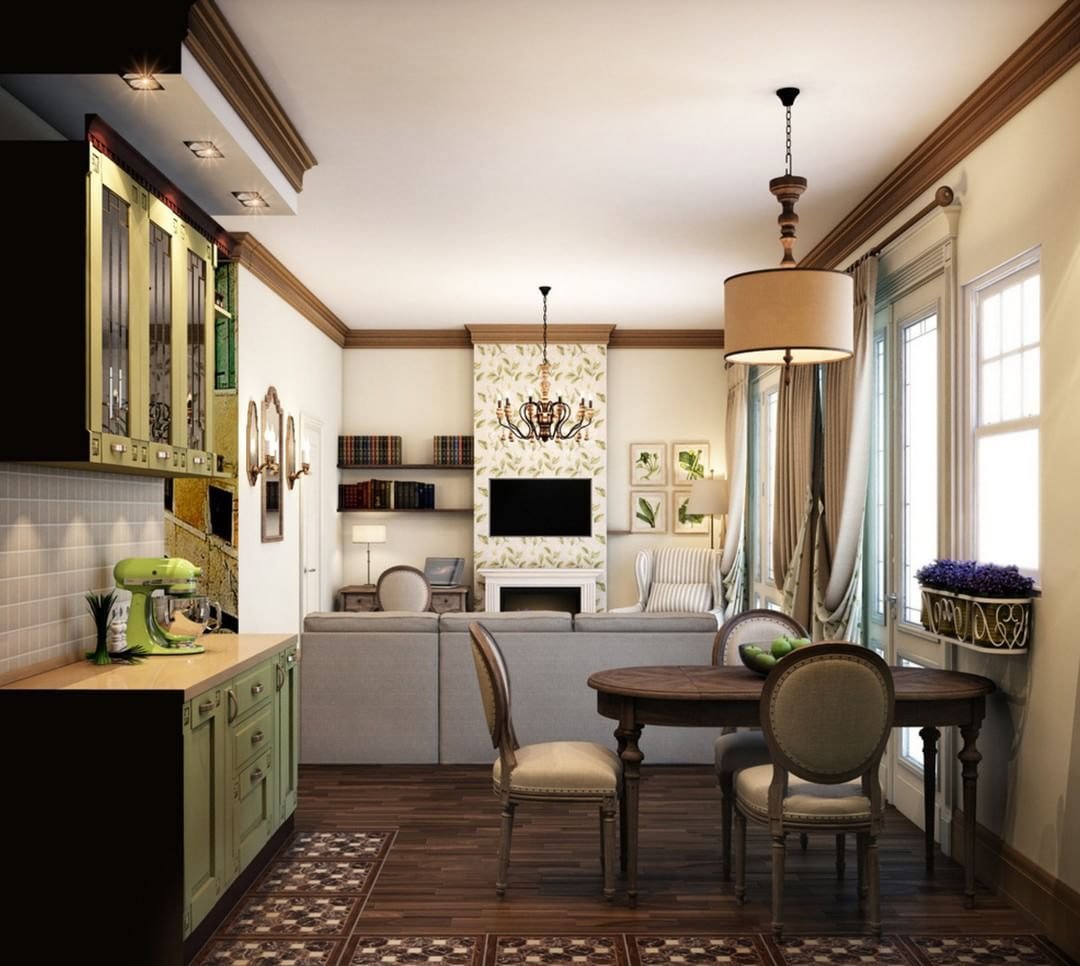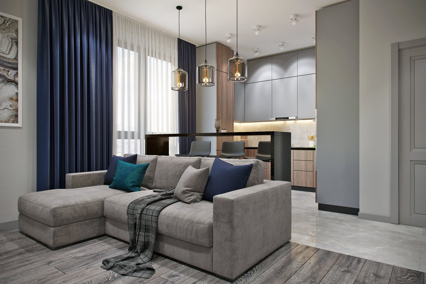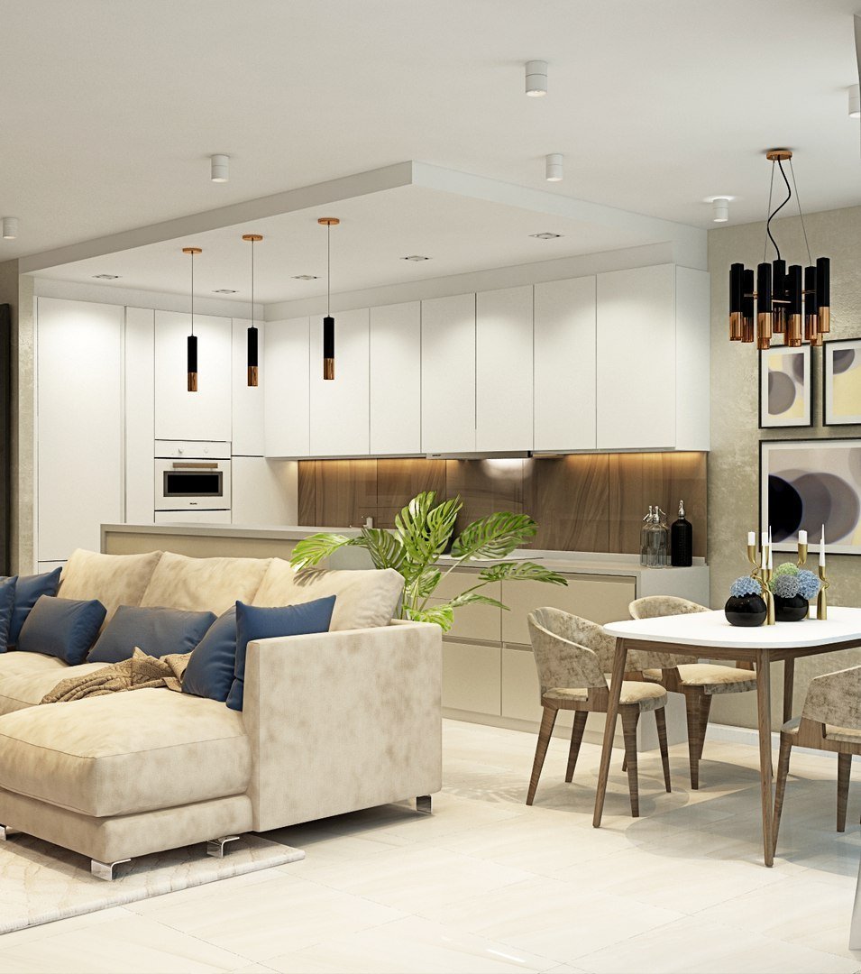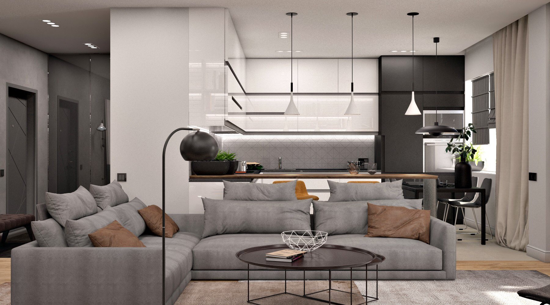 Кухня-гостиная в скандинавском стиле 20 кв.м
