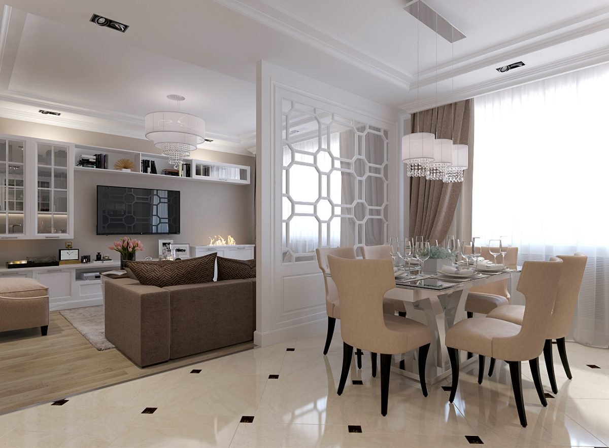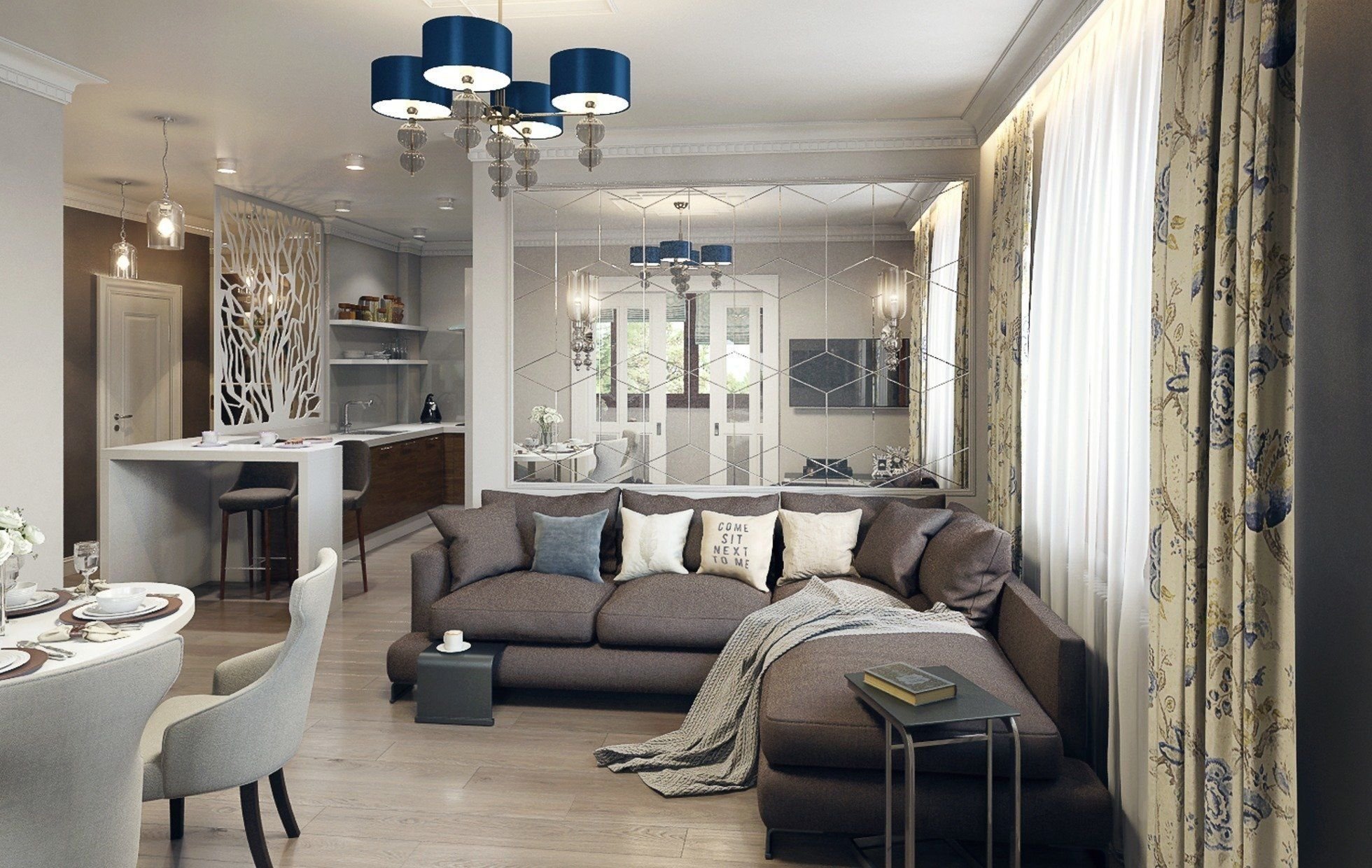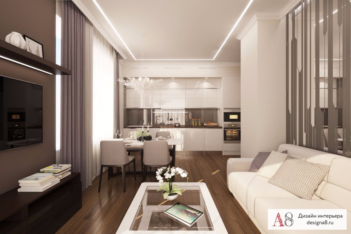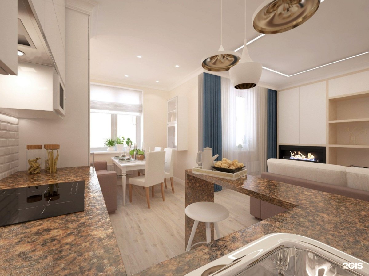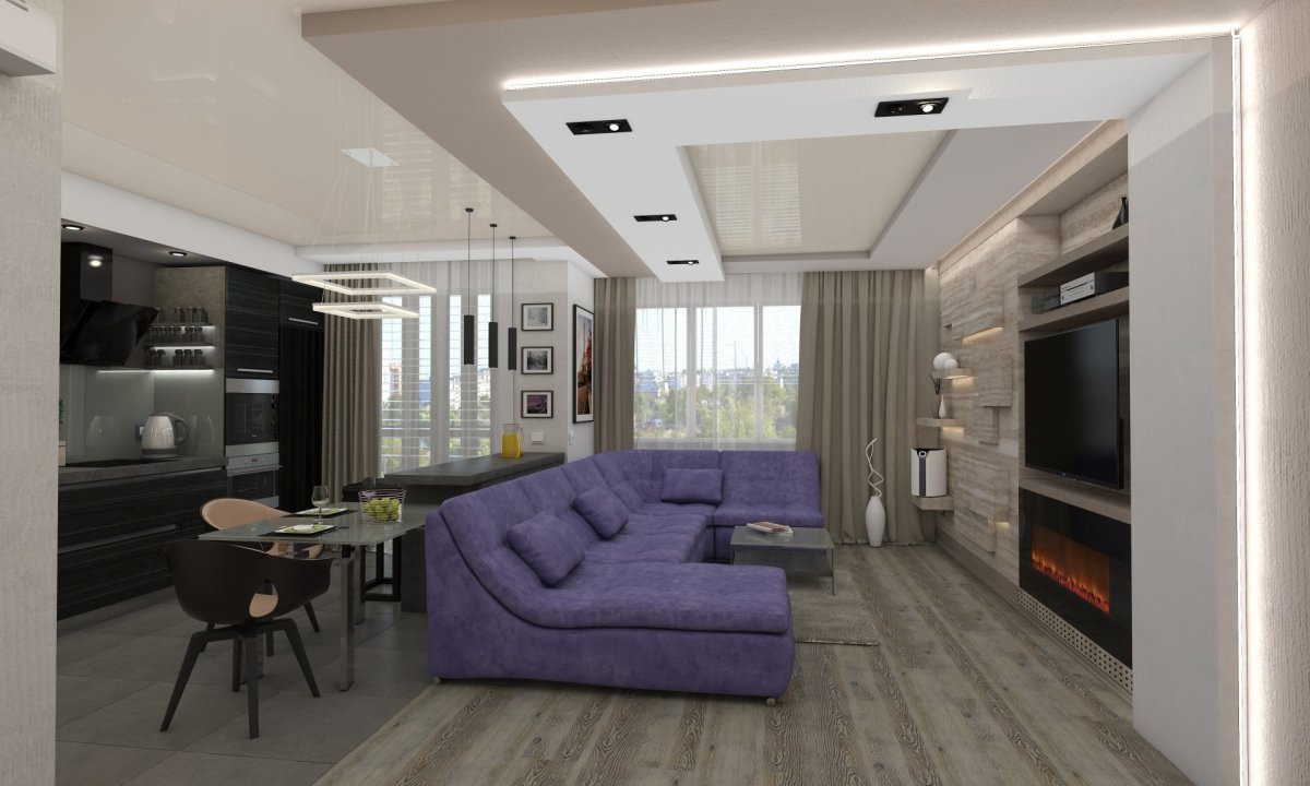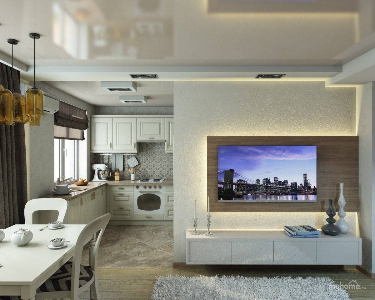 Кухня-гостиная в скандинавском стиле 20 кв.м