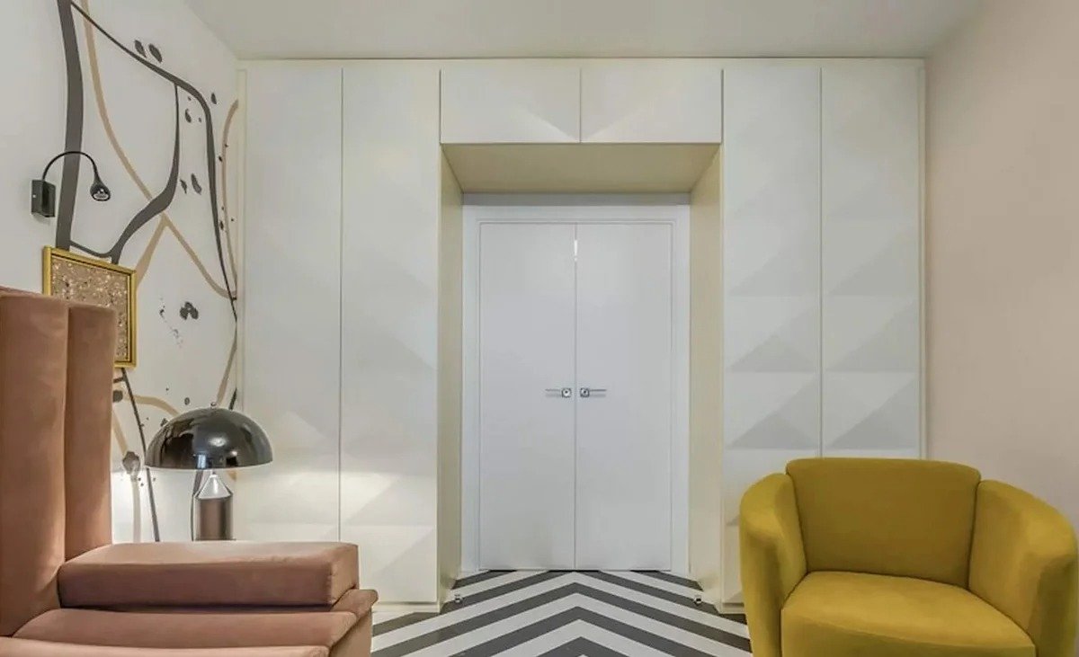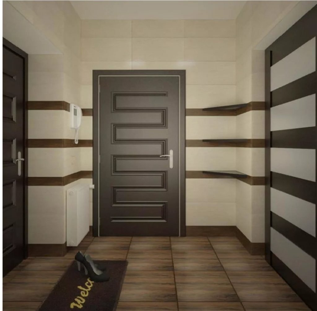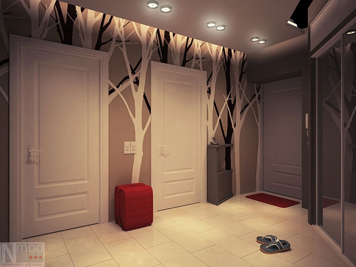 Прихожая сиреневый с коричневым в интерьере прихожей