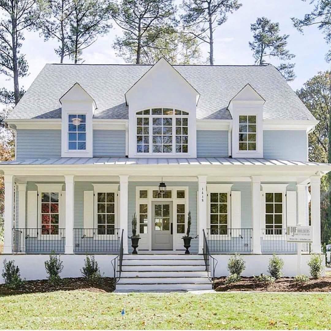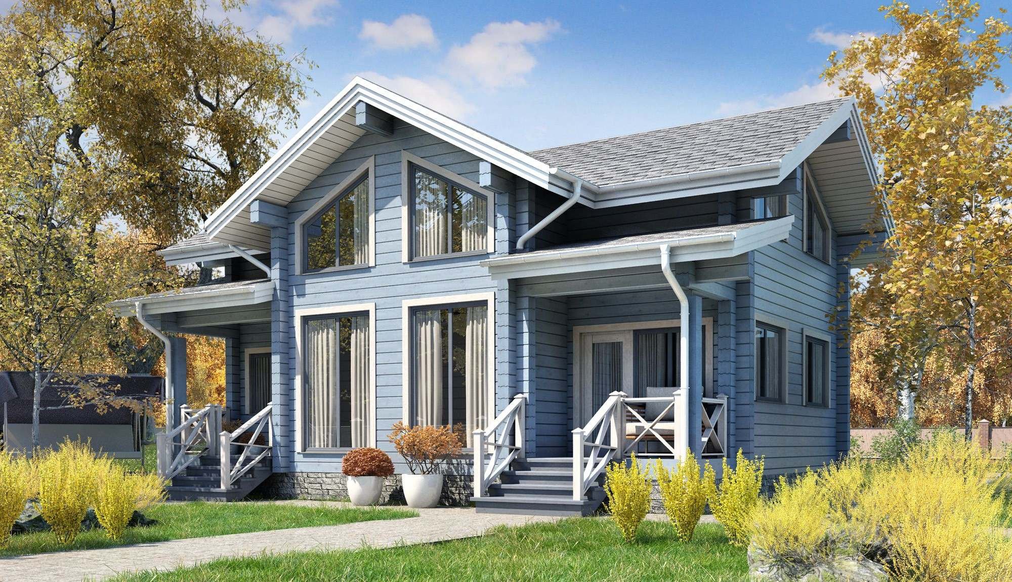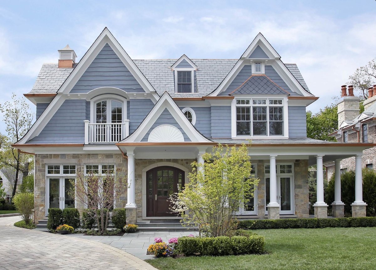 Серо-голубой цвет фасада дома
