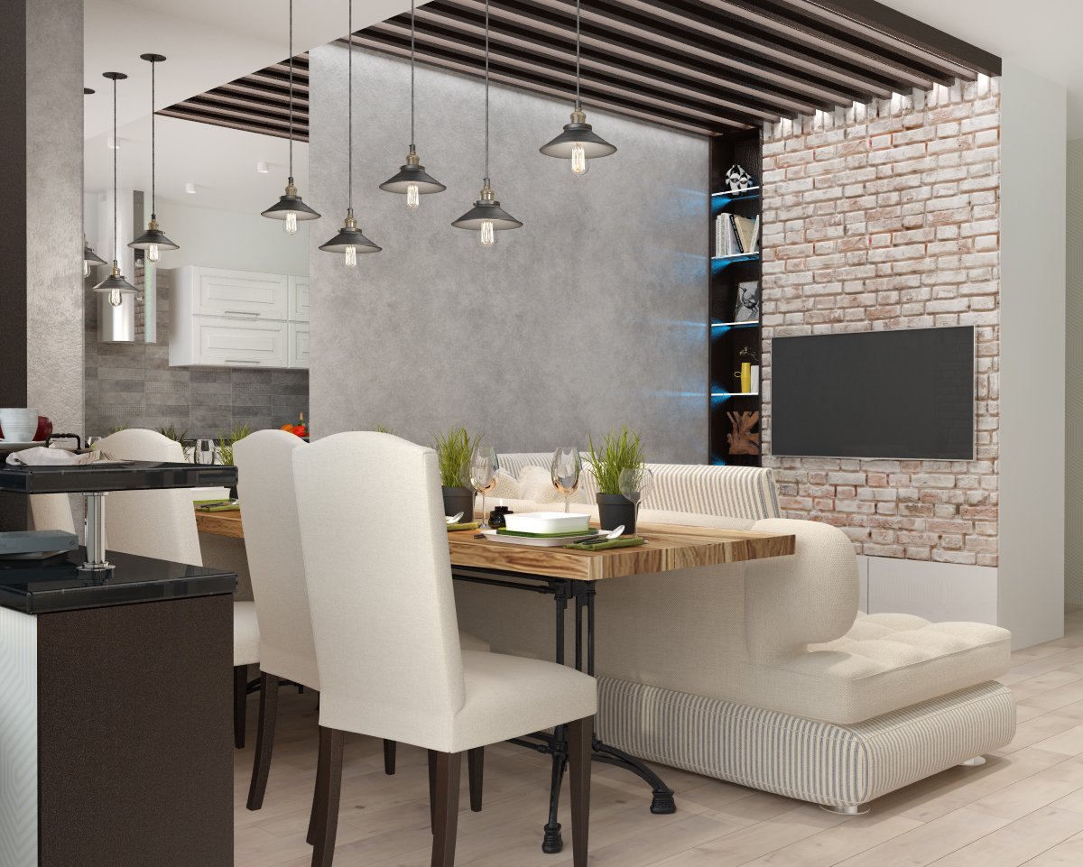Кухня гостинная 20кв м лофт