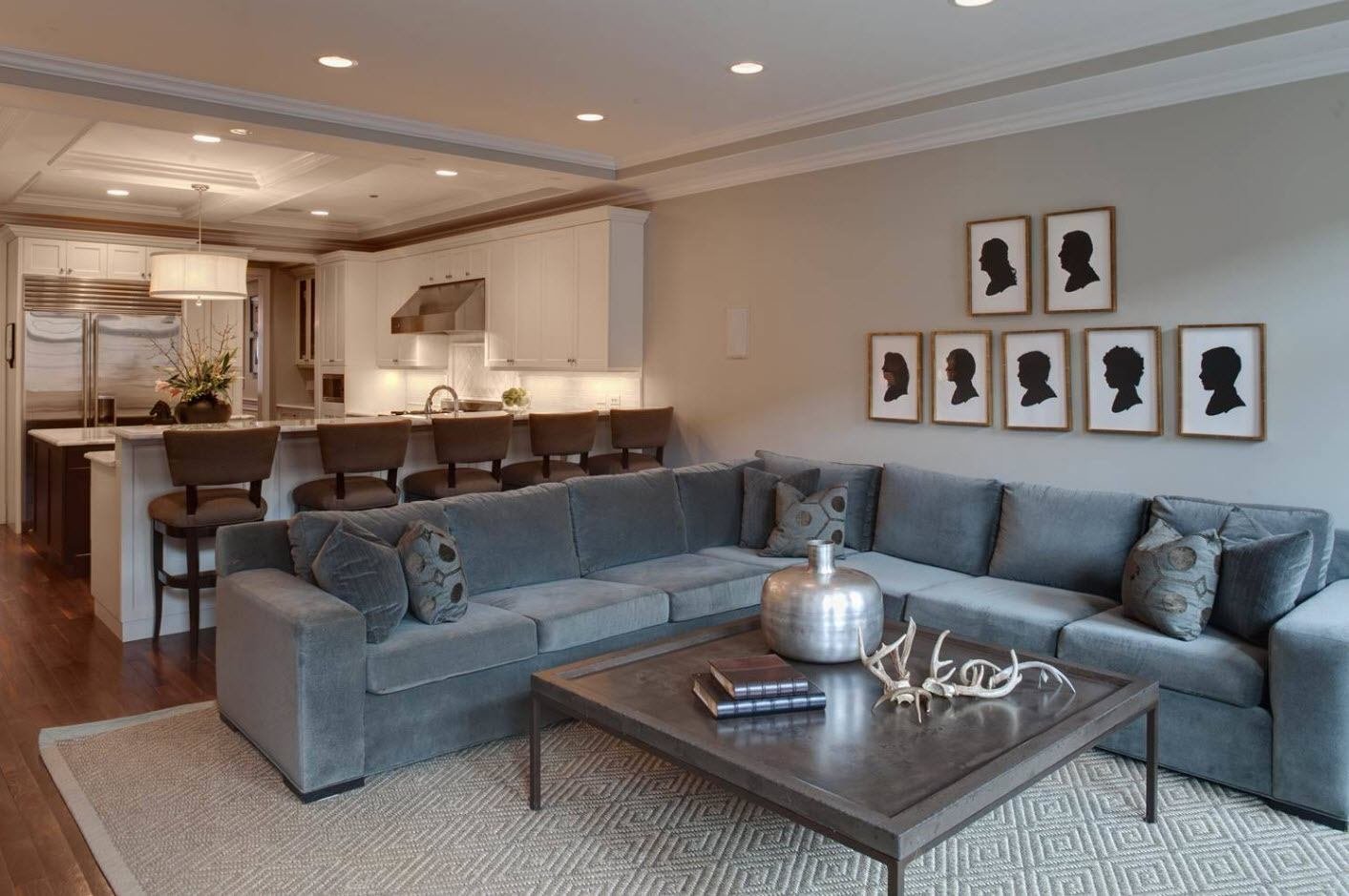 Гостиная с барной стойкой и угловым диваном