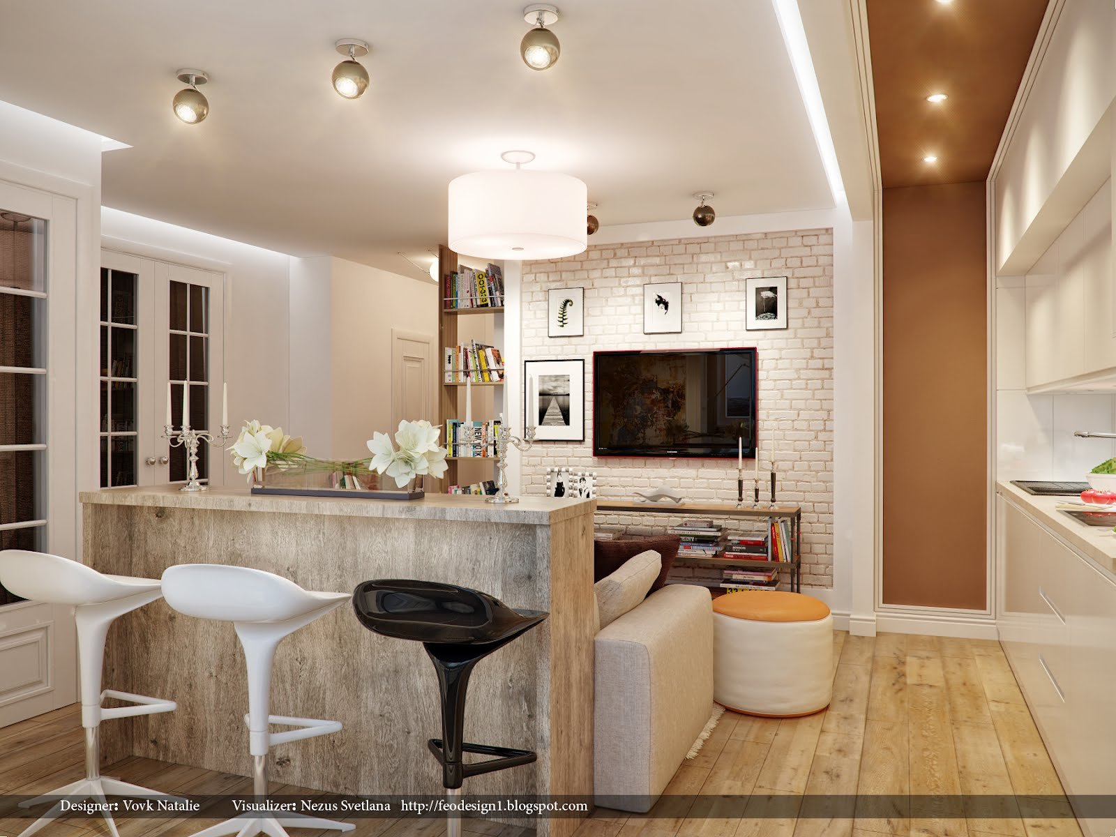Барная стойка разделяющая кухню и гостиную