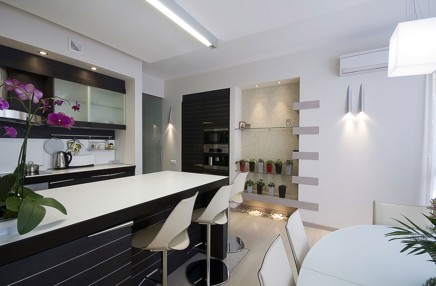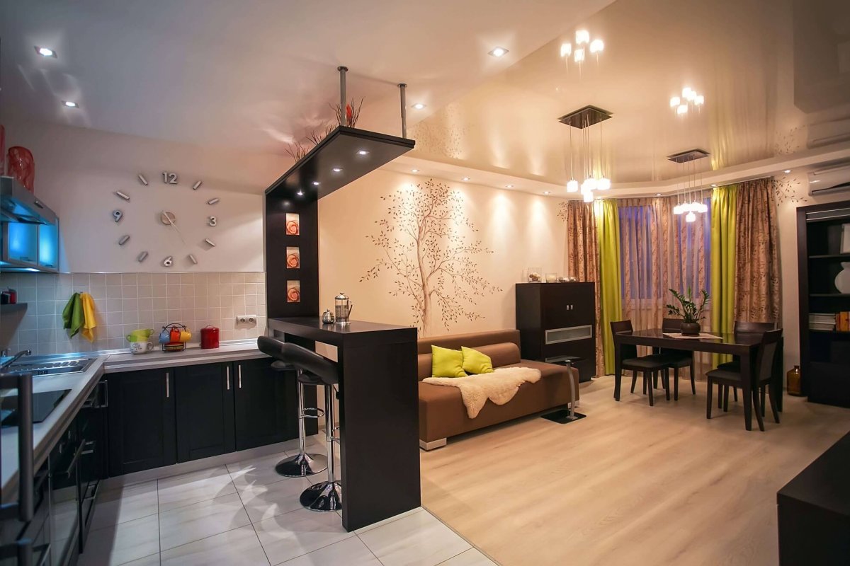 Кухня с гостиной и барной стойкой