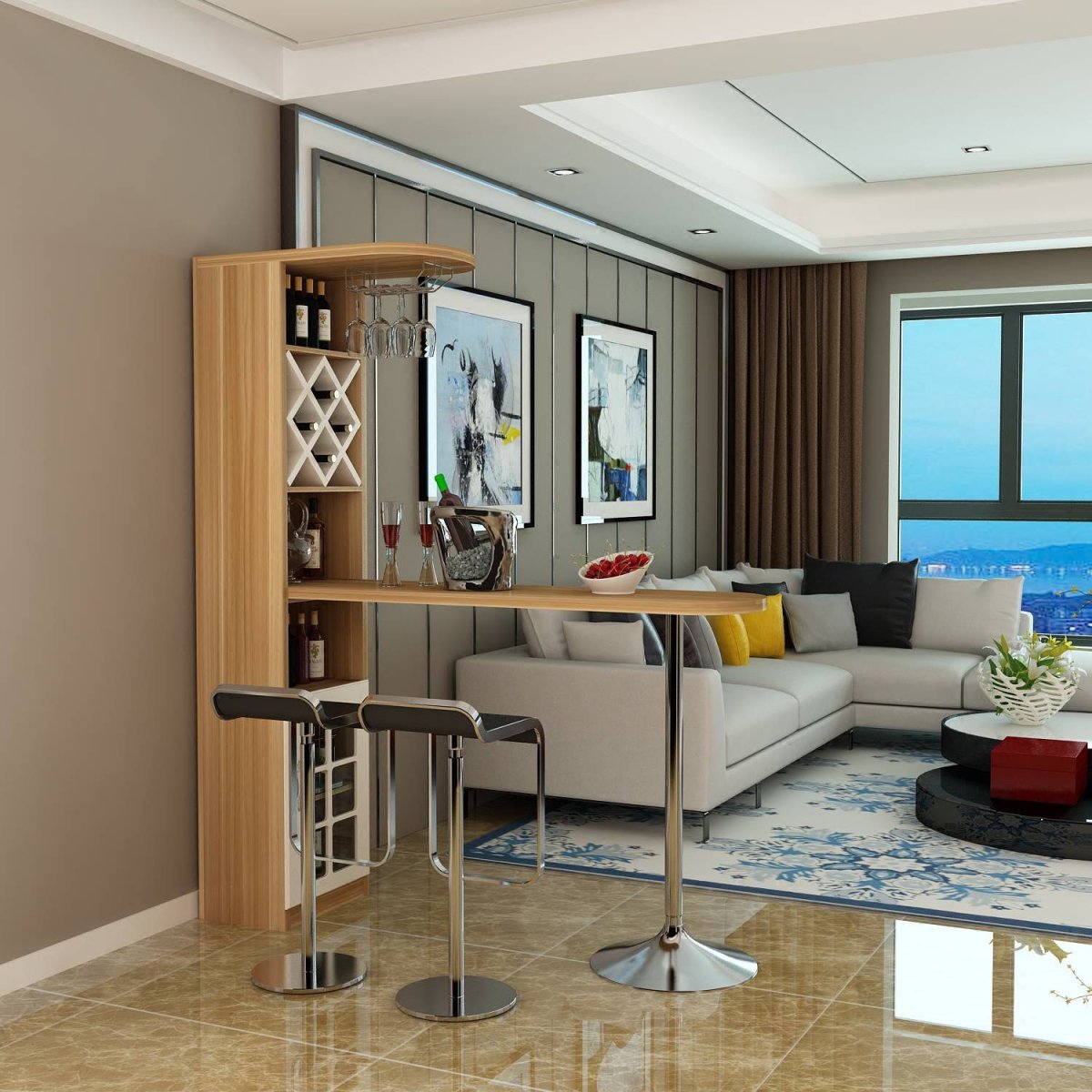 Барная стойка у дивана в гостиной