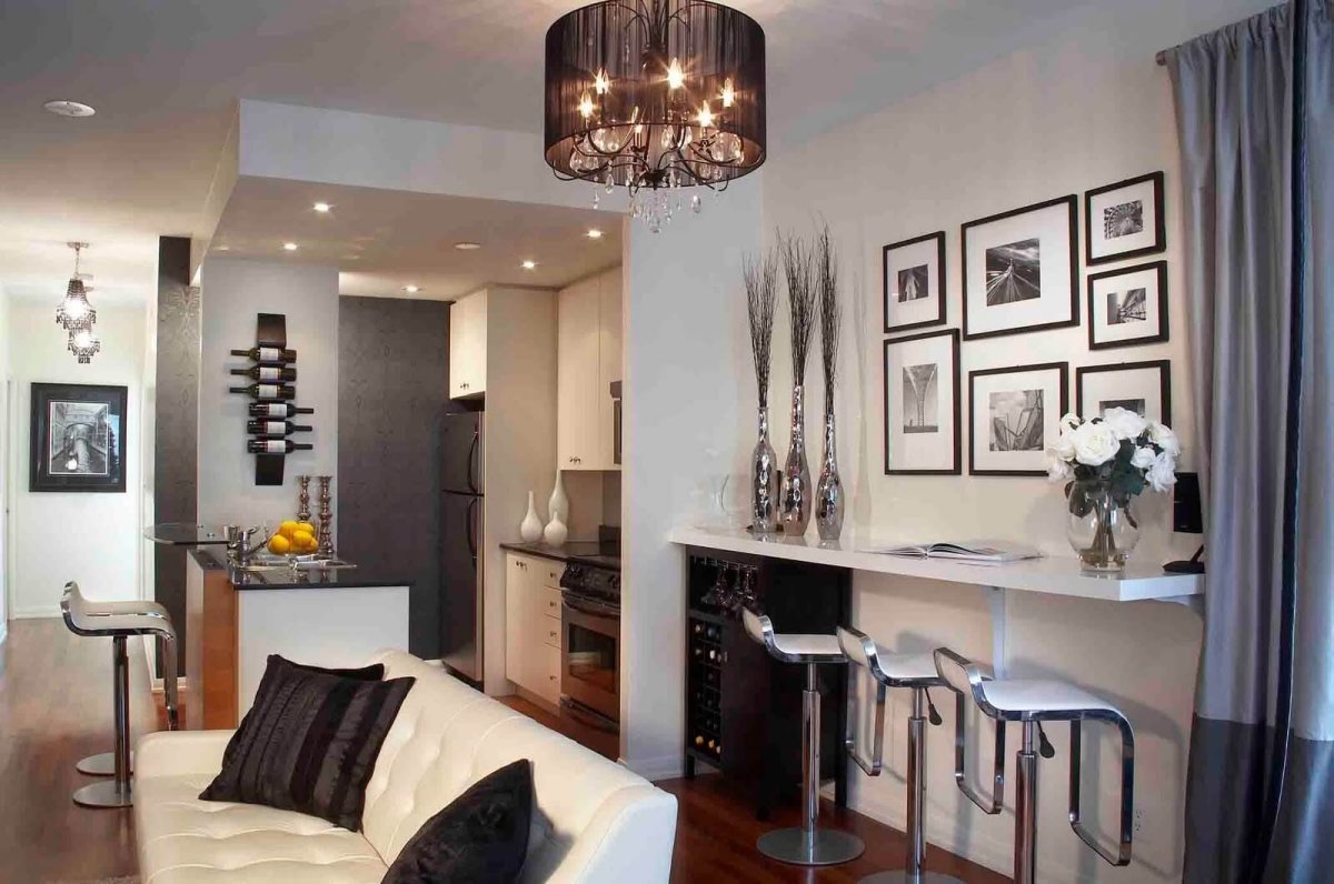 Кухня гостиная с барной стойкой
